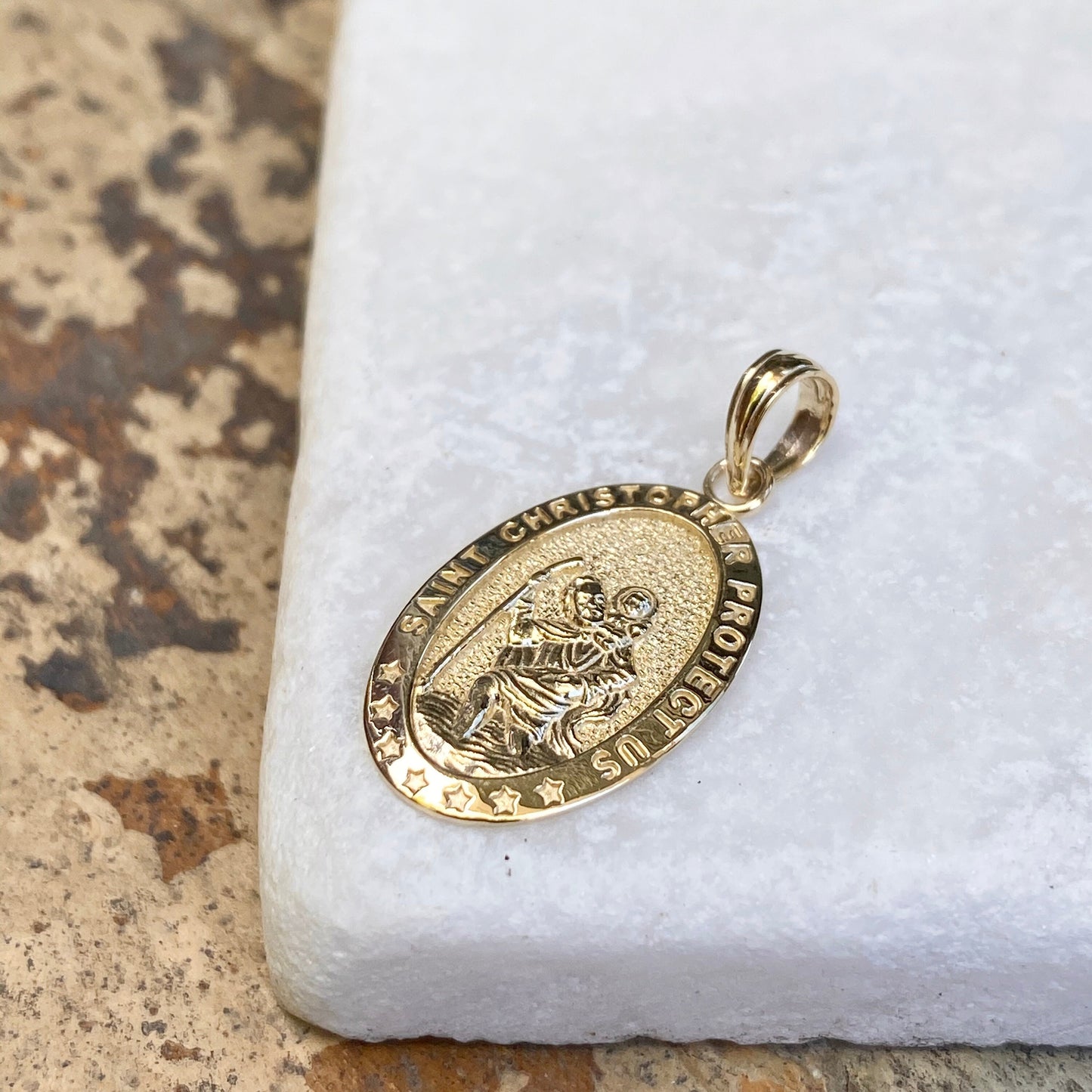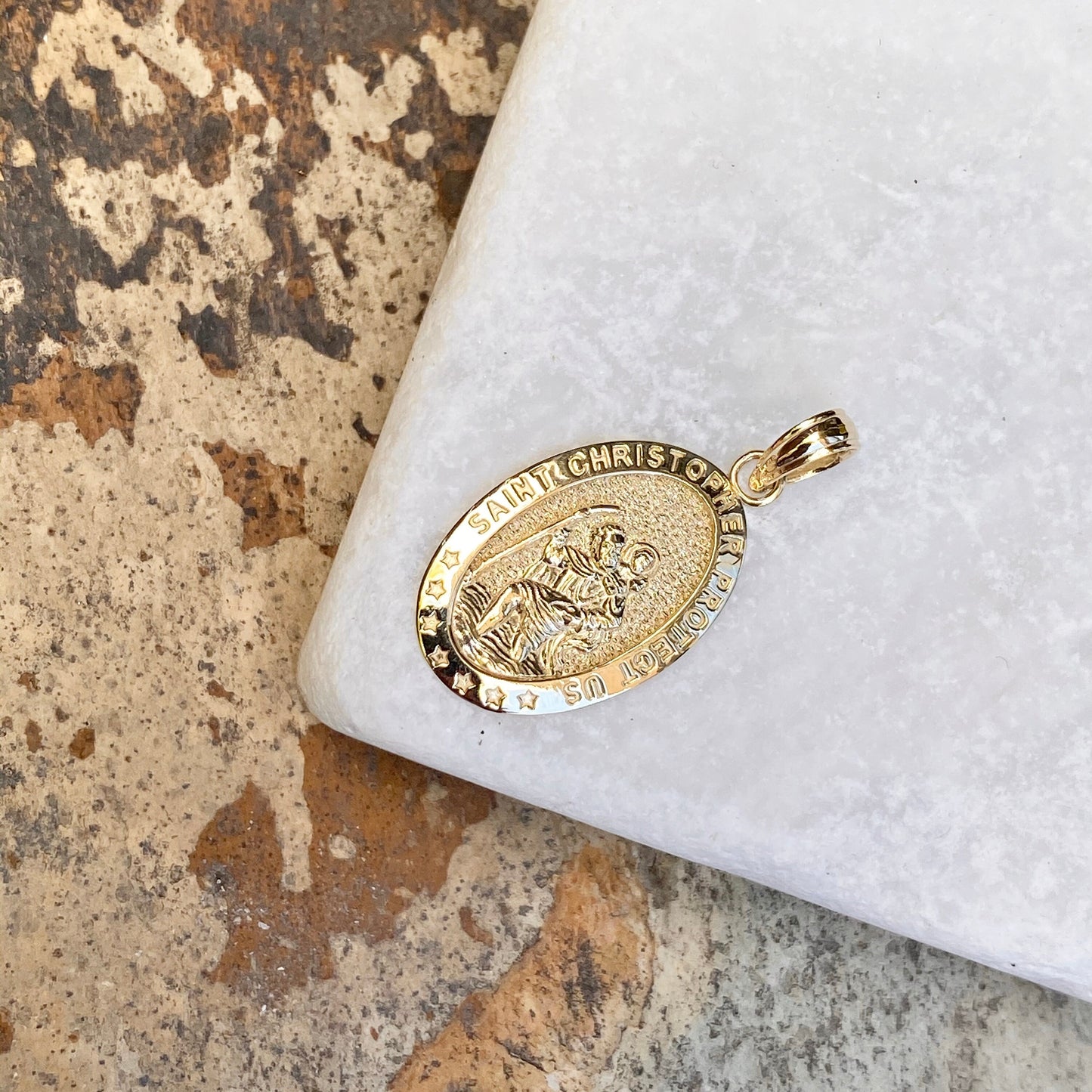10KT Yellow Gold Saint Christopher Oval Medal Pendant Charm 18.7mm