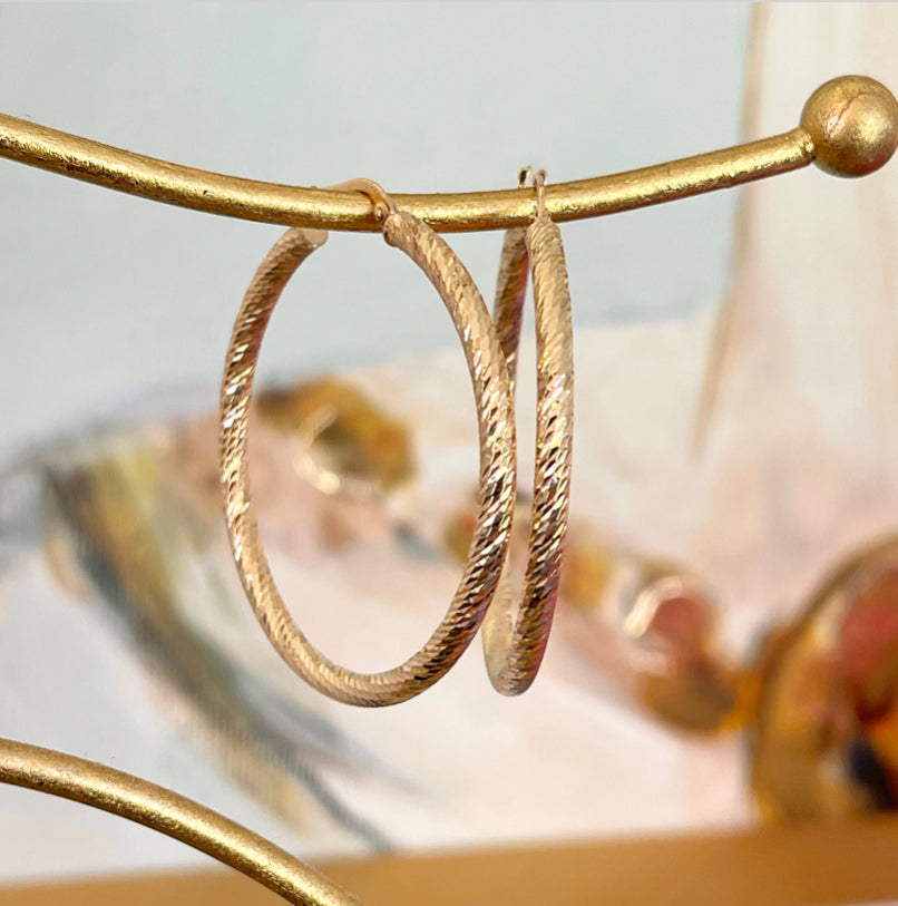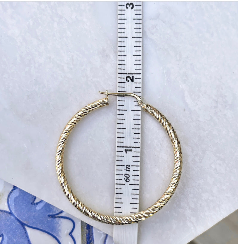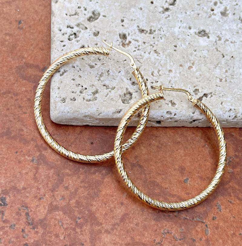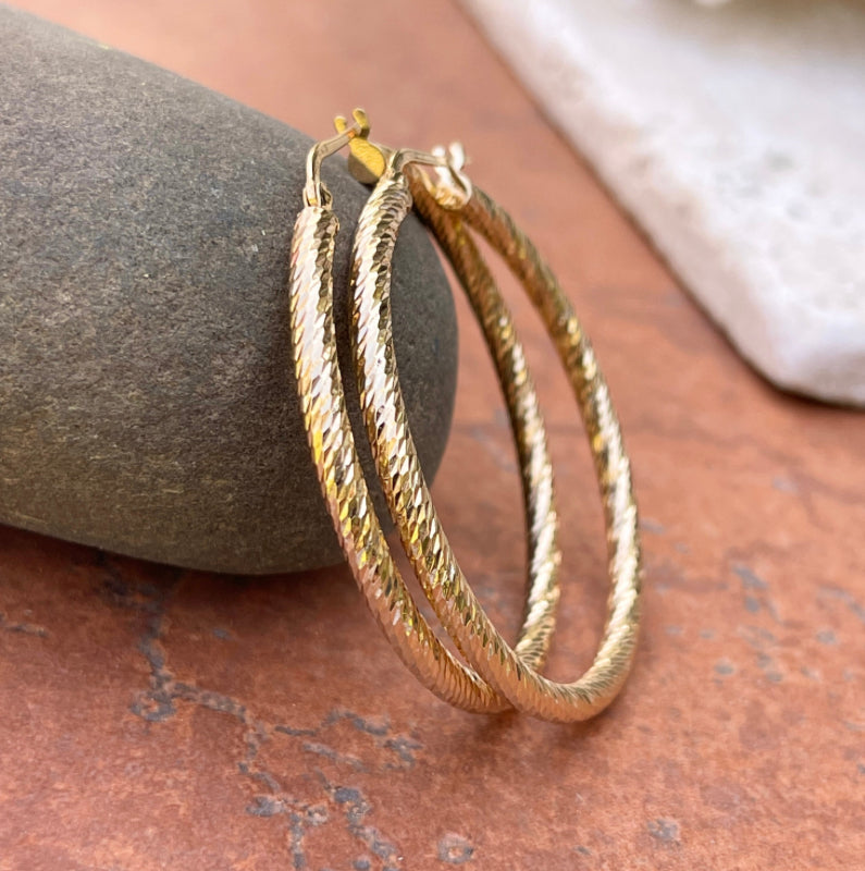 10KT Yellow Gold Diamond-Cut 3mm Round Tube Hoop Earrings 45mm