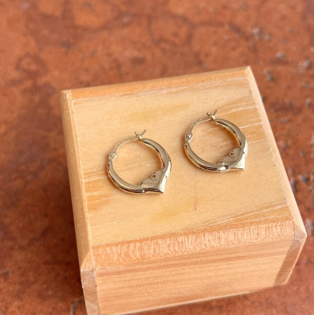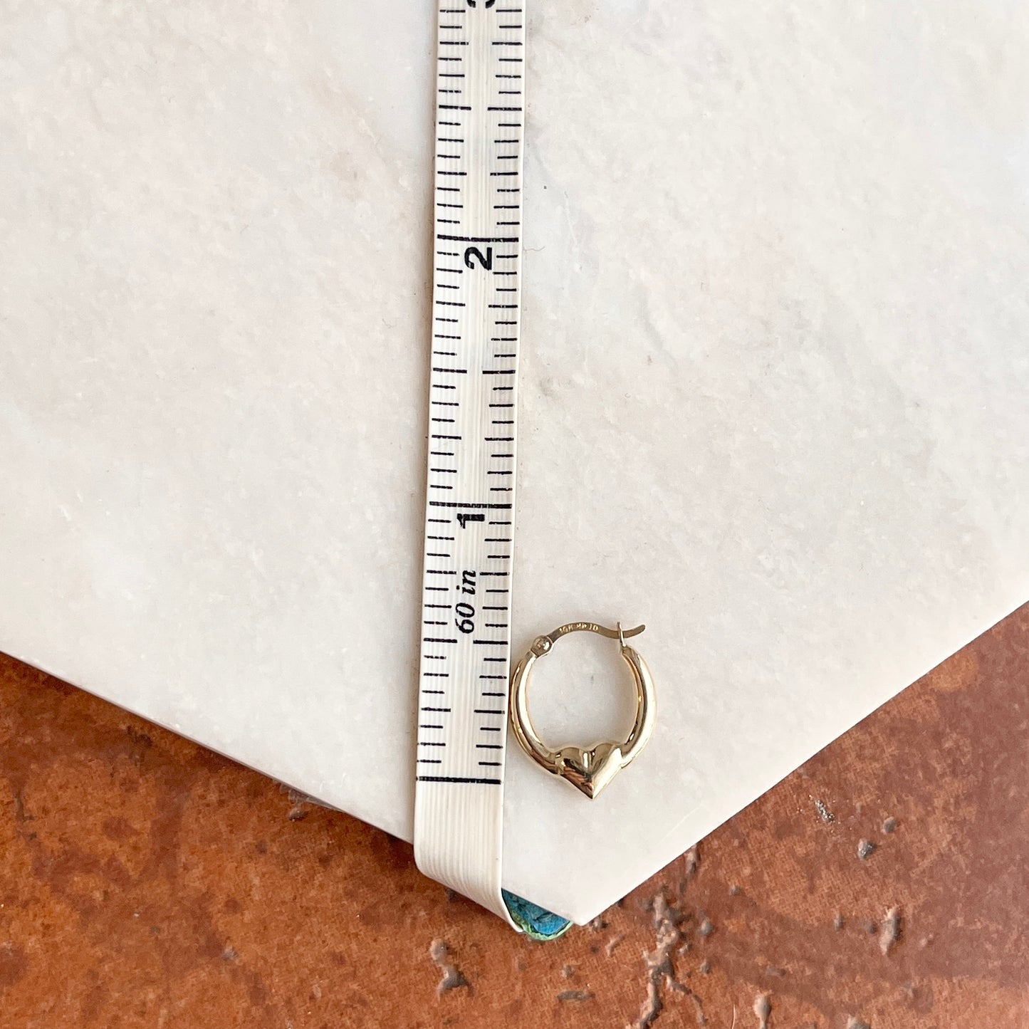 10KT Yellow Gold Small Size Hoop Earrings with Heart Detail