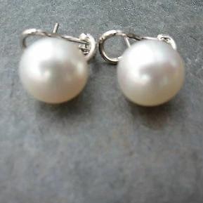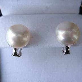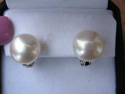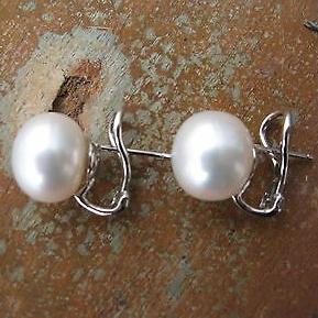 14KT white gold genuine, cultured Paspaley South Sea Pearl omega back earrings.