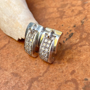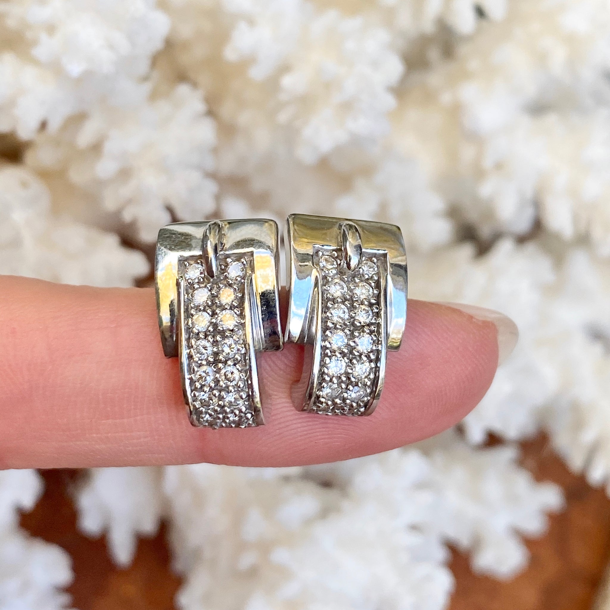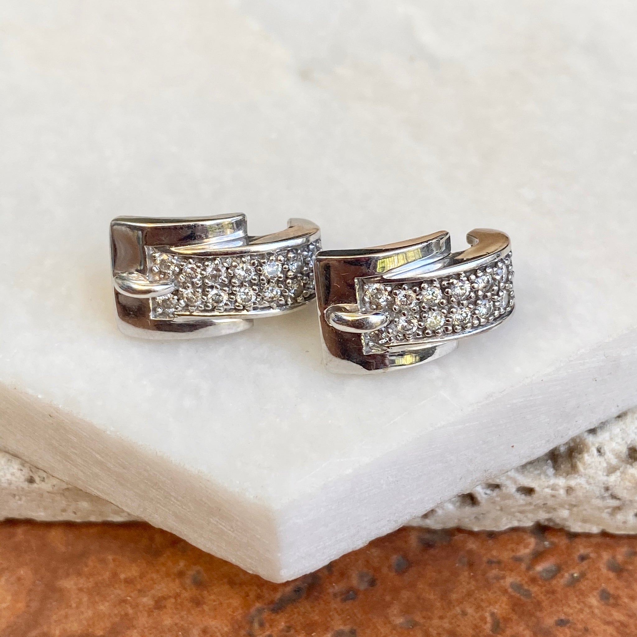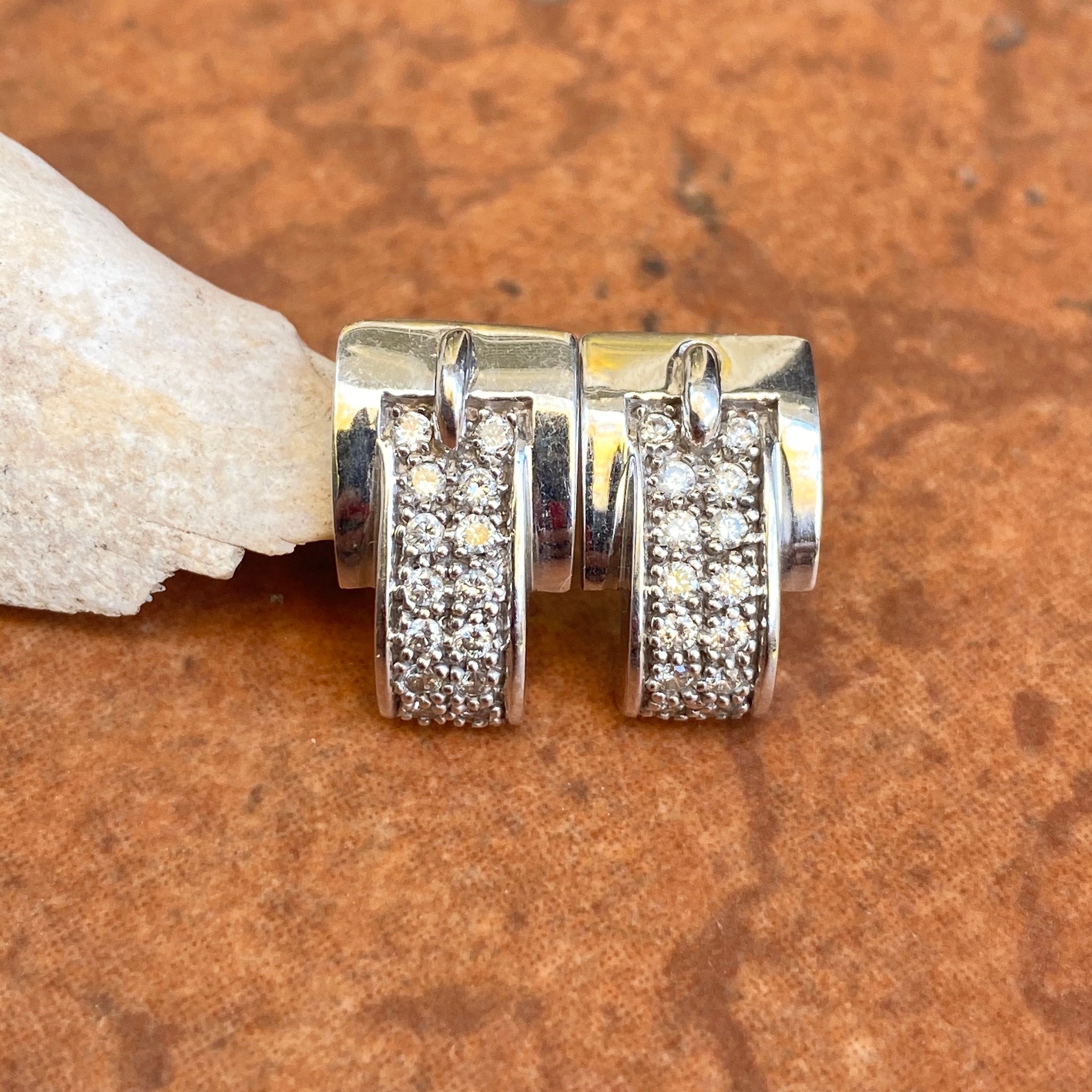 Estate 14KT White Gold 1/3 CT Pave Diamond Half-Hoop Belt Buckle Domed Earrings