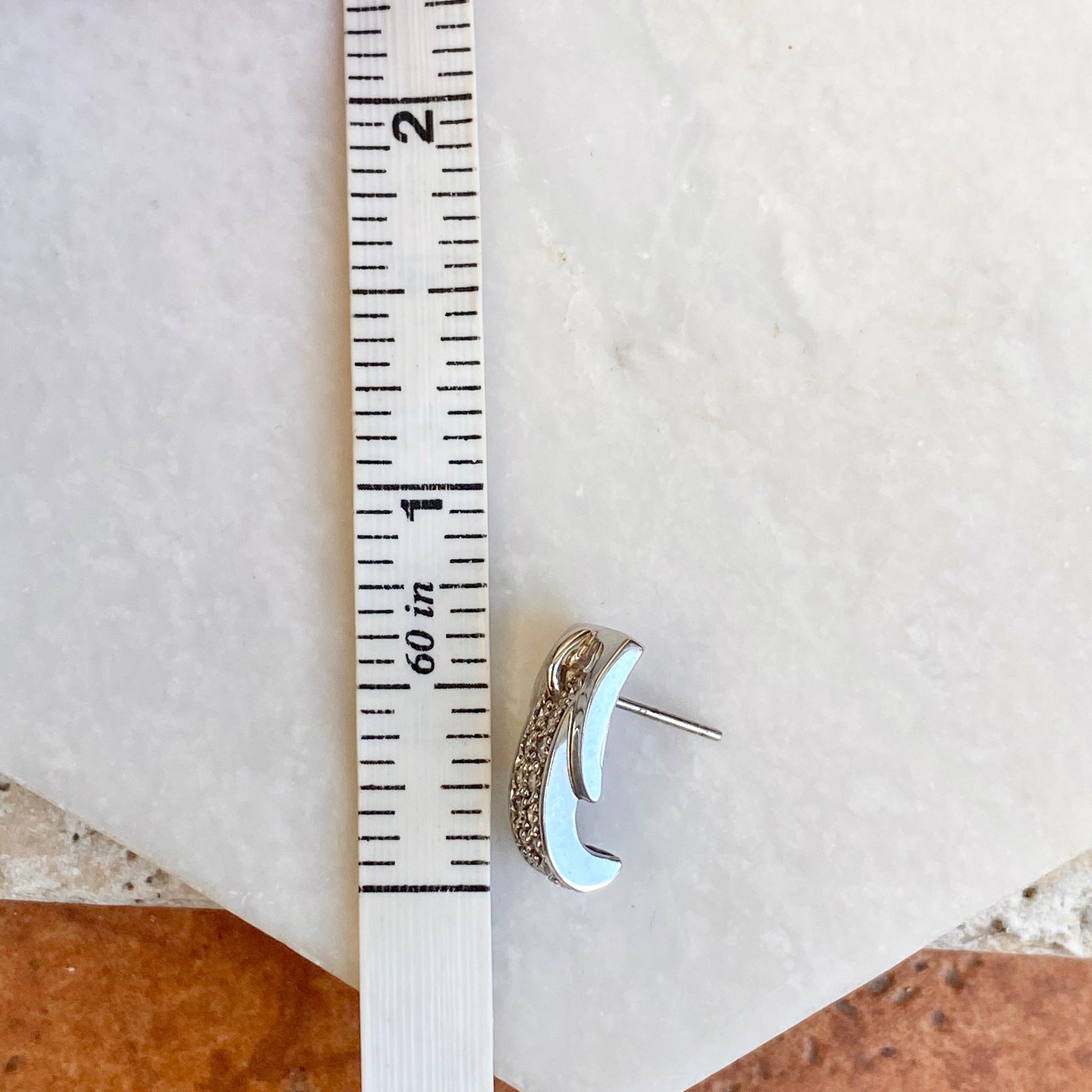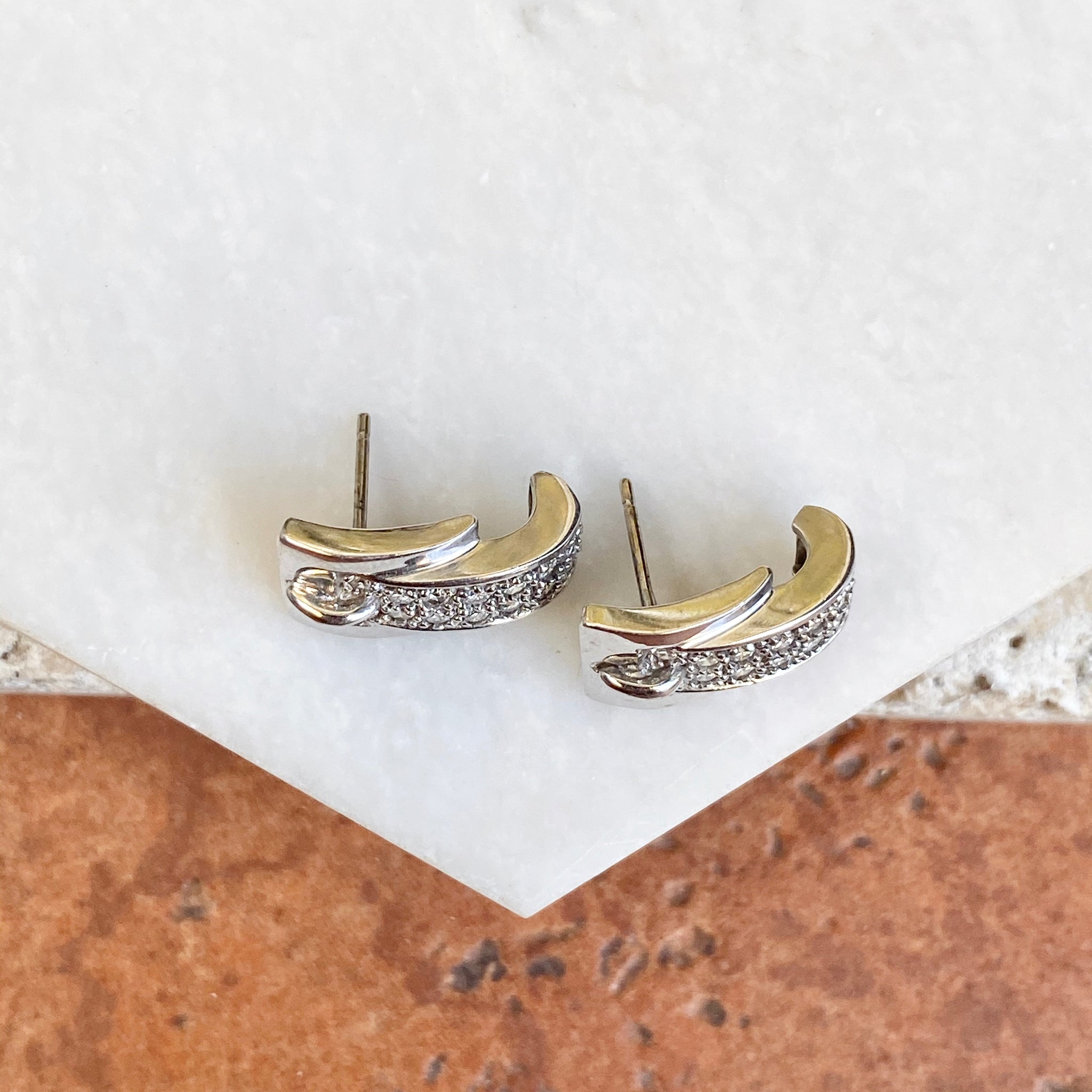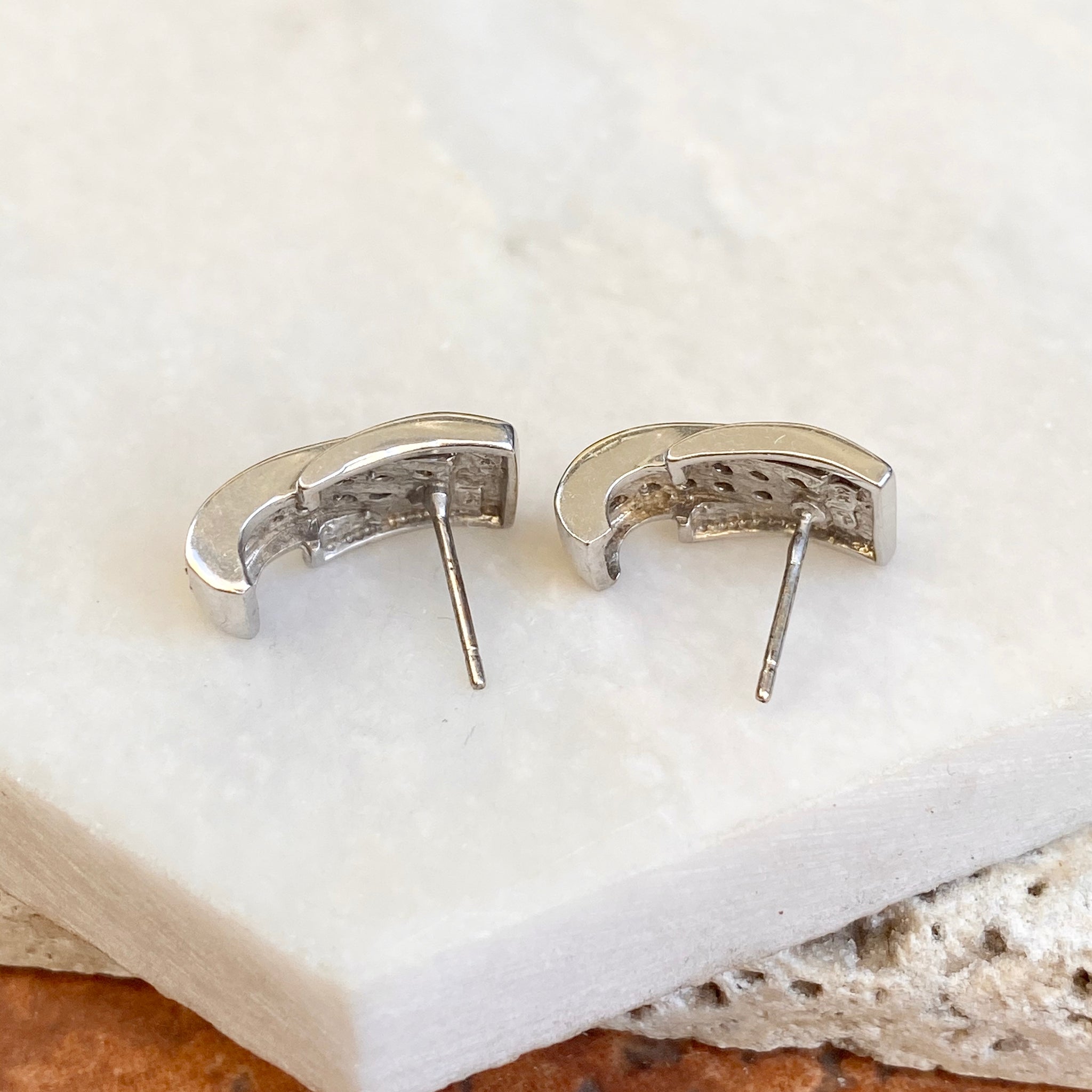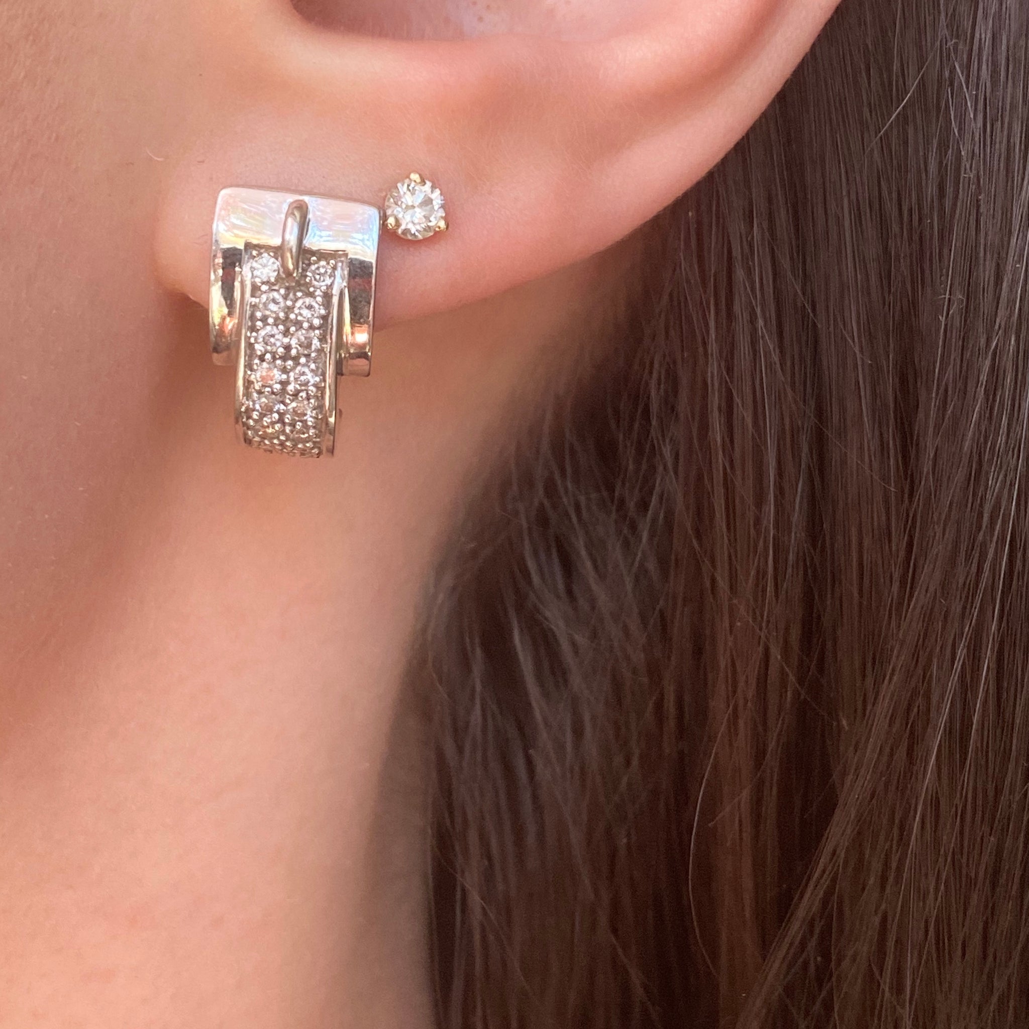 Estate 14KT White Gold 1/3 CT Pave Diamond Half-Hoop Belt Buckle Domed Earrings