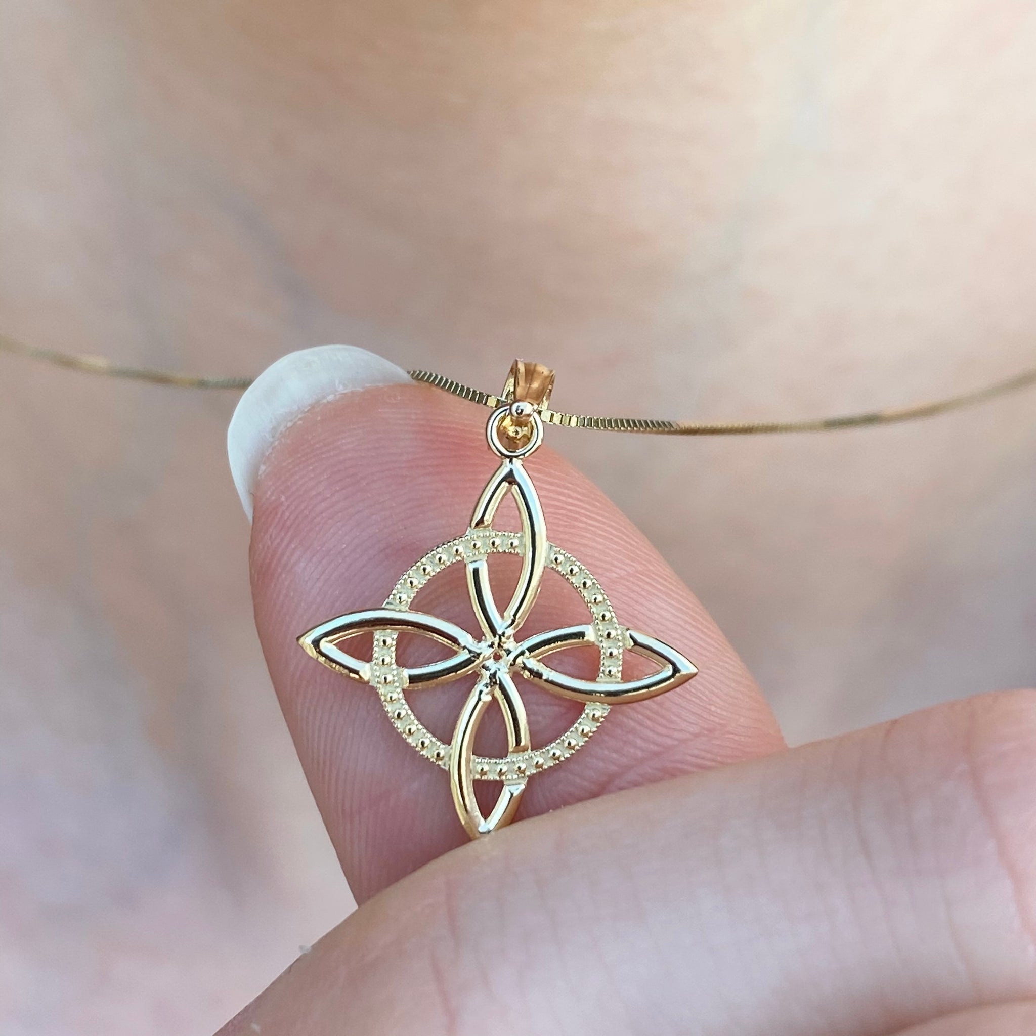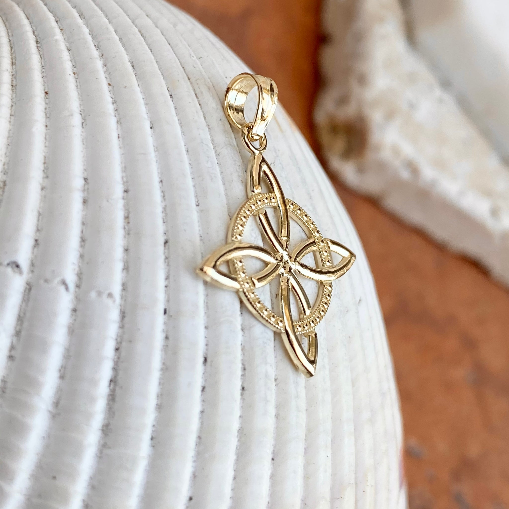 14KT yellow gold Celtic eternity knot with circle + cut-out design pendant charm. Necklace chain sold separately. Perfect gift for an Irish/Scottish lass!