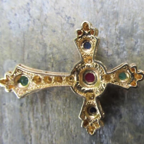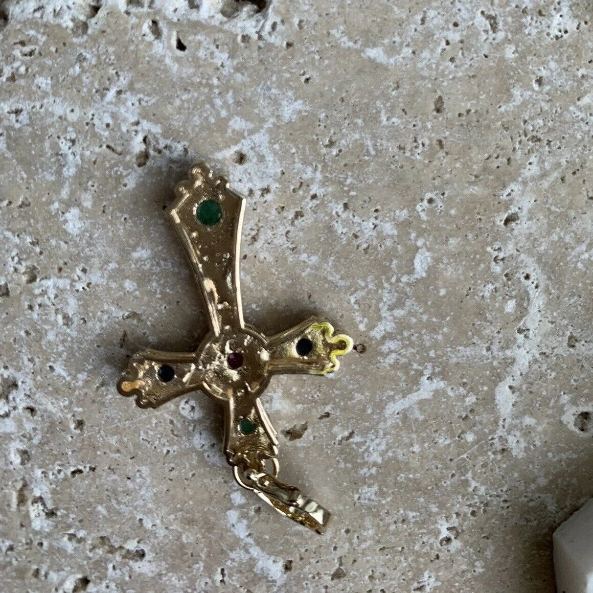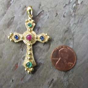 14KT Yellow Gold Gemstones Etruscan Cross Pendant Charm