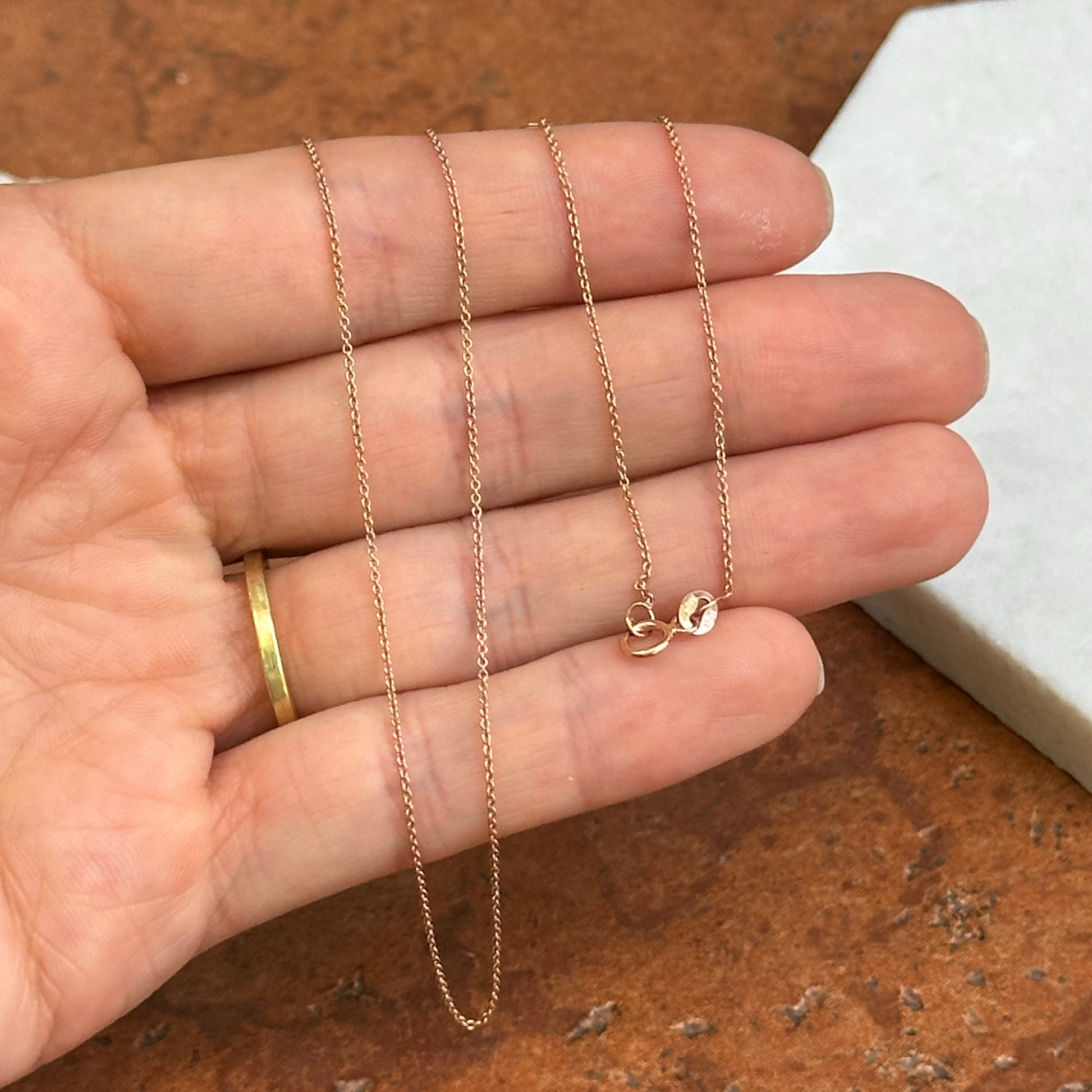 14K Rose Gold 0.9mm Round Cable Chain Link 16-18" Adjustable Necklace