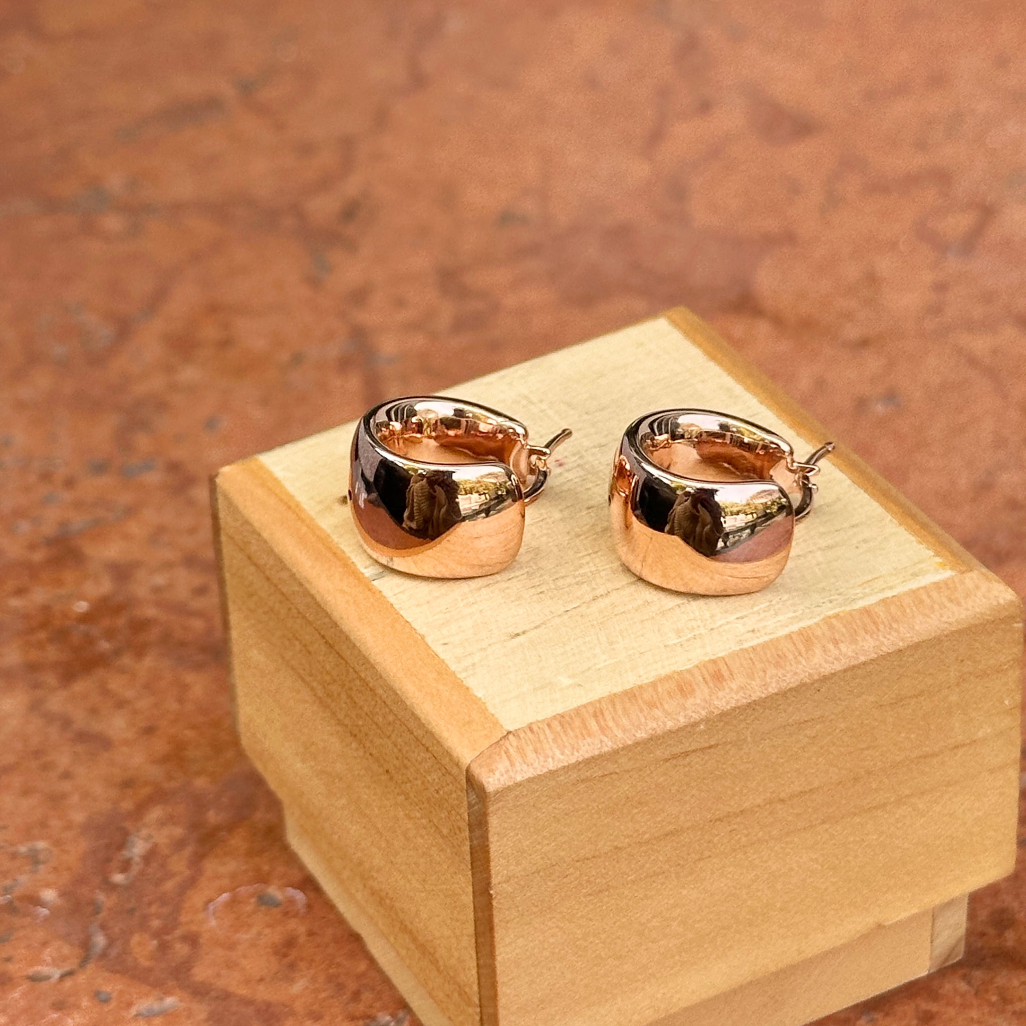 14KT Rose Gold 9.5mm Wide Huggie Hoop Earrings