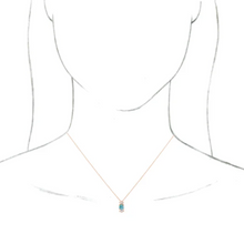 14KT Rose Gold Round Blue Zircon + Baguette Diamond Necklace