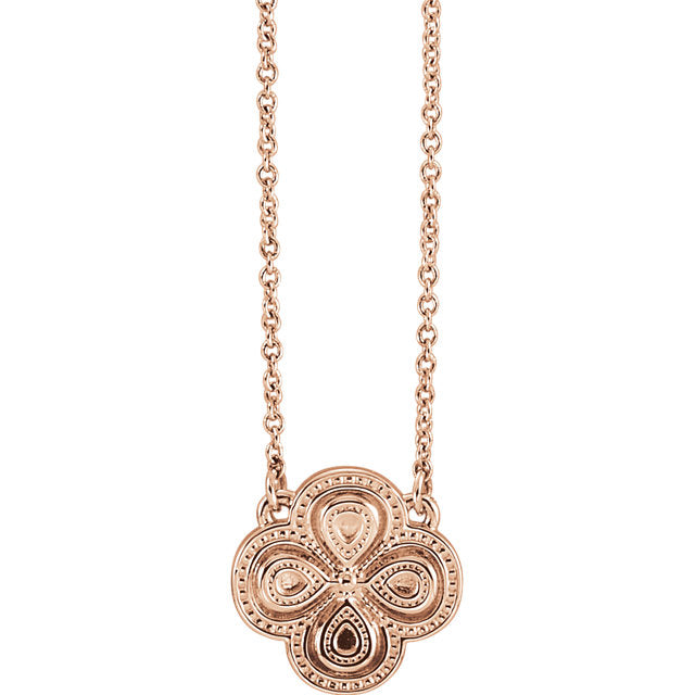 14KT Rose Gold Detailed Clover Pendant Necklace