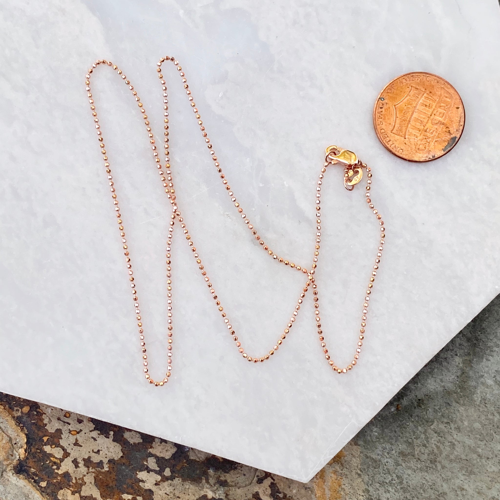 14KT Rose Gold Diamond-Cut Beaded Ball Link Chain Necklace 1mm