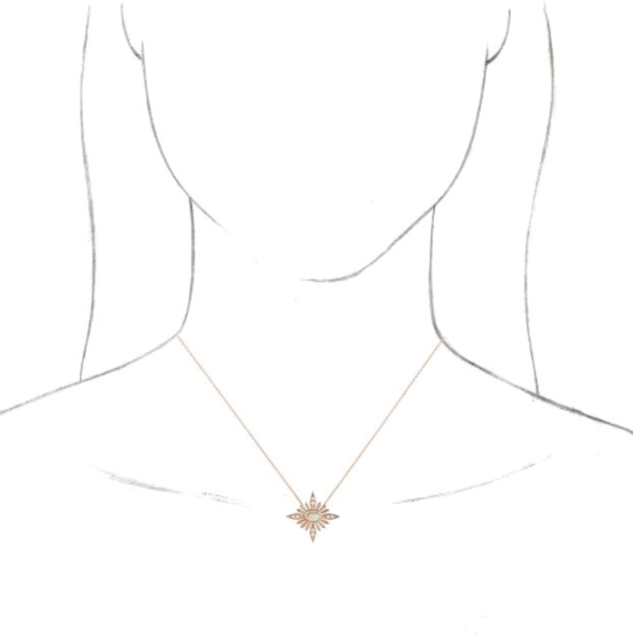 14KT rose gold white Ethiopian opal + diamond celestial style pendant chain necklace. An absolutely stunning piece on the neck + rare jewels!