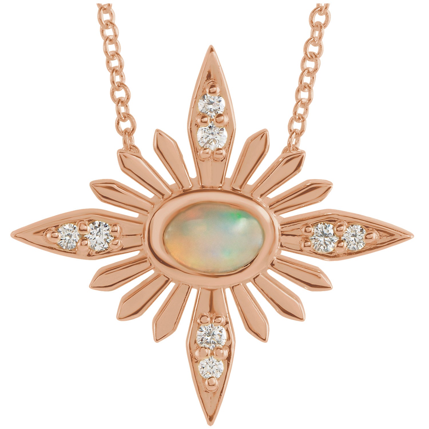 14KT Rose Gold Ethiopian Opal + Diamond Celestial Necklace