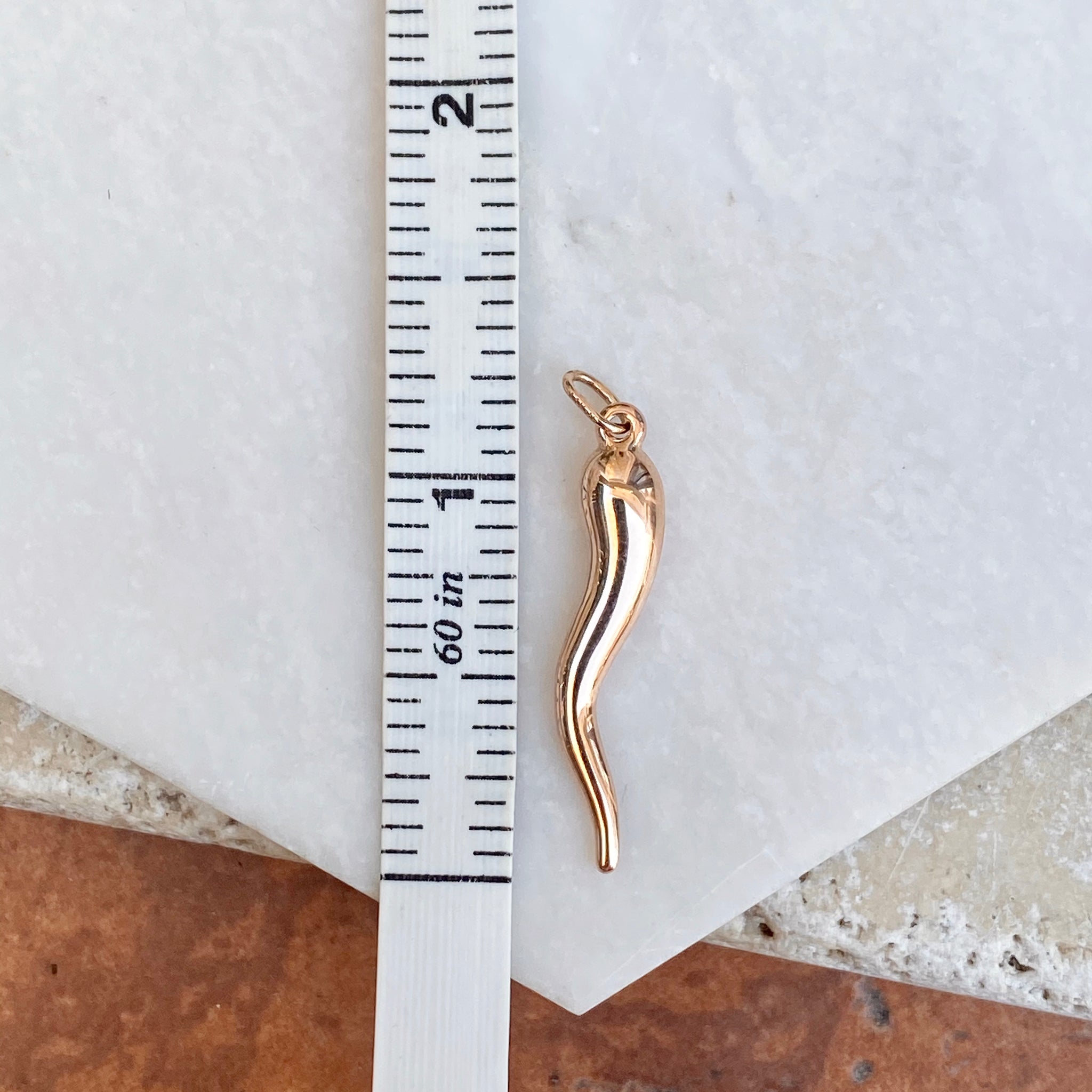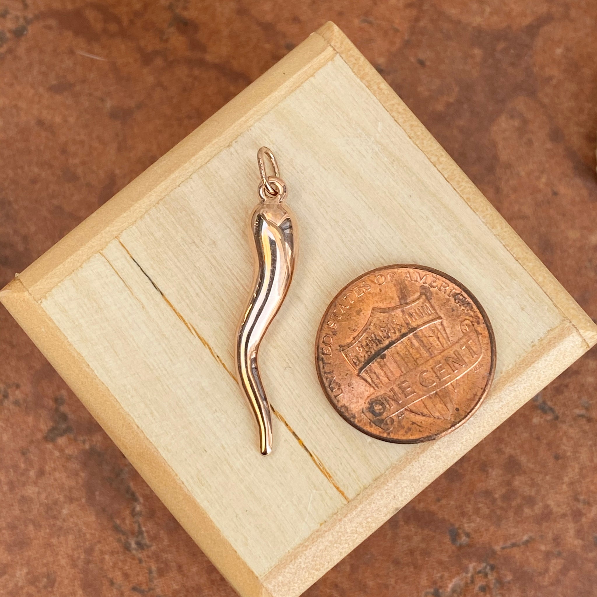 14KT Rose Gold Medium "Cornicello" Italian Horn Pendant Charm 30mm
