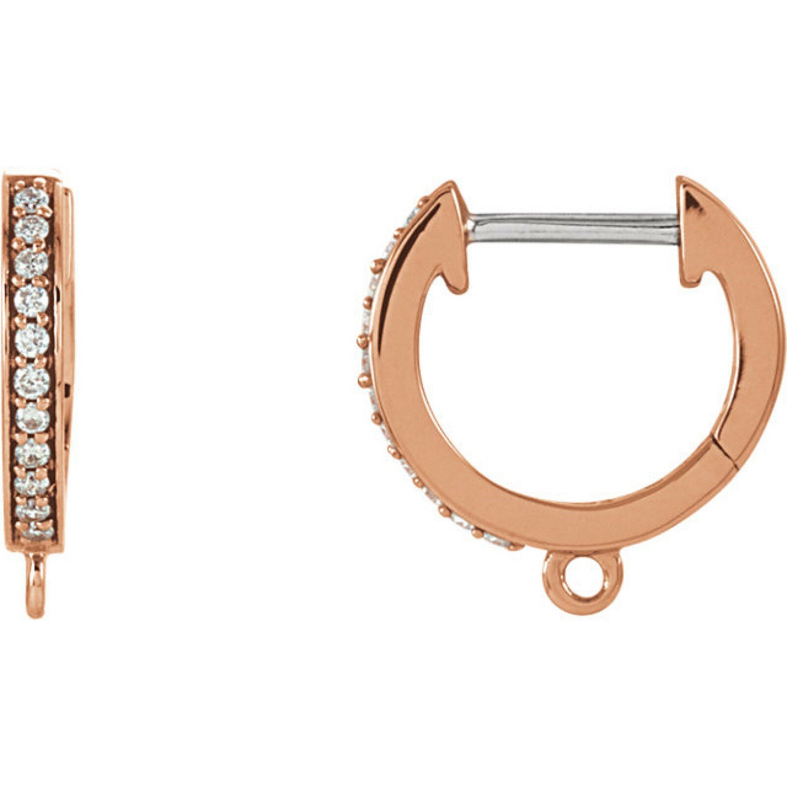 14KT rose gold diamond huggie hoop earrings with jump ring. Create your own earrings by adding charms to the jump ring!