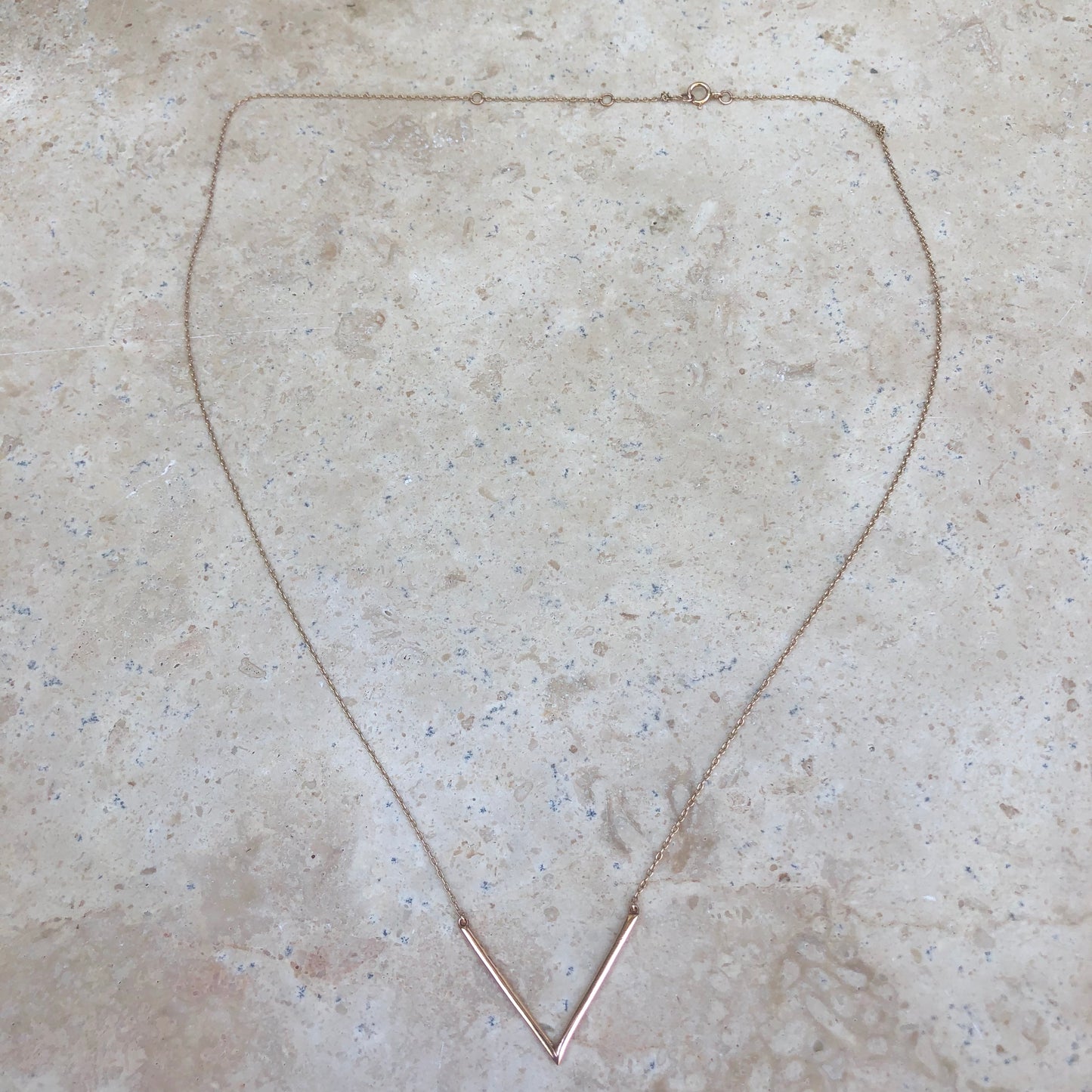 14KT rose gold "V" chain necklace. Beautiful modern necklace to wear by itself for a minimal look or layer it with other necklaces!