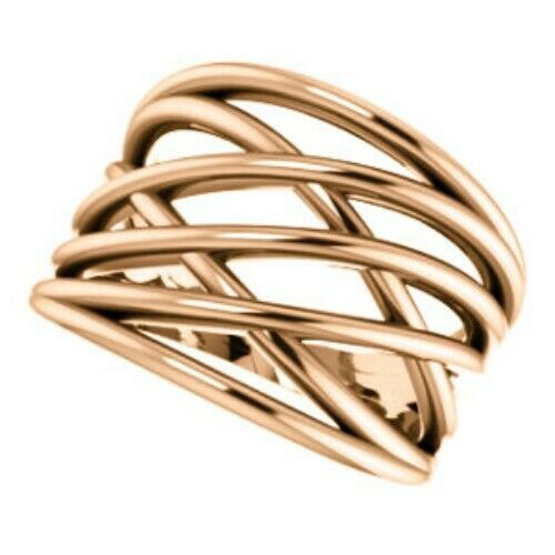 14KT Rose Gold Polished Weave Cigar Band Ring
