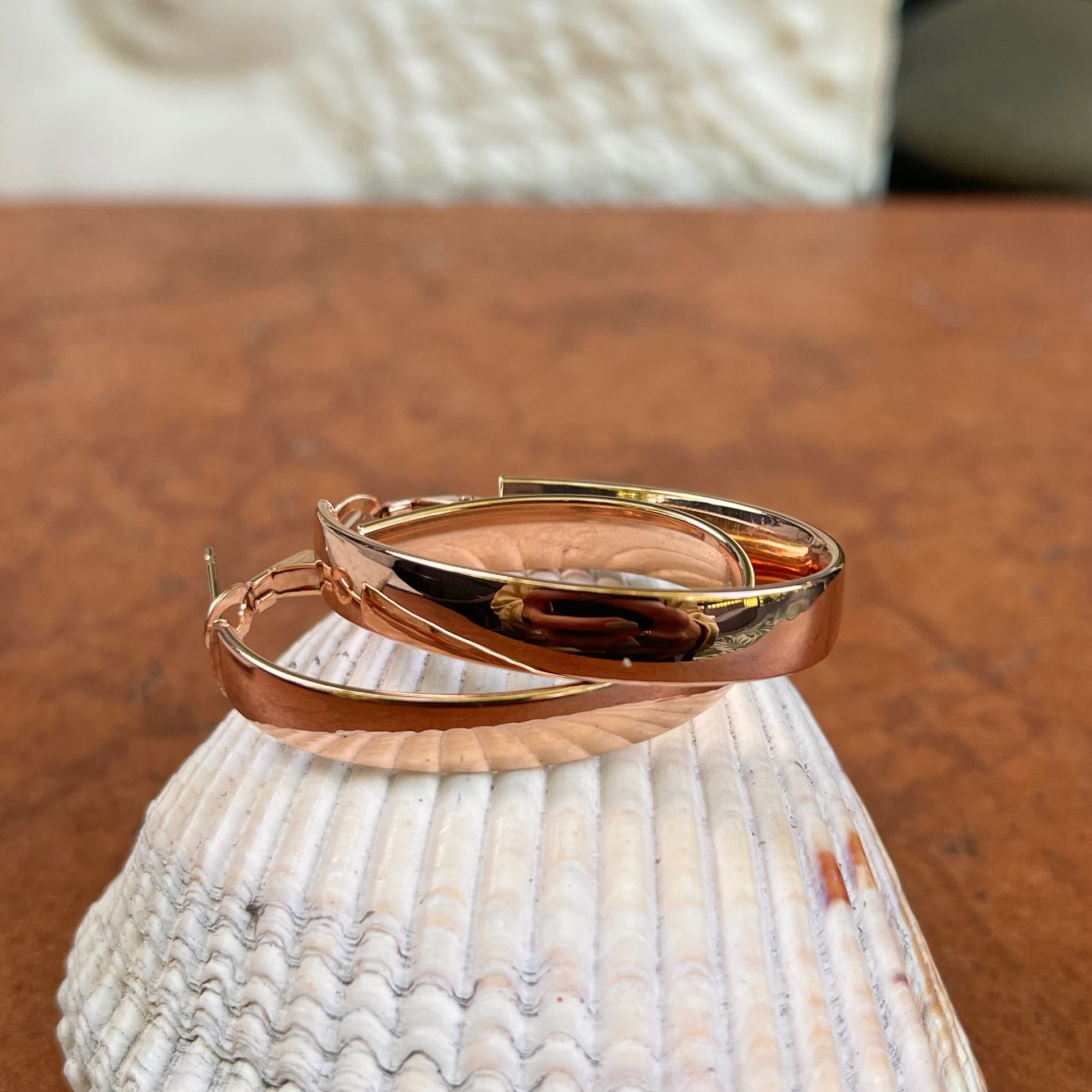 14KT Rose Gold Rounded 7mm Wide Oval Hoop Earrings 39mm