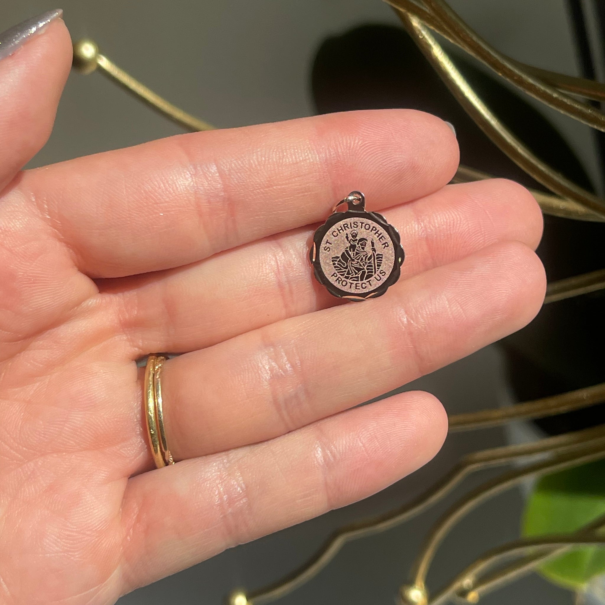 14KT rose gold St.Christopher round medal pendant charm. Beautiful, rare rose gold charm to slide onto a thin, rose gold chain! Necklace chain sold separately.