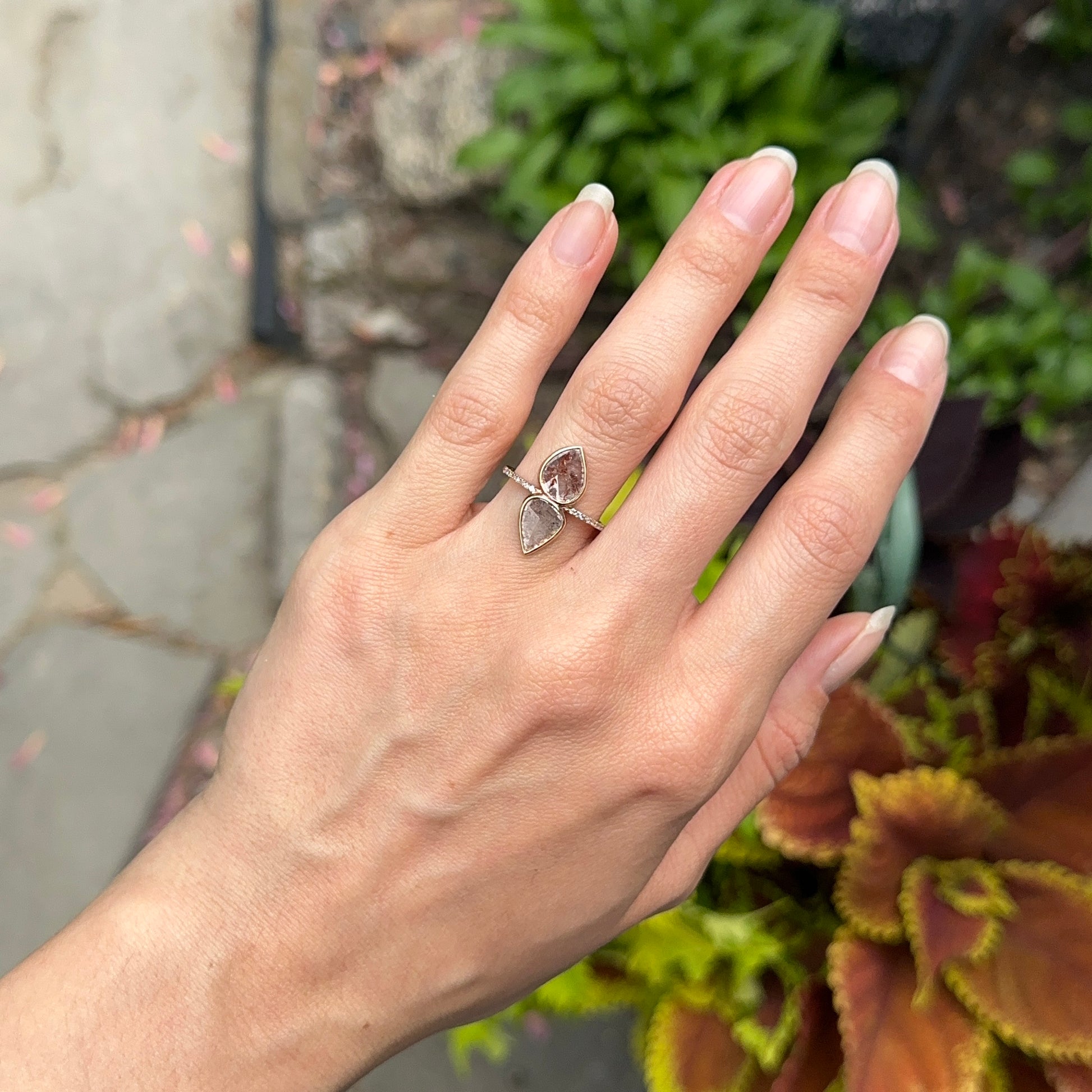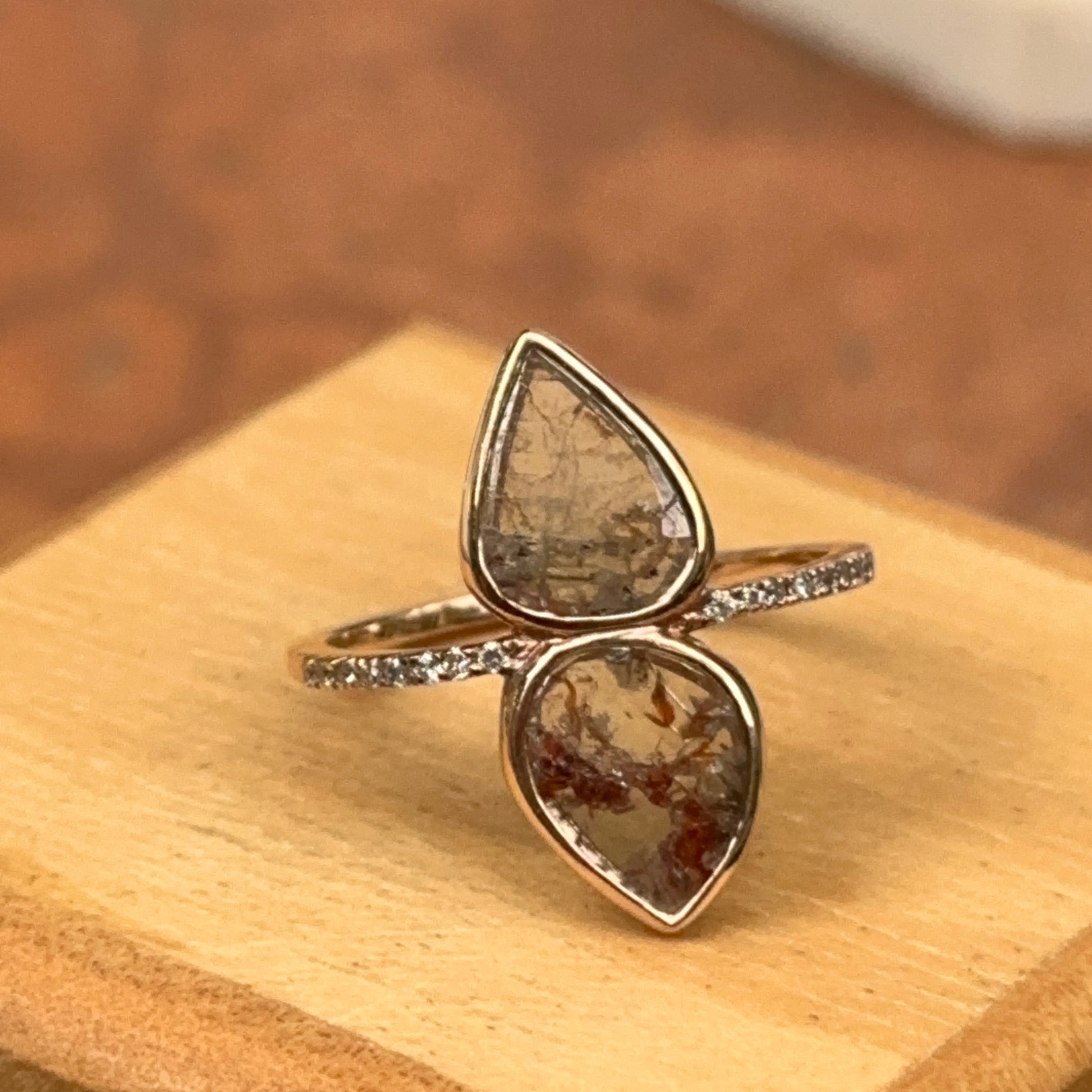 14KT Rose Gold Teardrop Geometric Gray Diamond Slice Ring