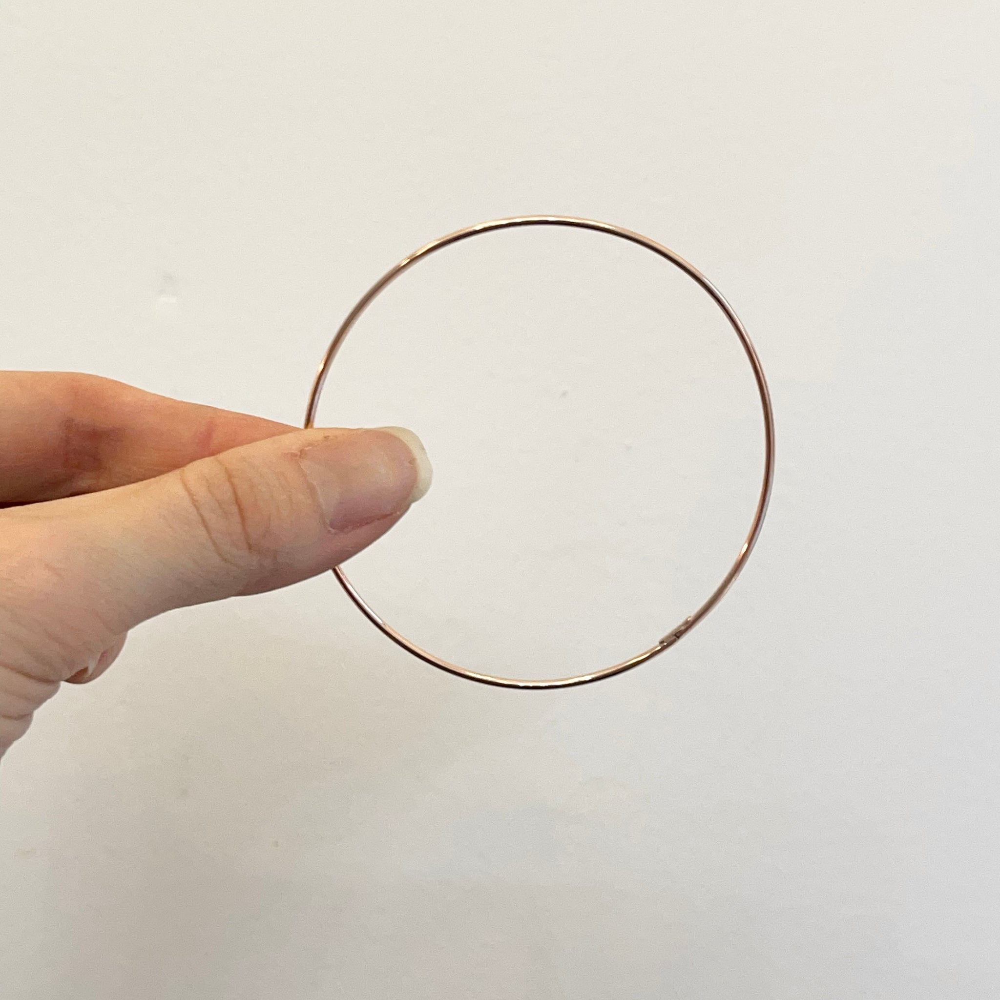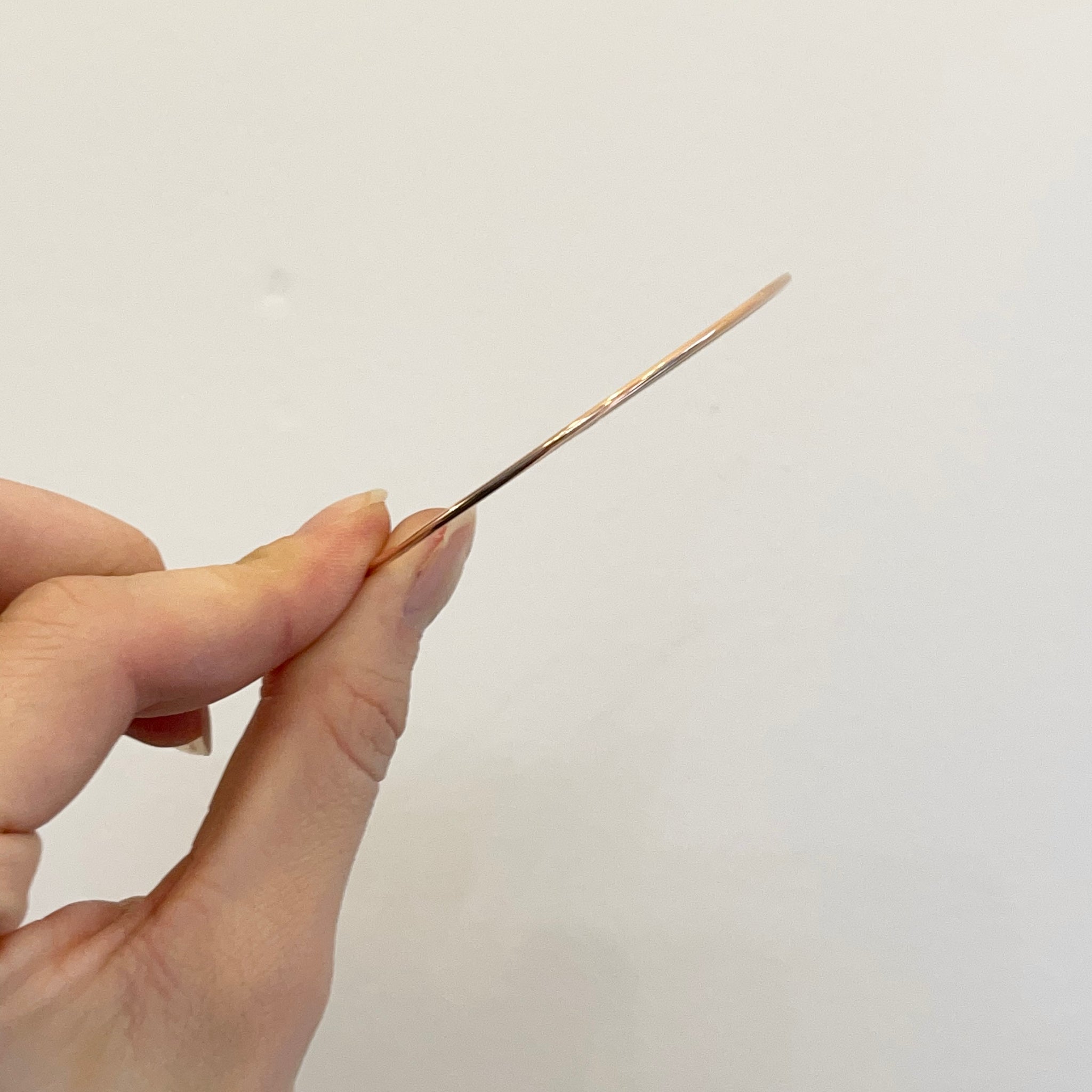 14KT rose gold thin bangle slip-on bracelet. A sleek, thin + minimal bangle perfect for slipping-on day-to-day! Wear alone or stack it with other bangle bracelets.
