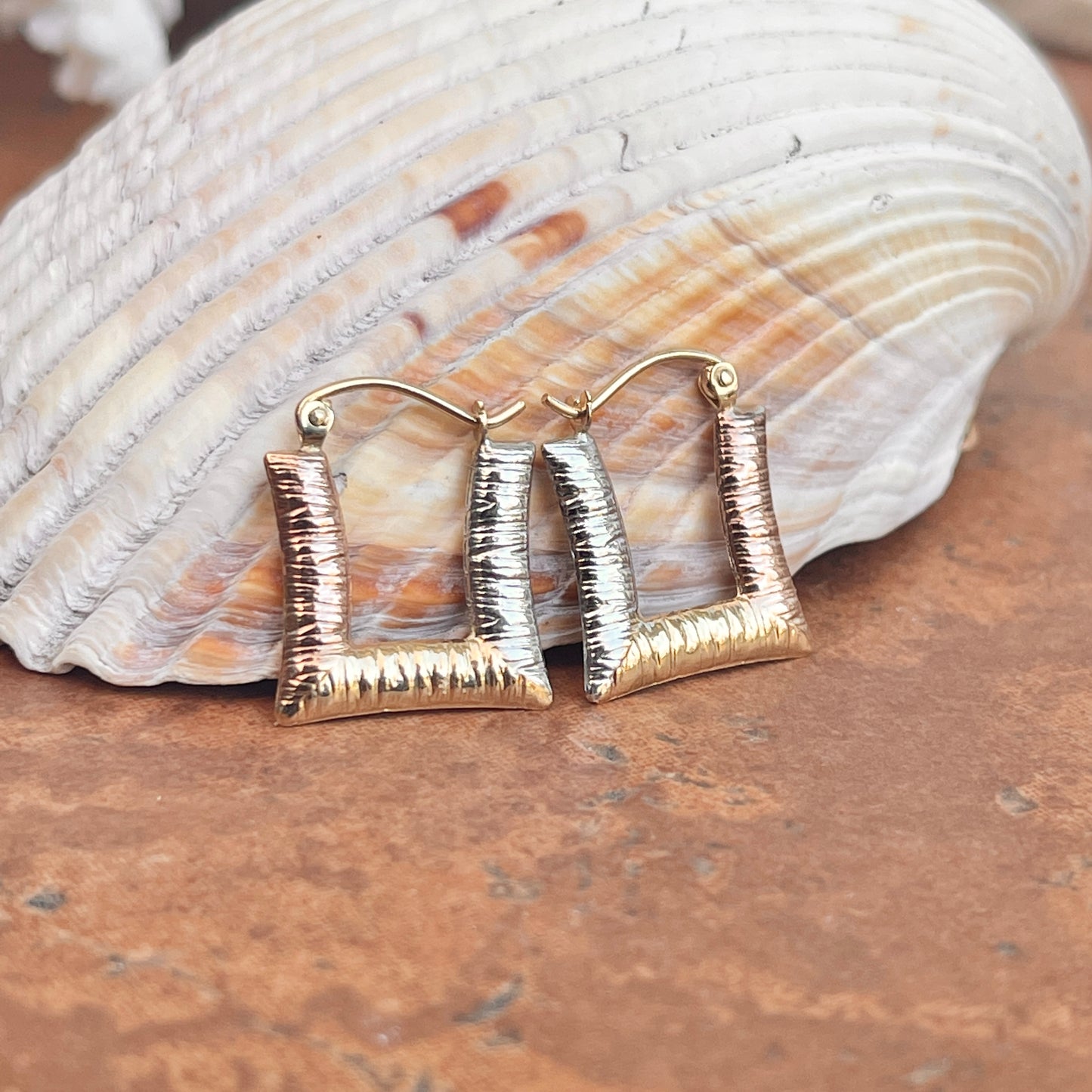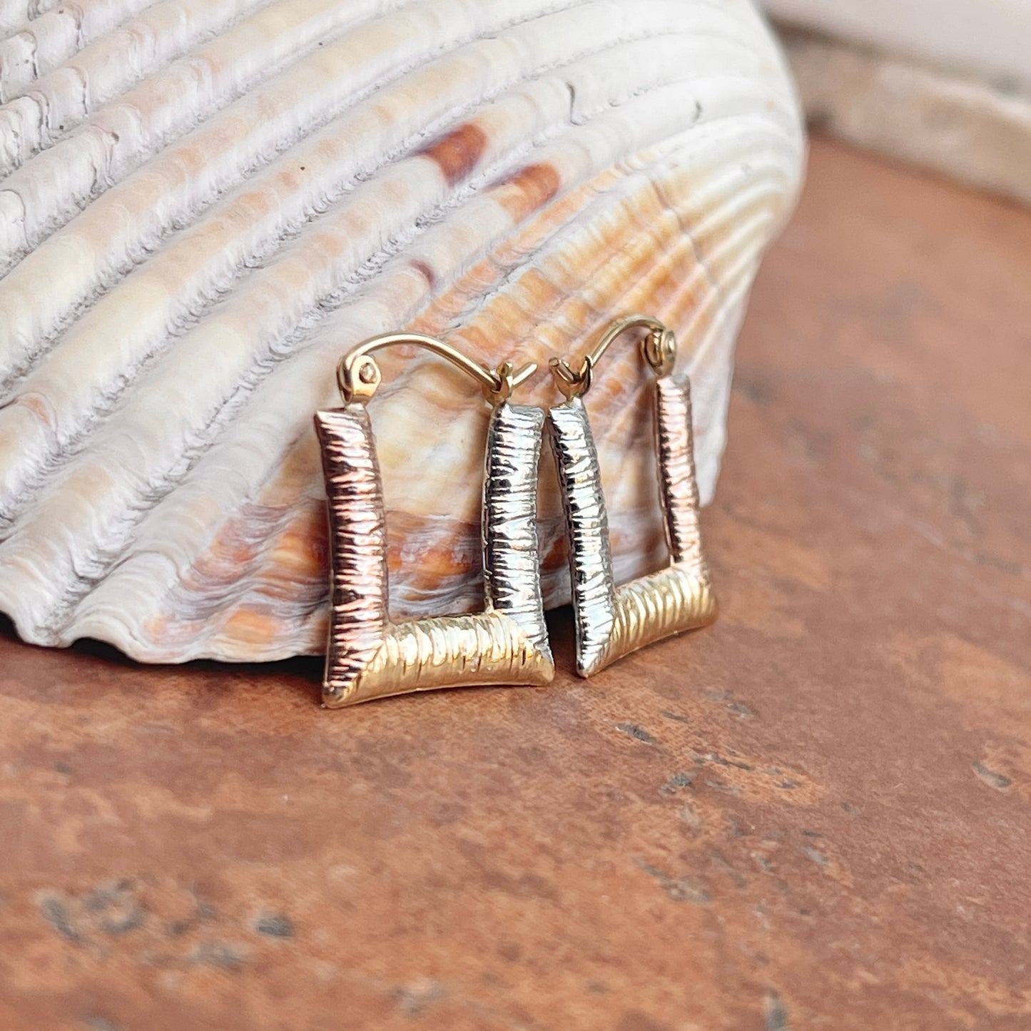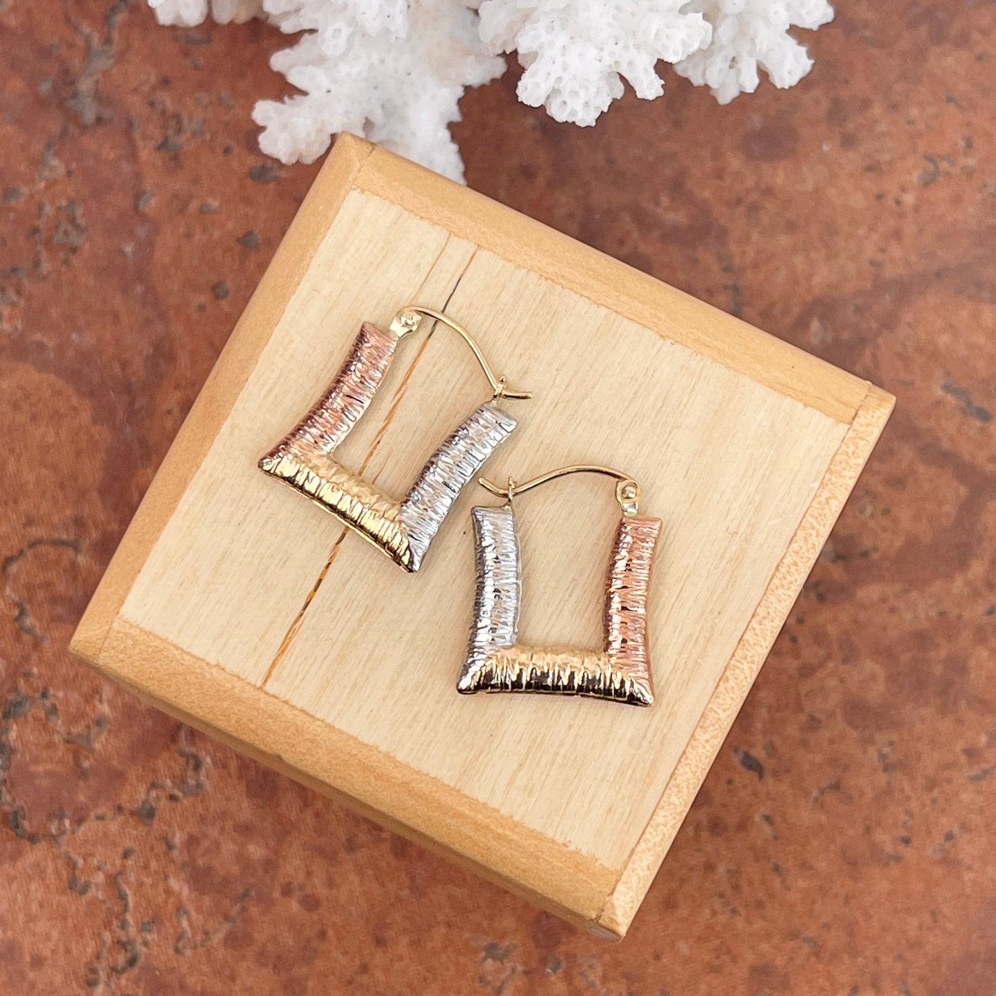 14KT Rose Gold, Yellow Gold, + White Gold Textured Square Hoop Earrings