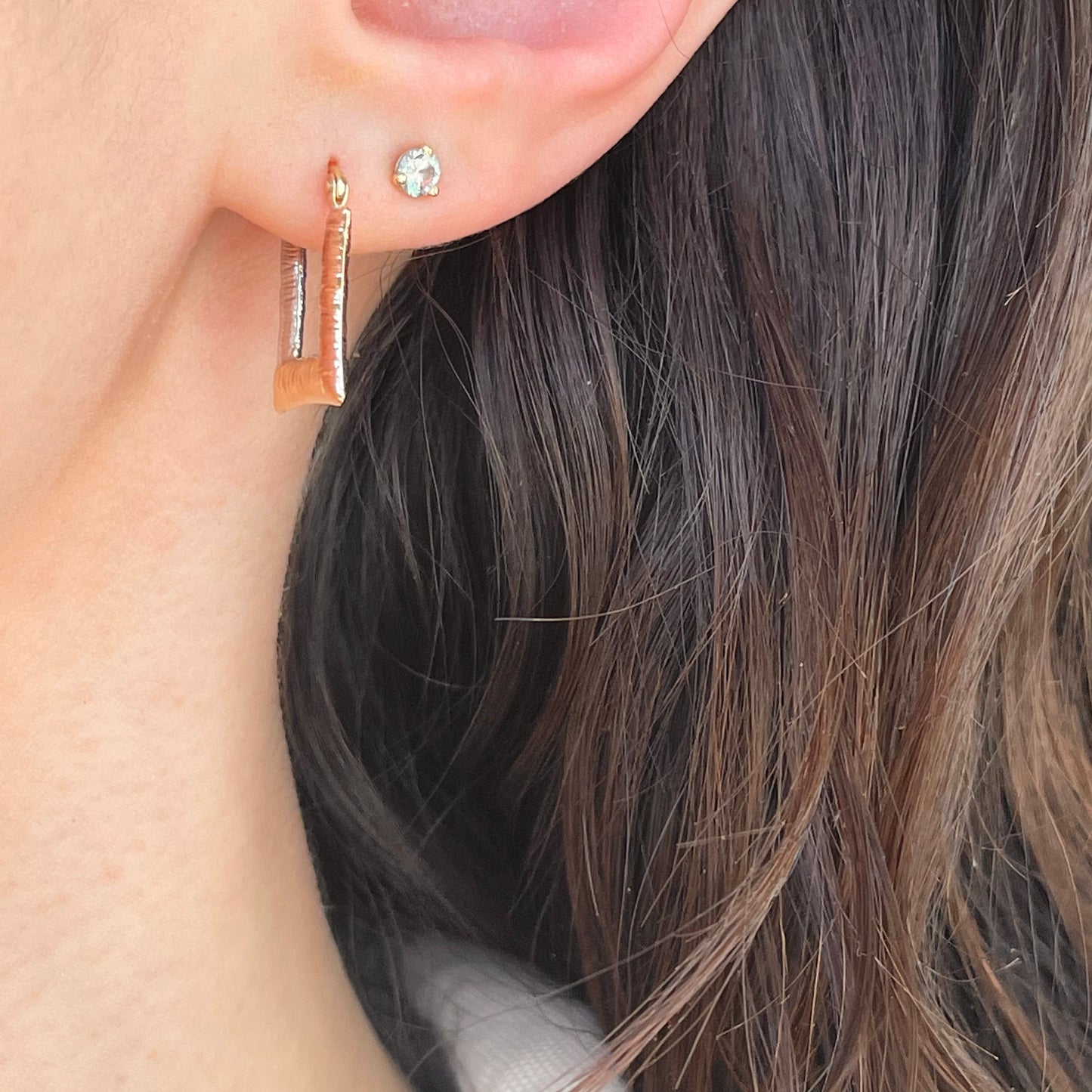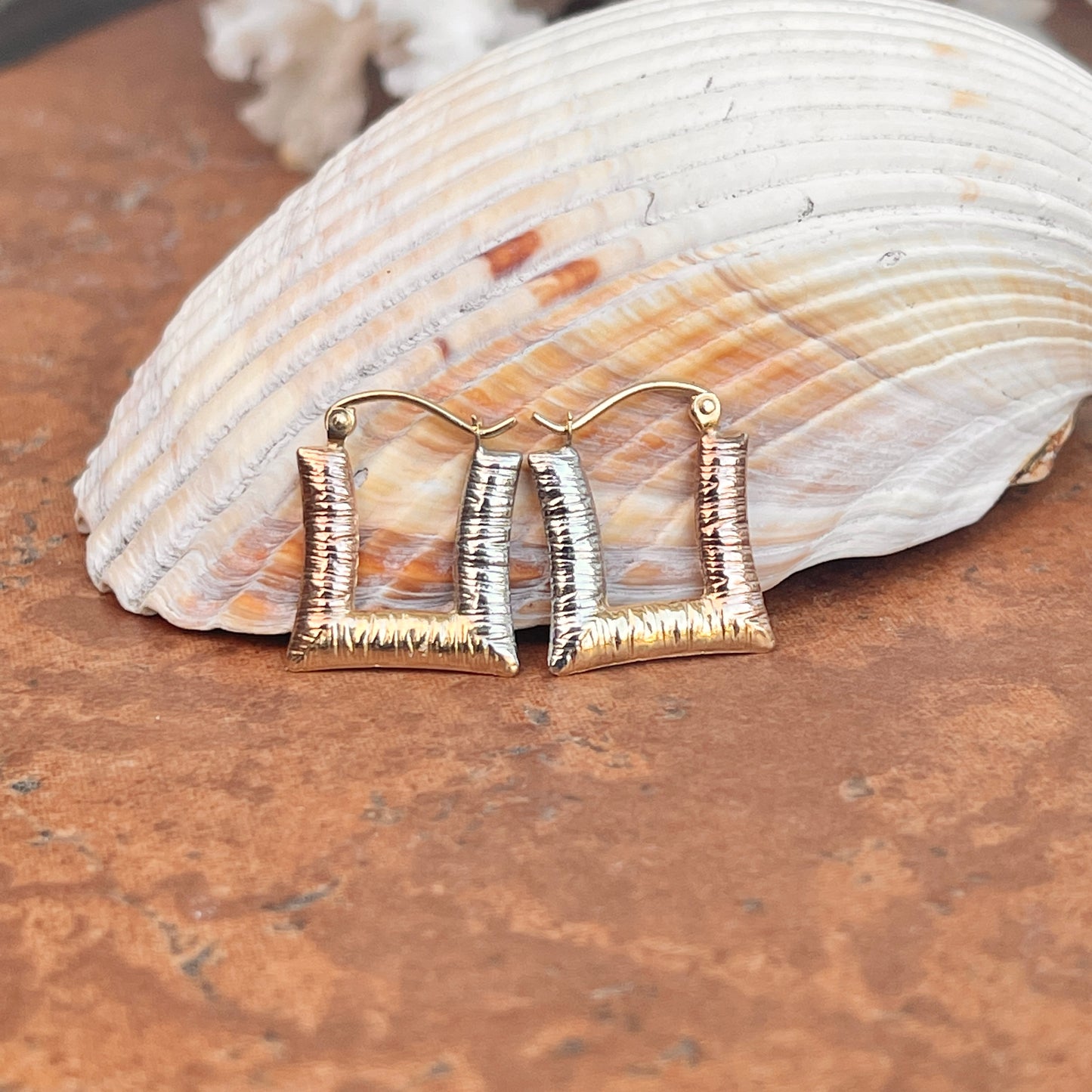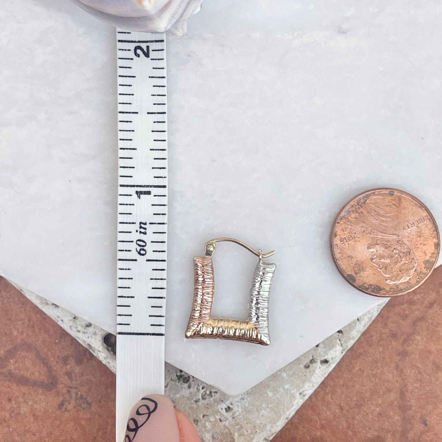 14KT Rose Gold, Yellow Gold, + White Gold Textured Square Hoop Earrings