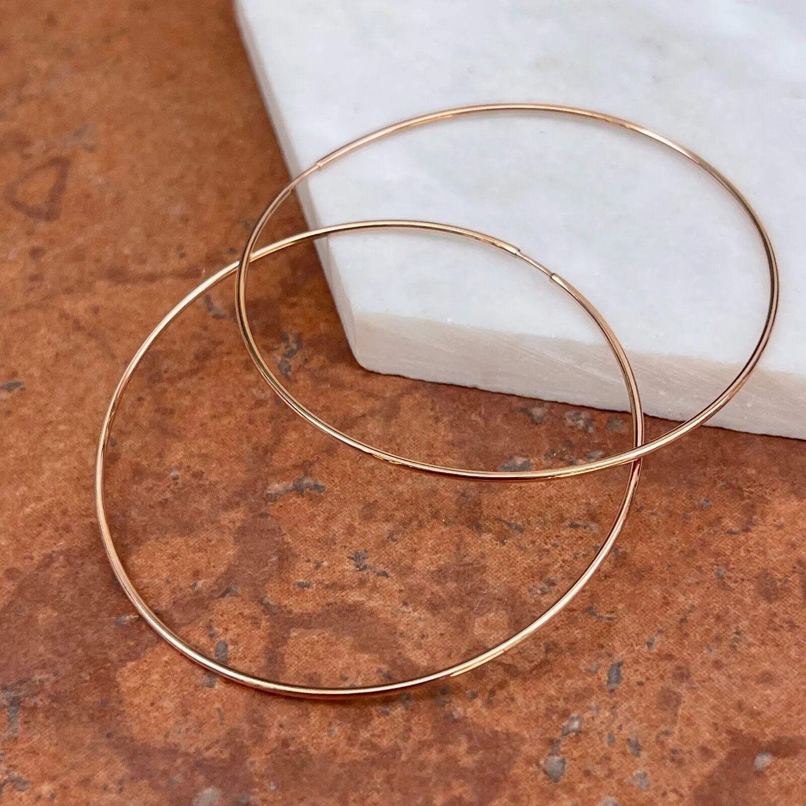 14KT Rose Pink Gold 1.25mm Thin Tube Endless Round Hoop Earrings 60mm