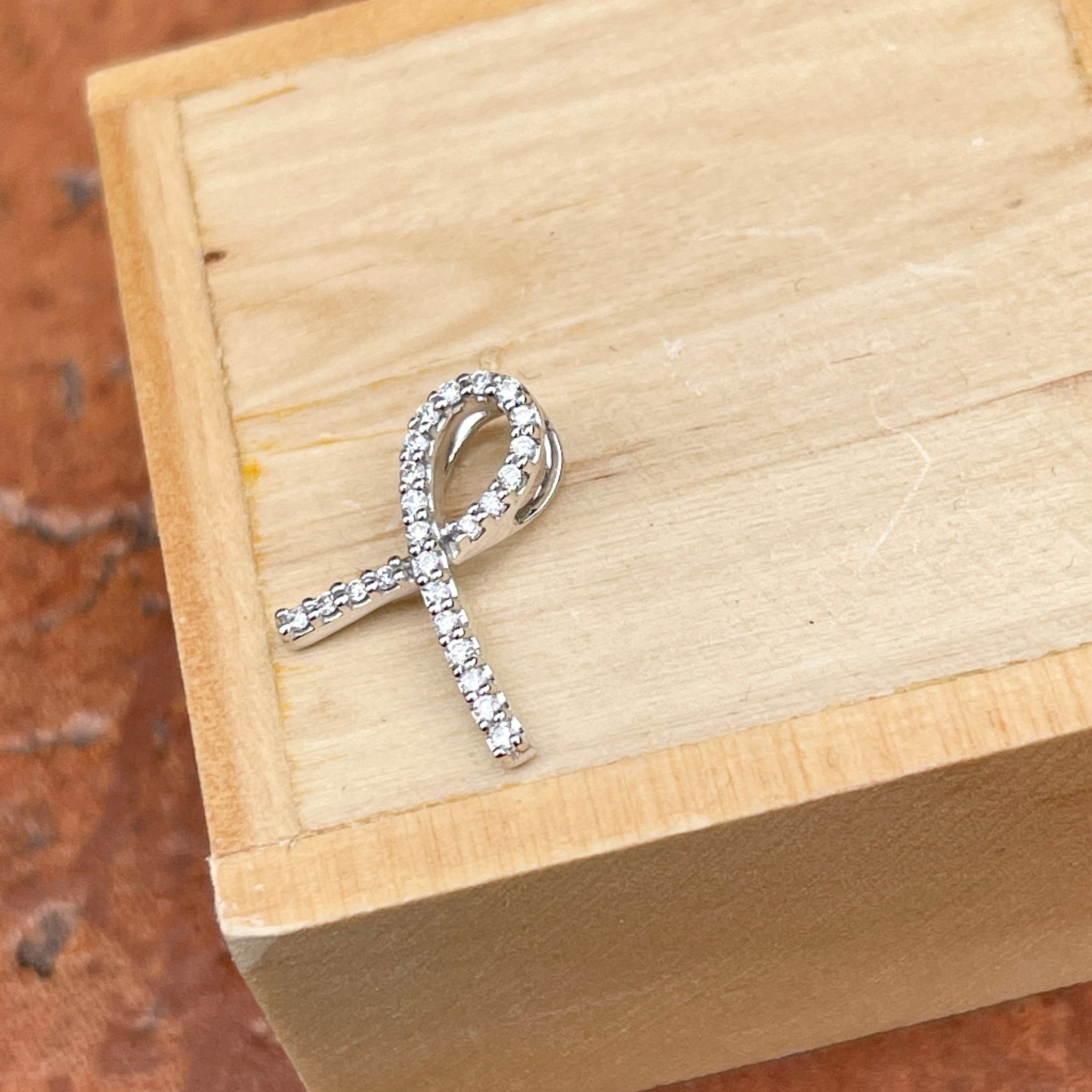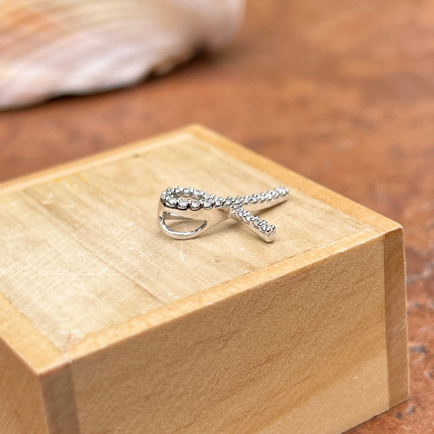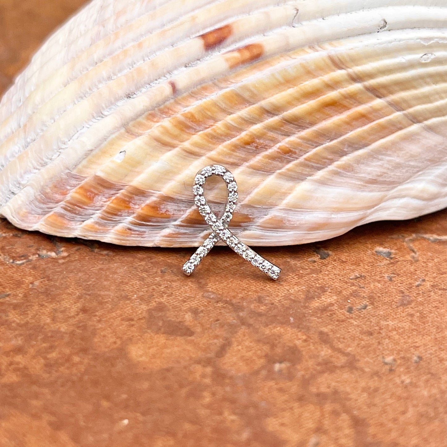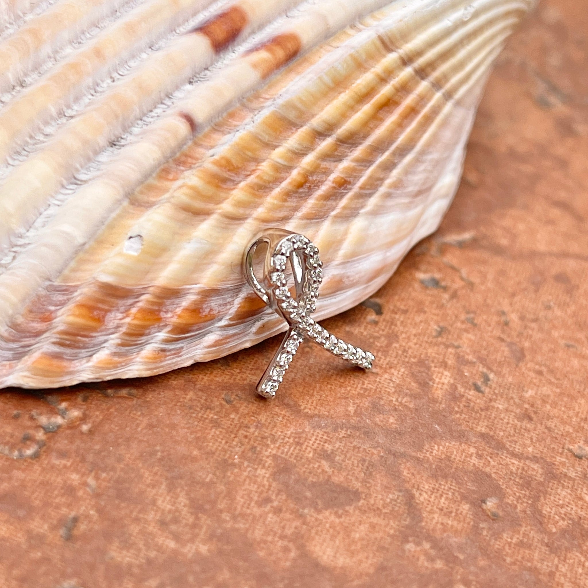 14KT White Gold 1/10 CT Diamond Breast Cancer Awareness Ribbon Pendant Slide