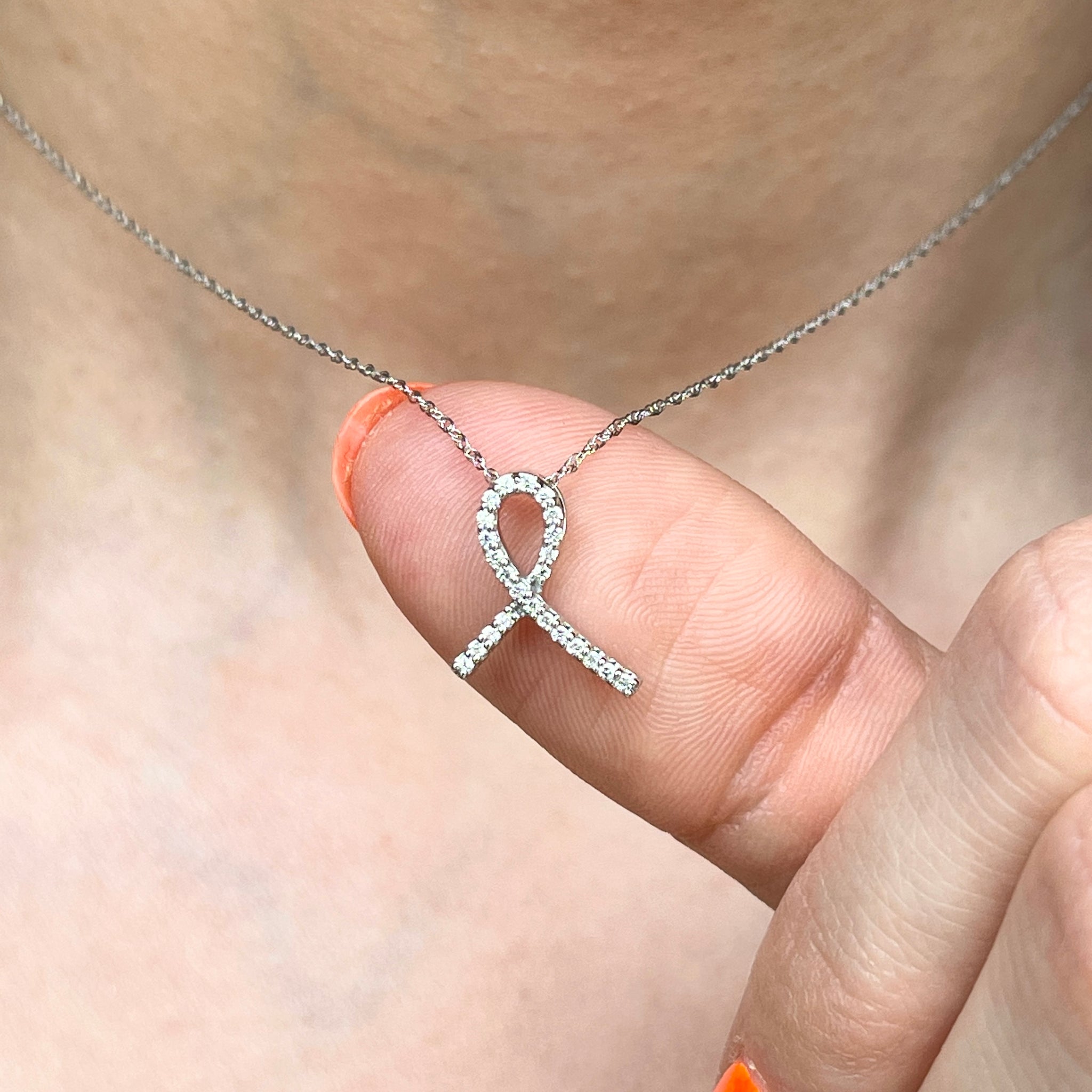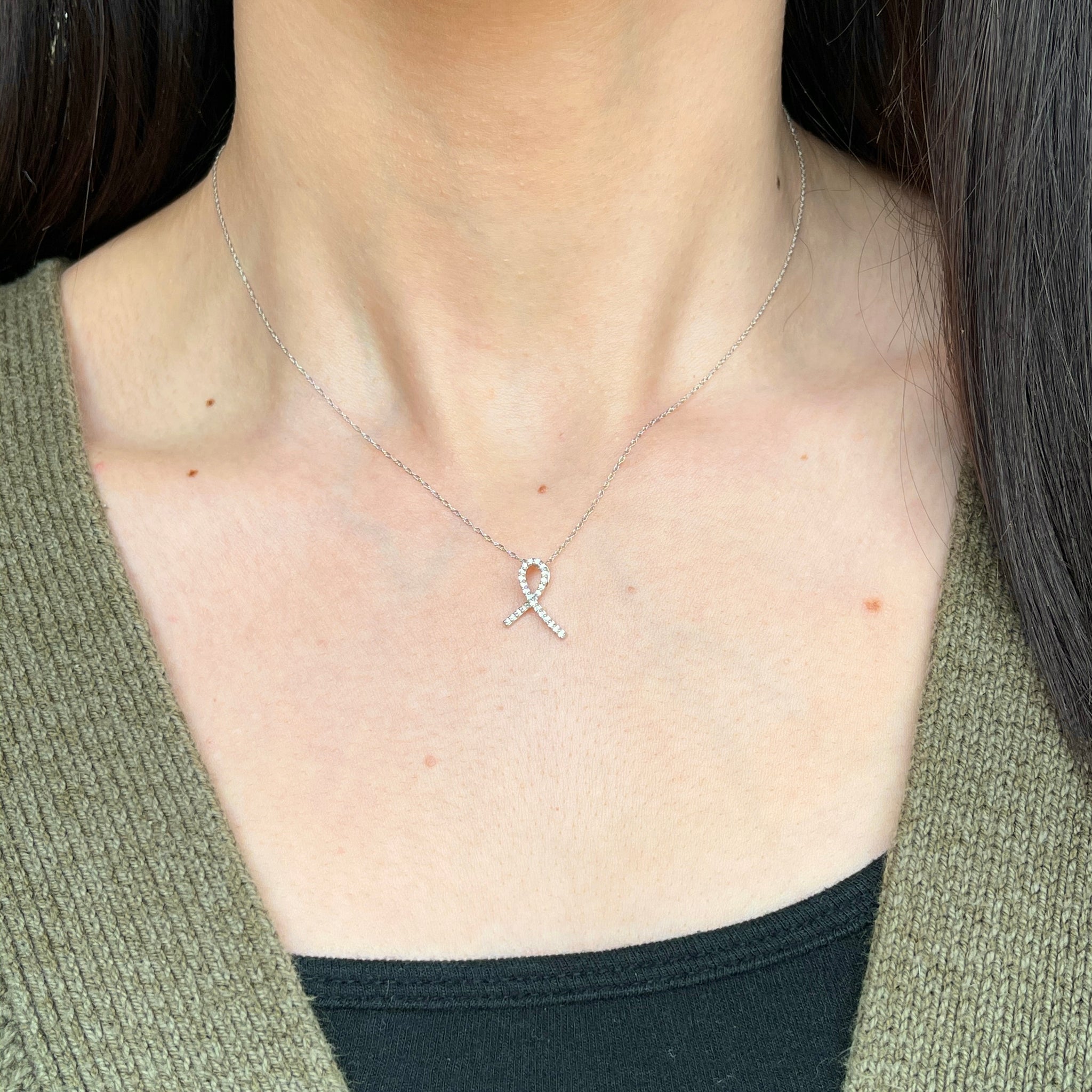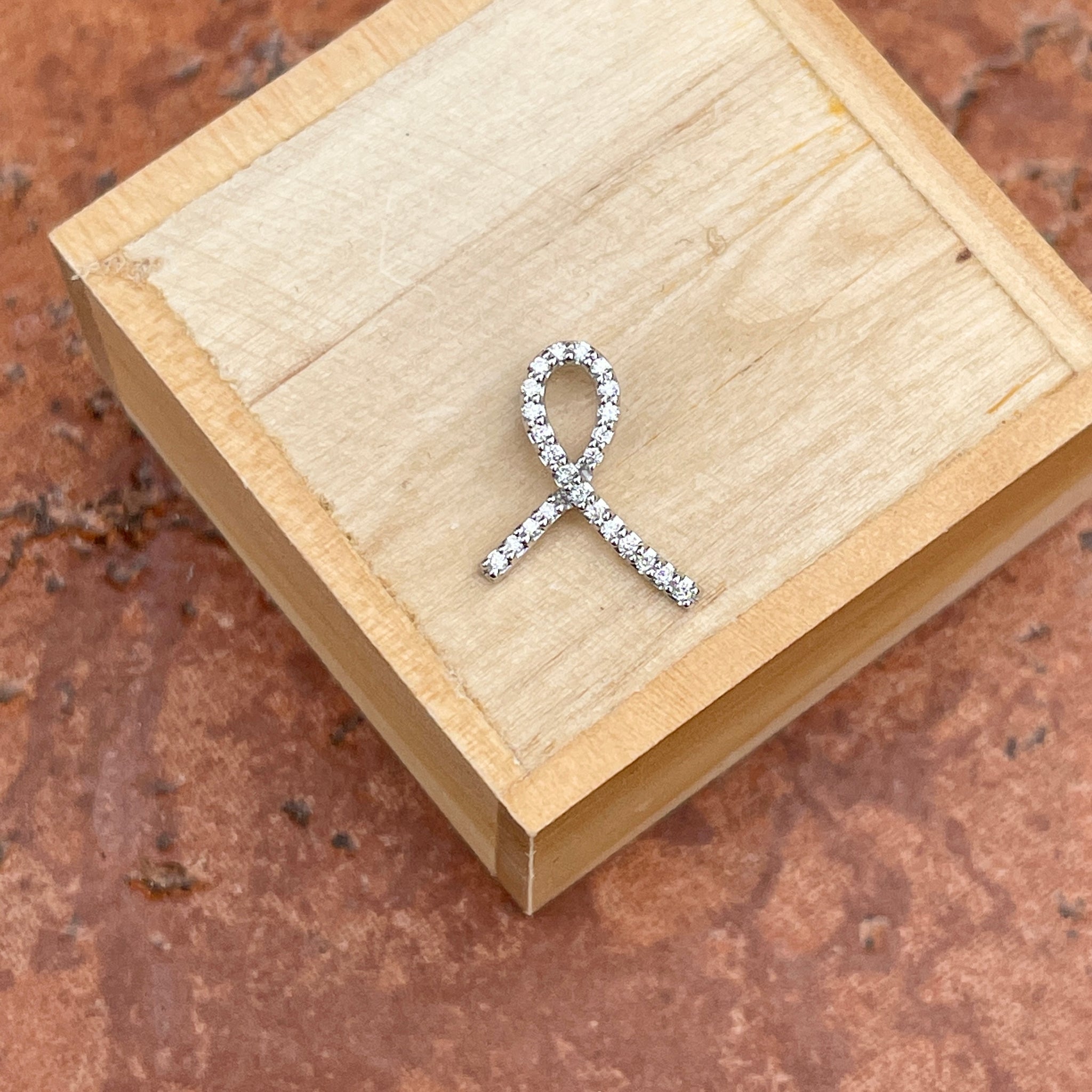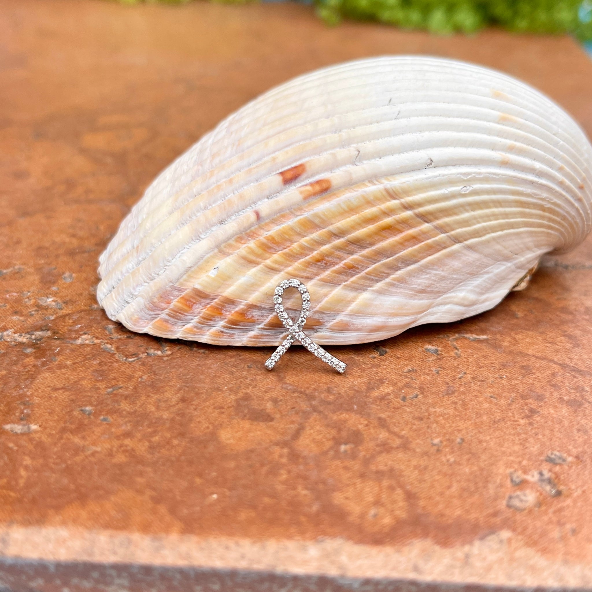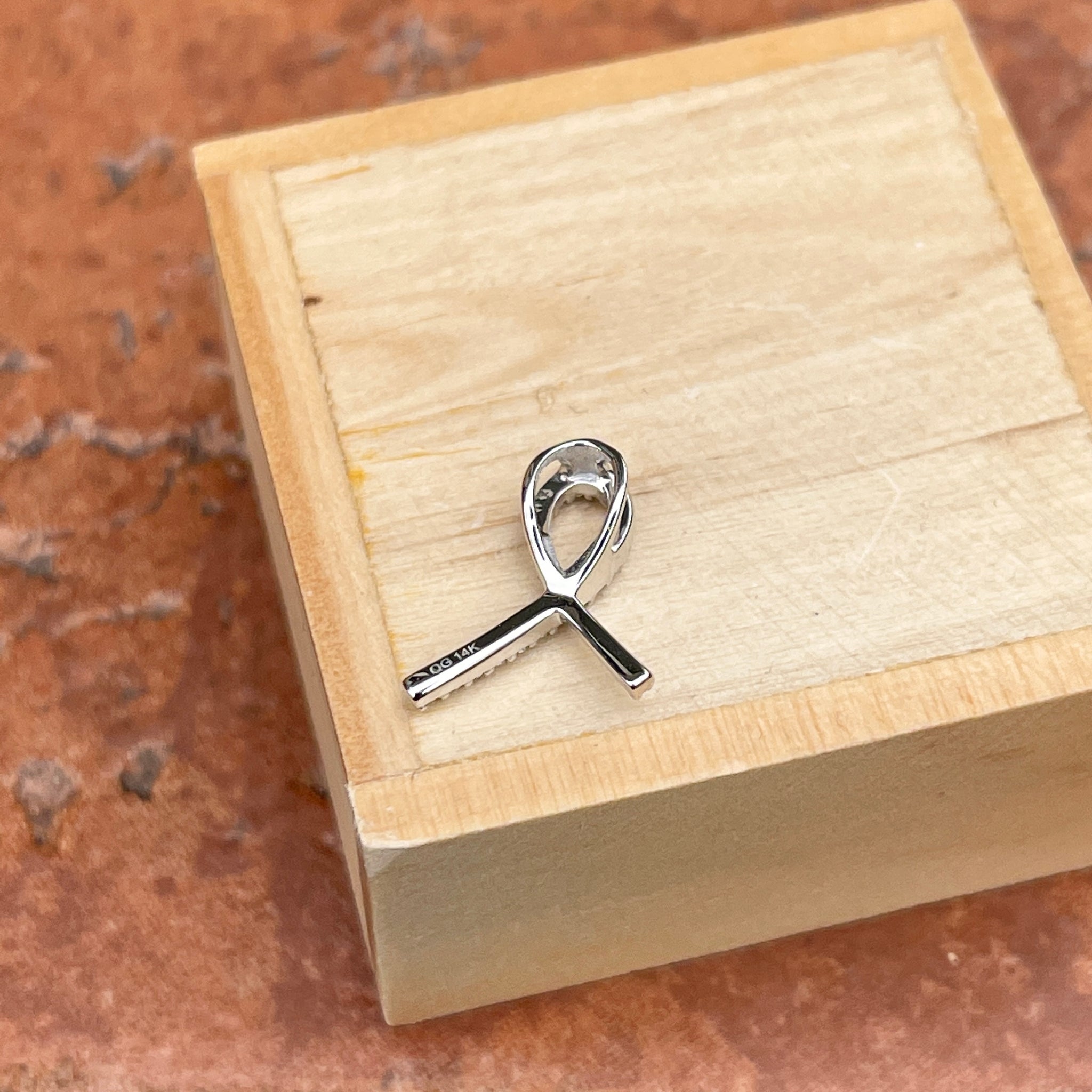 14KT white gold diamond breast cancer awareness survivor ribbon pendant slide. Ribbon pendant features eye-clean bright white diamonds. An absolutely stunning way to show your support!