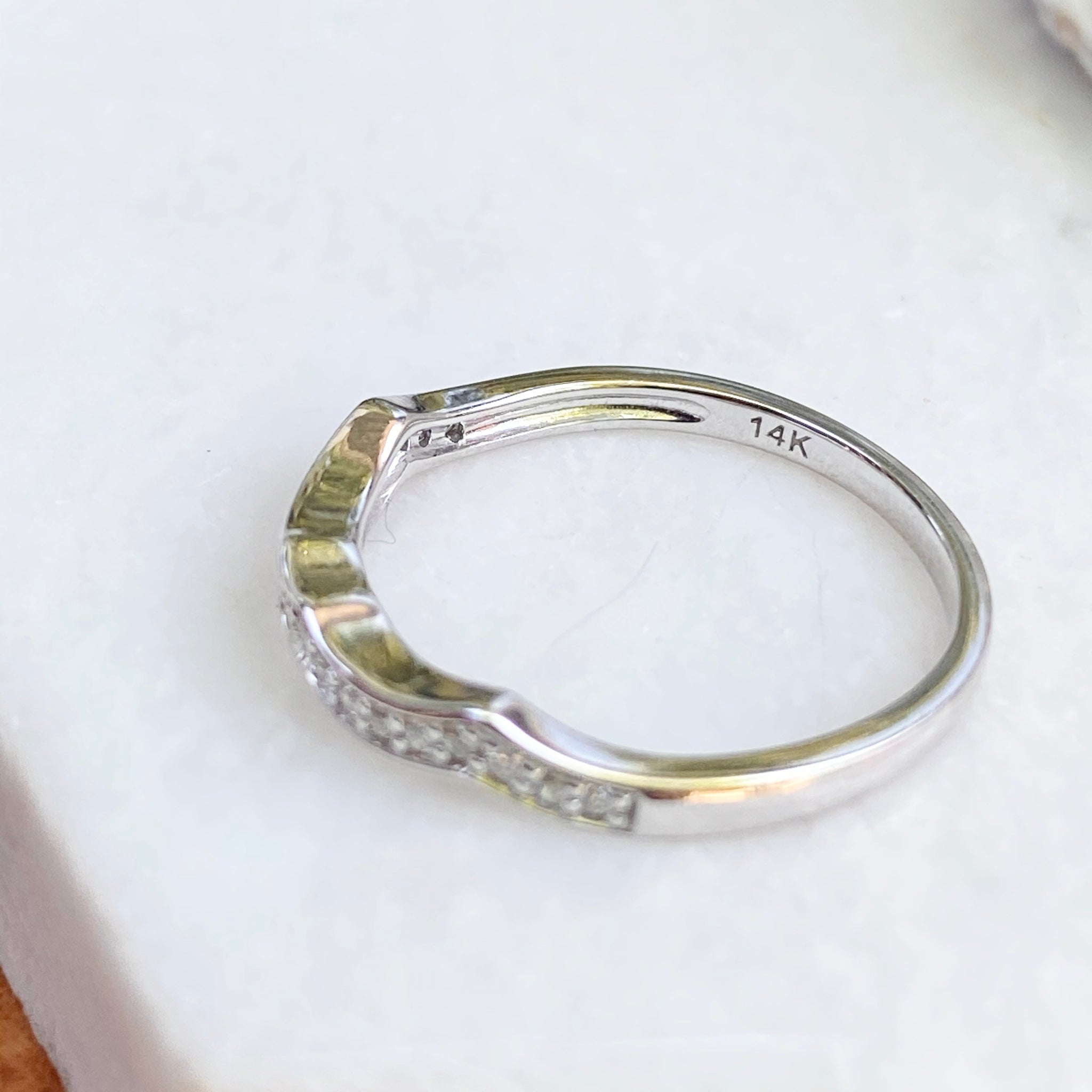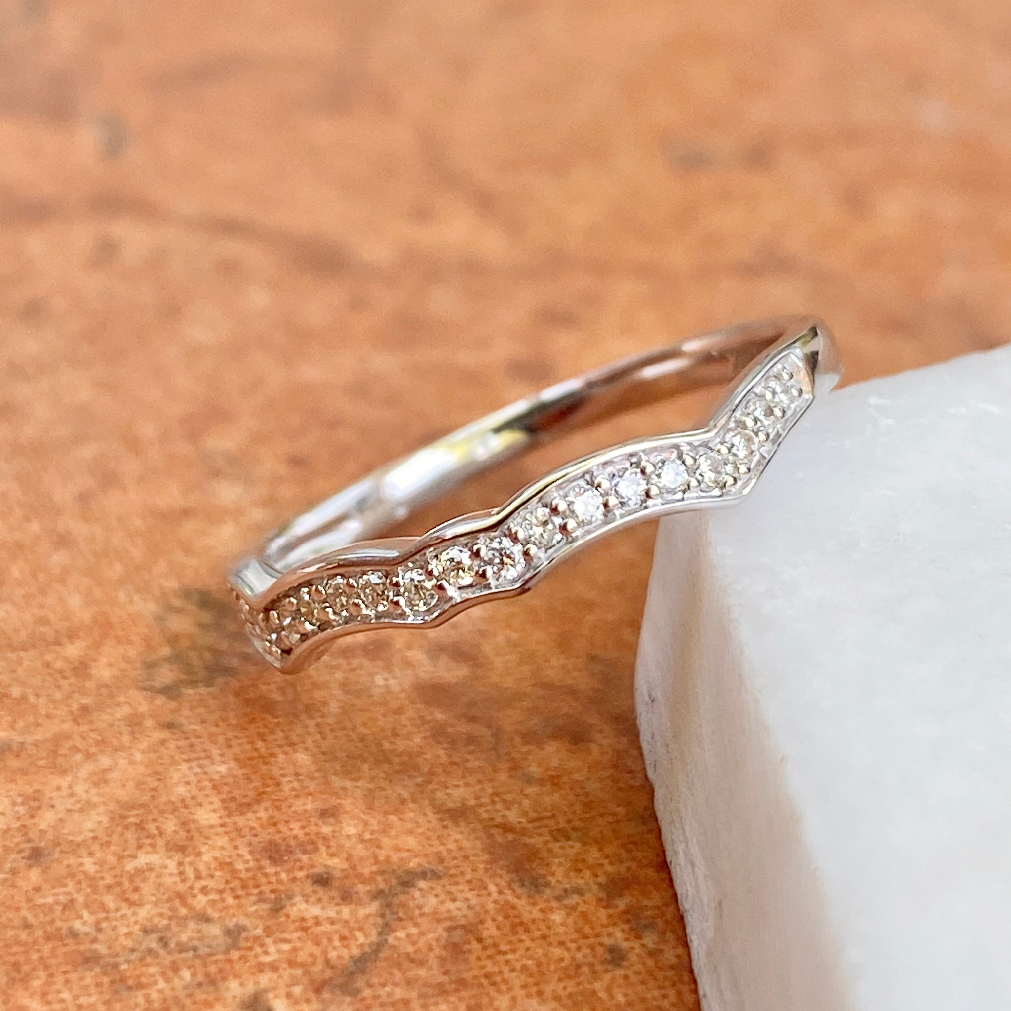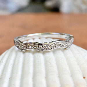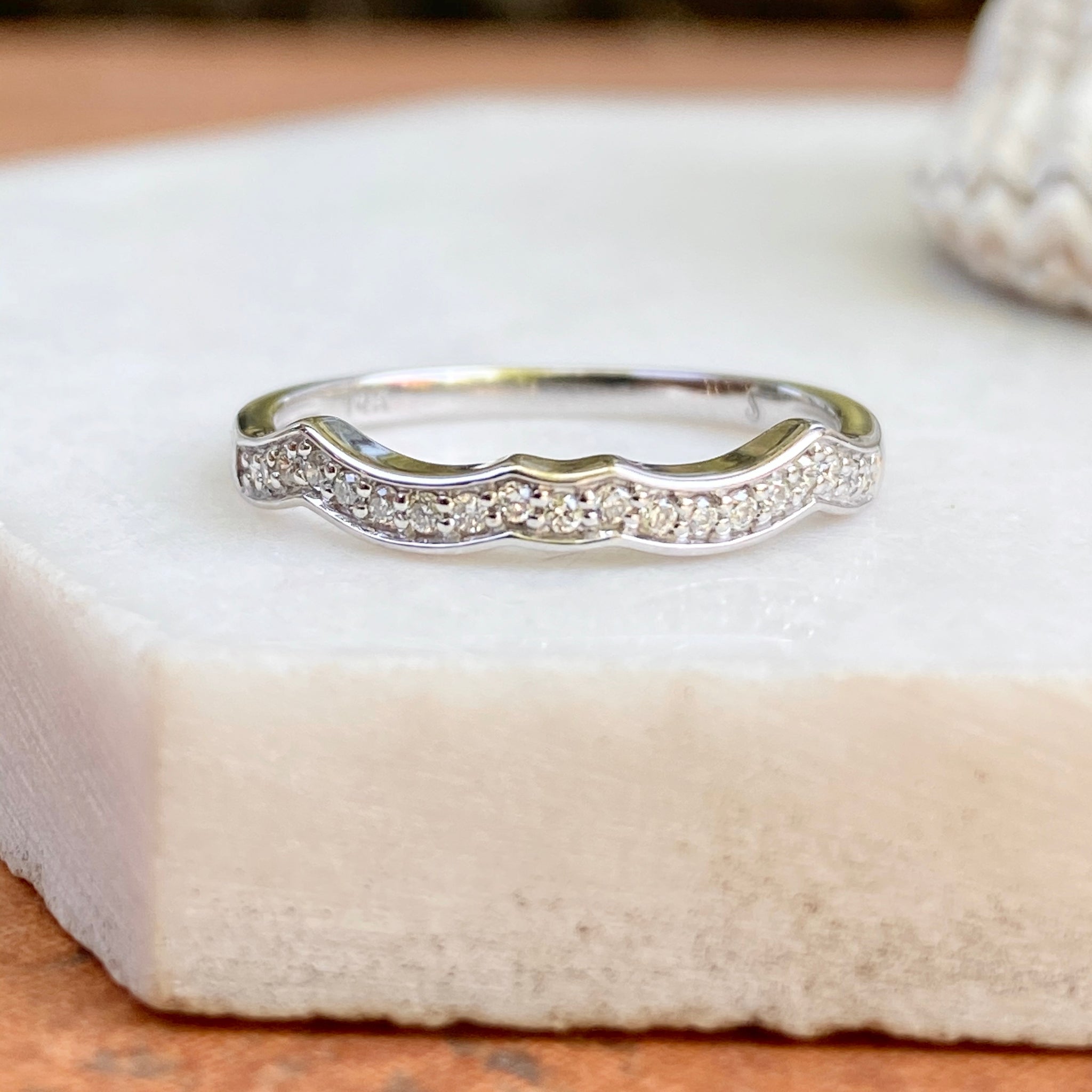 14KT White Gold 1/8 CT Diamond Wave Band Wedding Band Ring