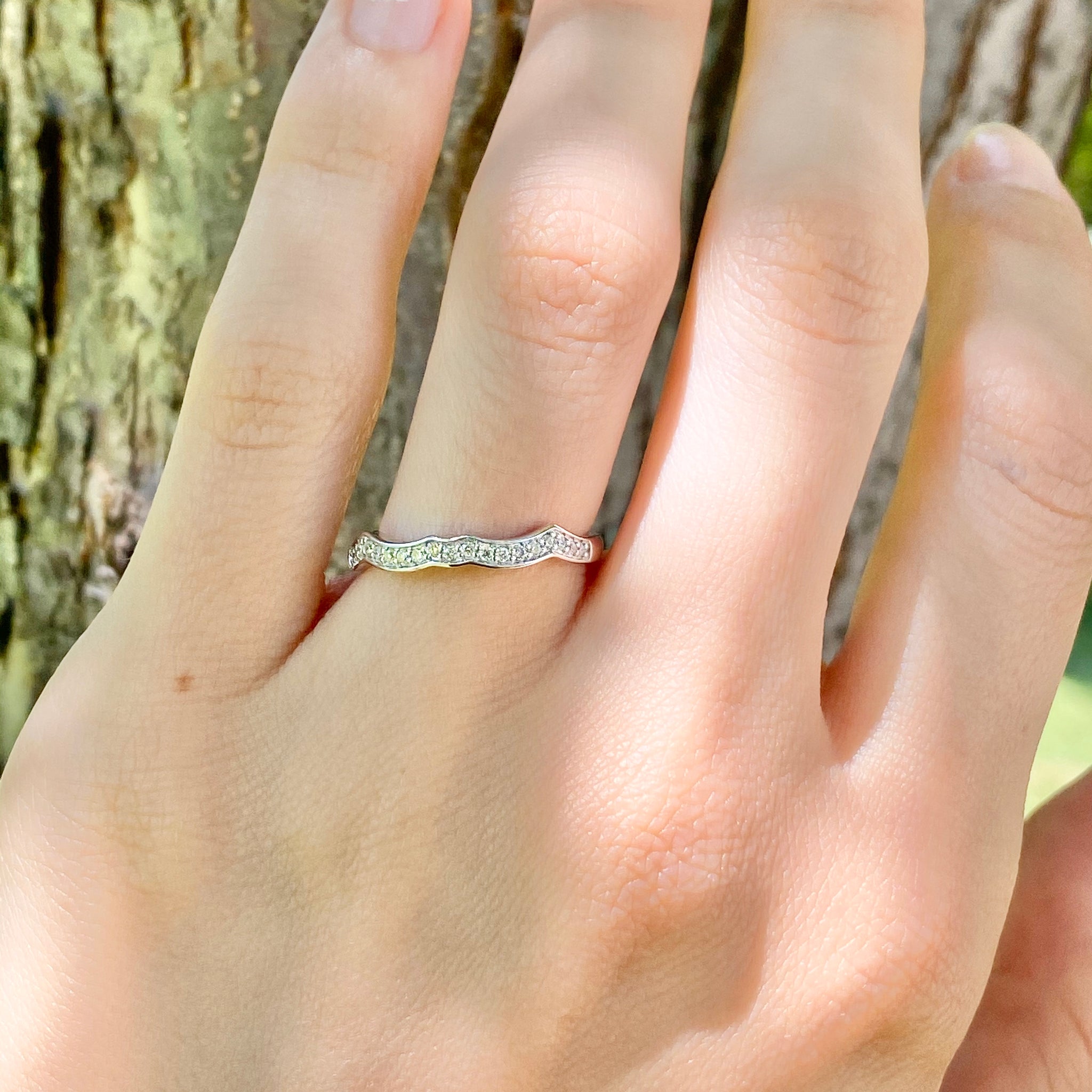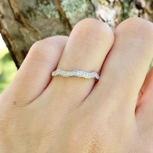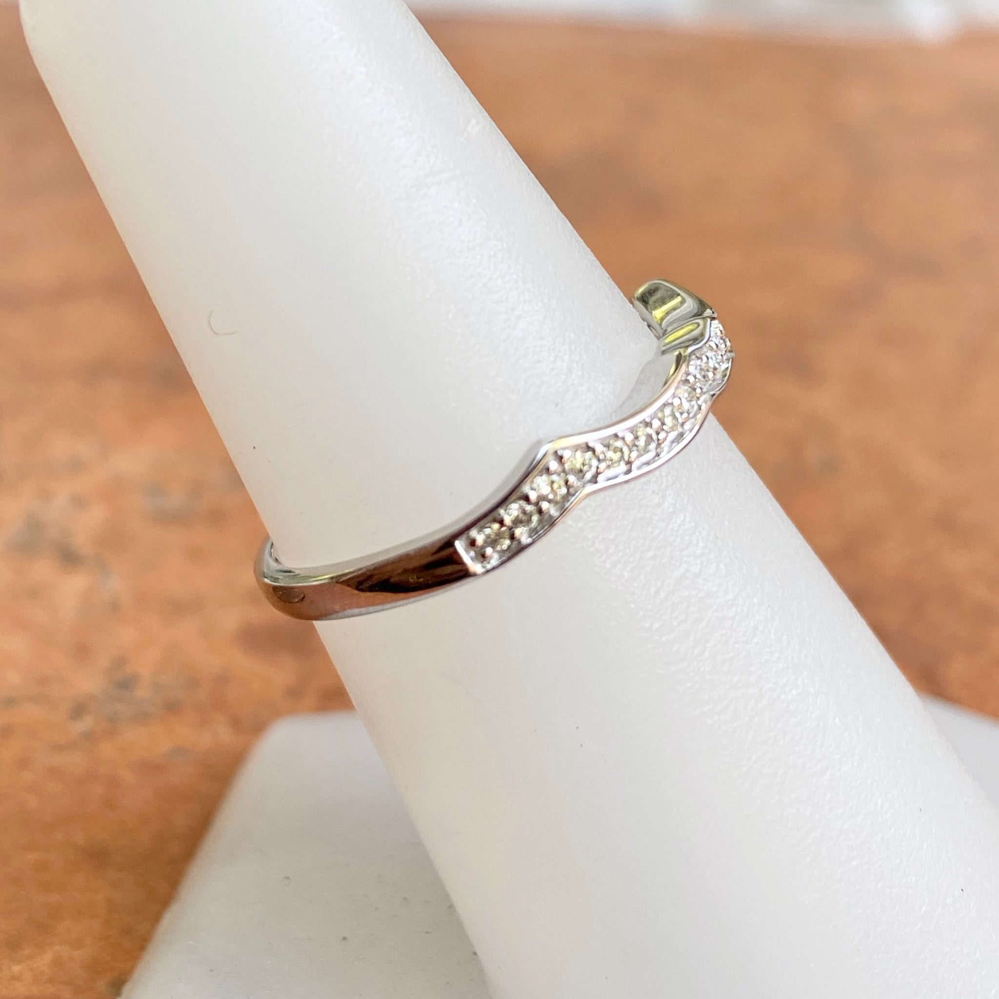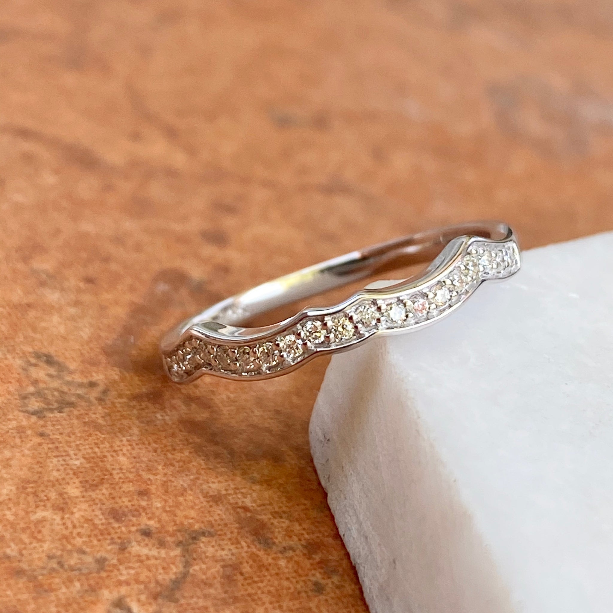 14KT White Gold 1/8 CT Diamond Wave Band Wedding Band Ring