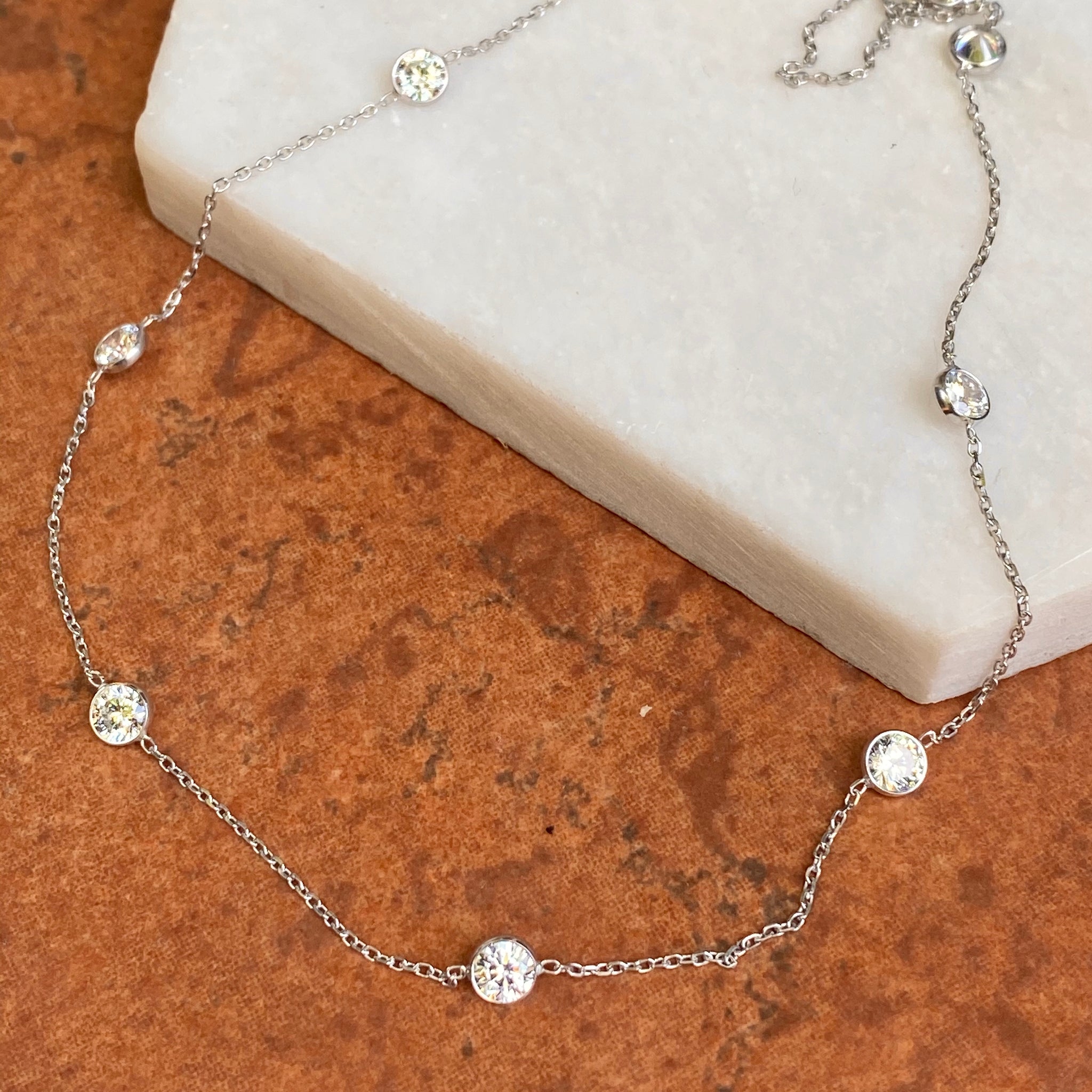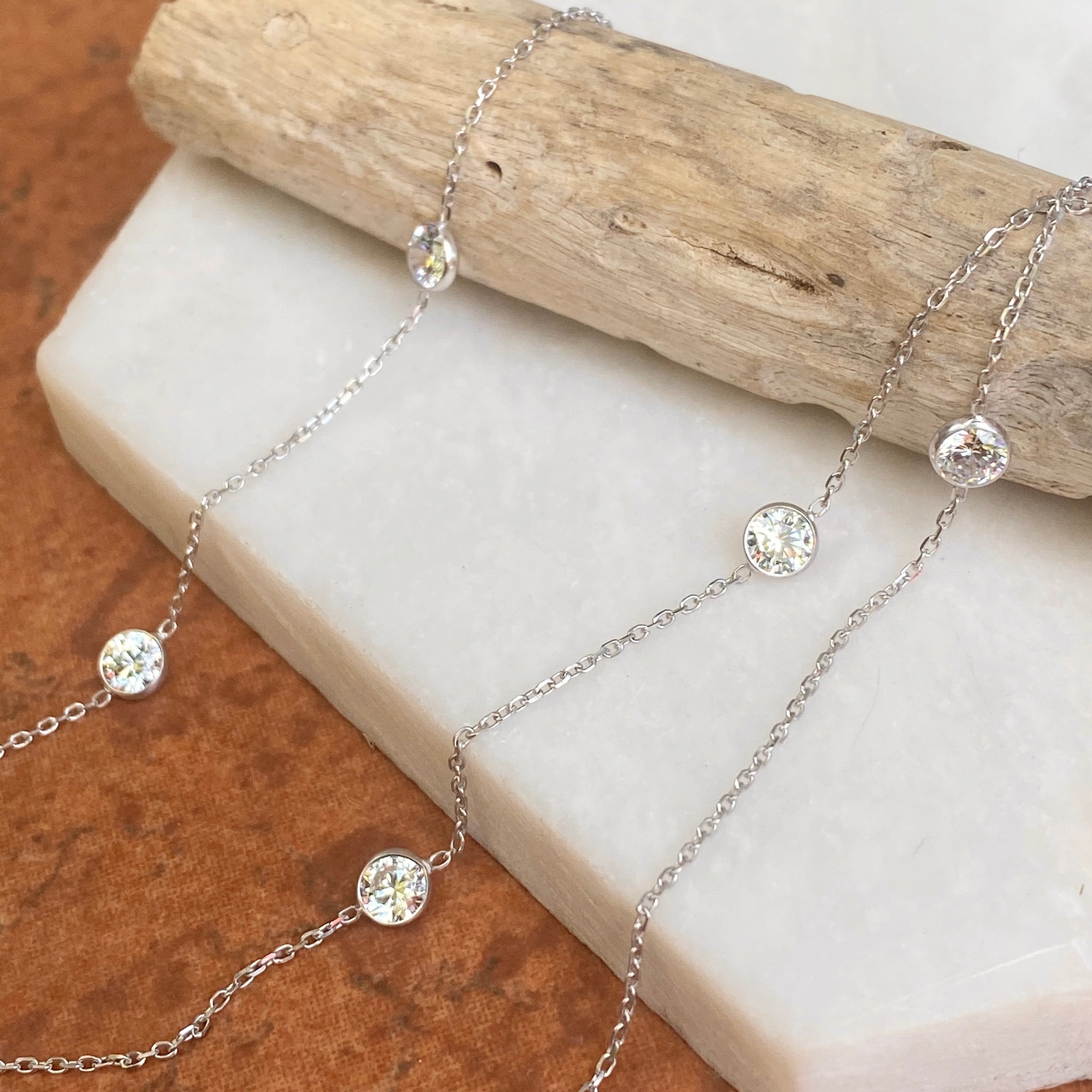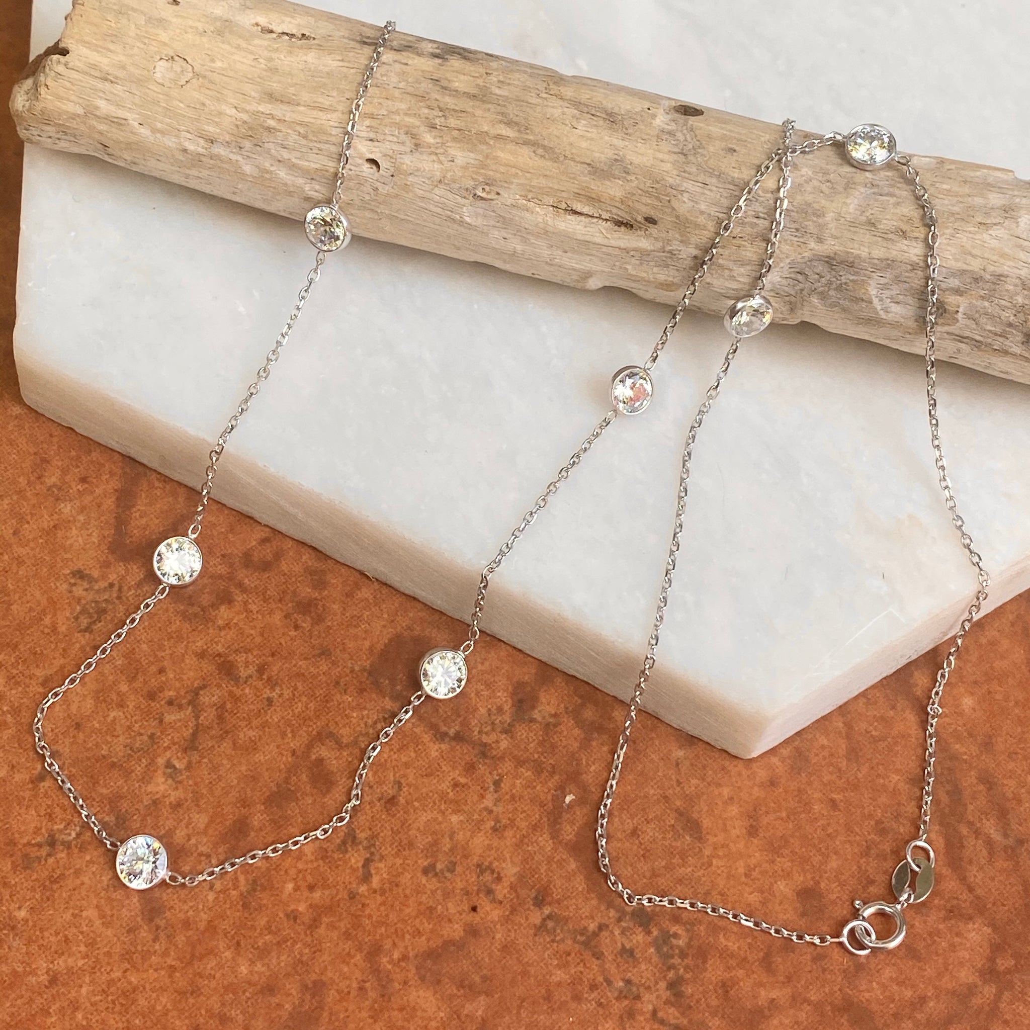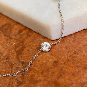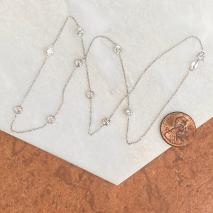 14KT White Gold Bezel-Set Station CZ Stones Cable Chain Necklace 18"
