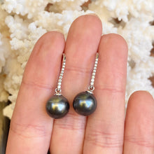 14KT White Gold Black Tahitian Pearl + Pave Diamond Dangle Earrings