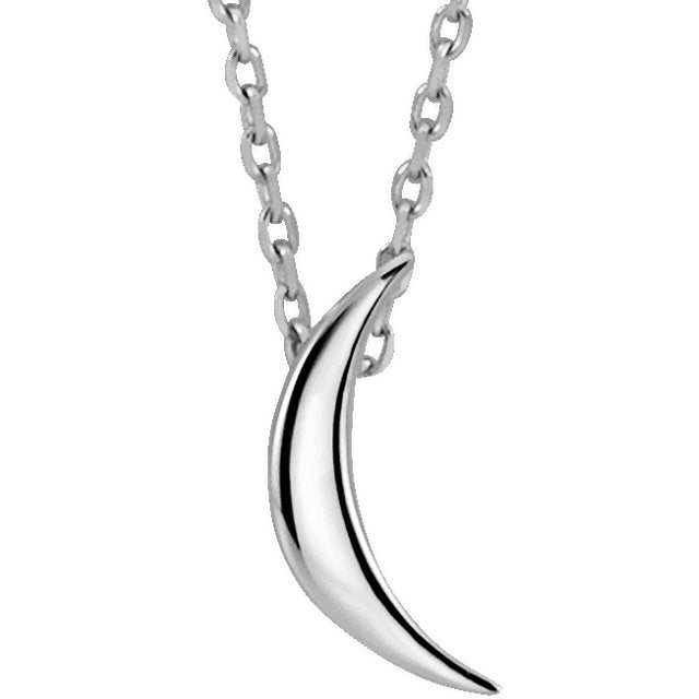 14KT white gold cable chain necklace with polished crescent moon pendant.
