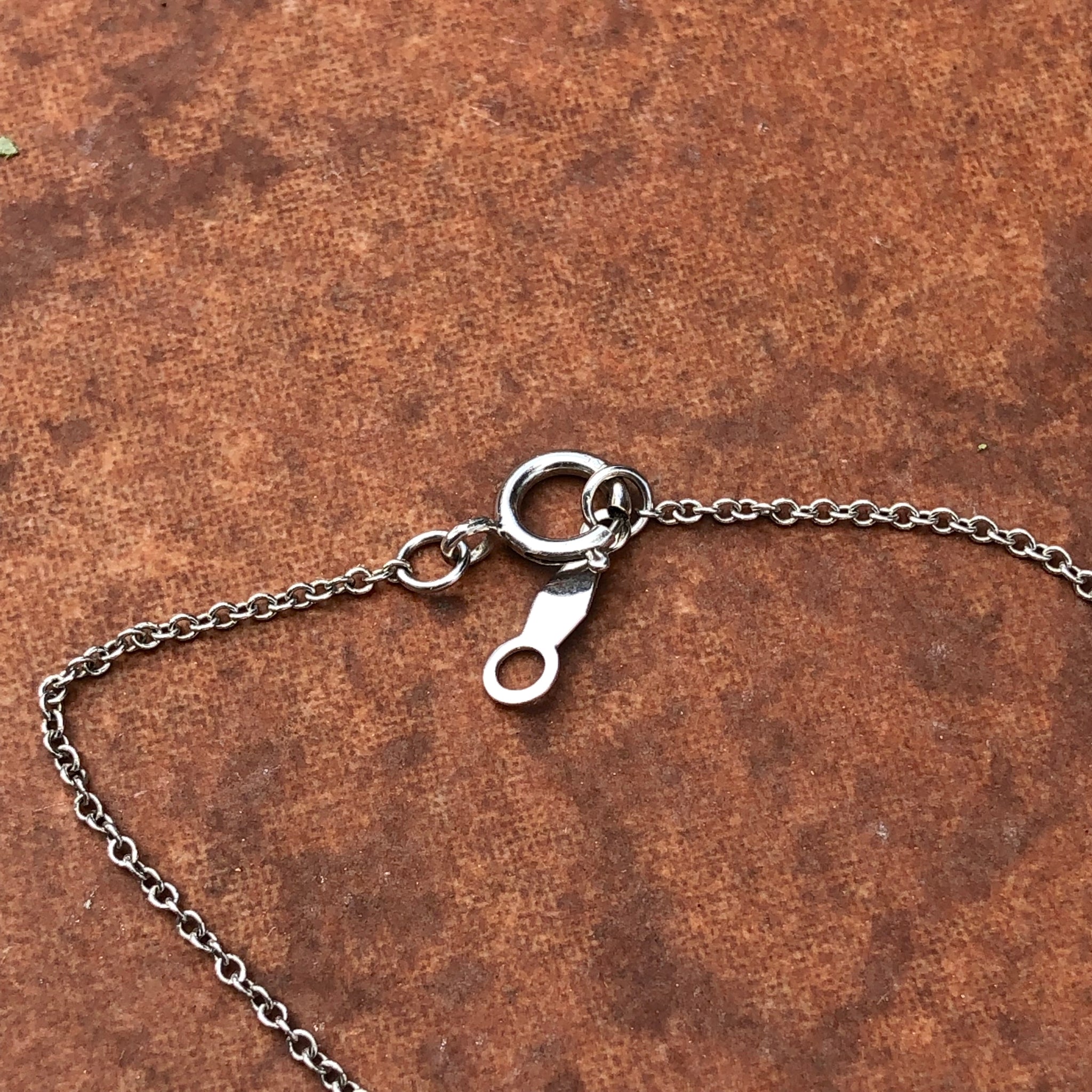 14KT polished white gold cable chain necklace with station, diamond-filled triangle pendant. Beautiful piece to layer with other necklaces!
