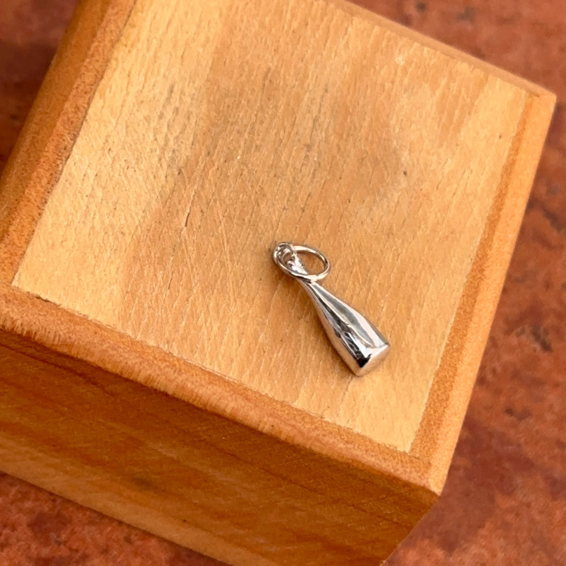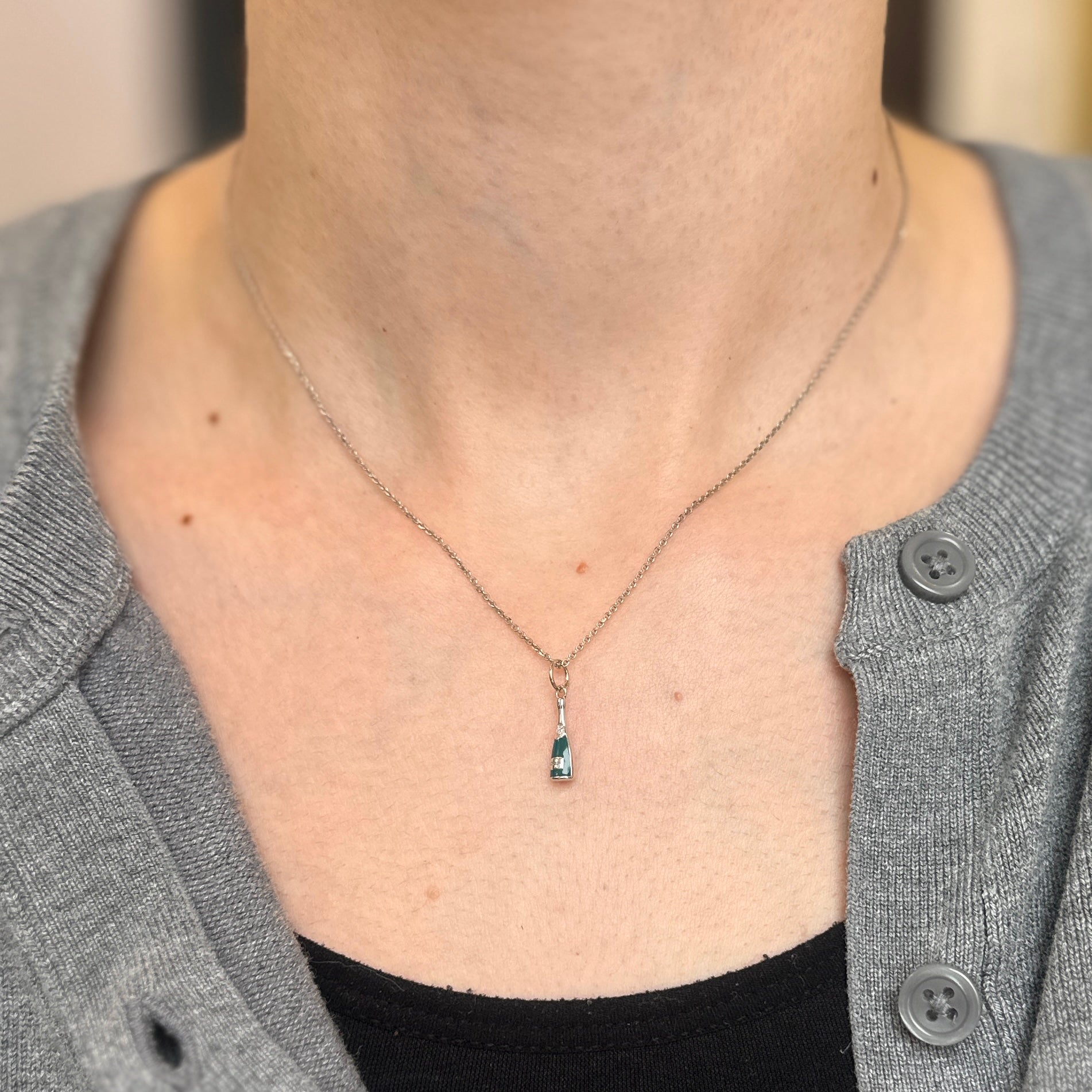 14KT white gold champagne bottle pendant charm with turquoise enamel and small diamond