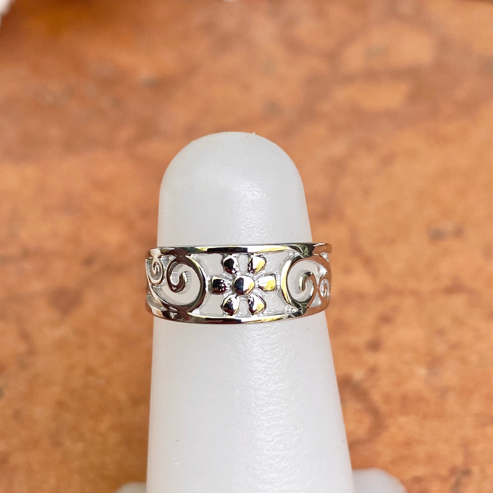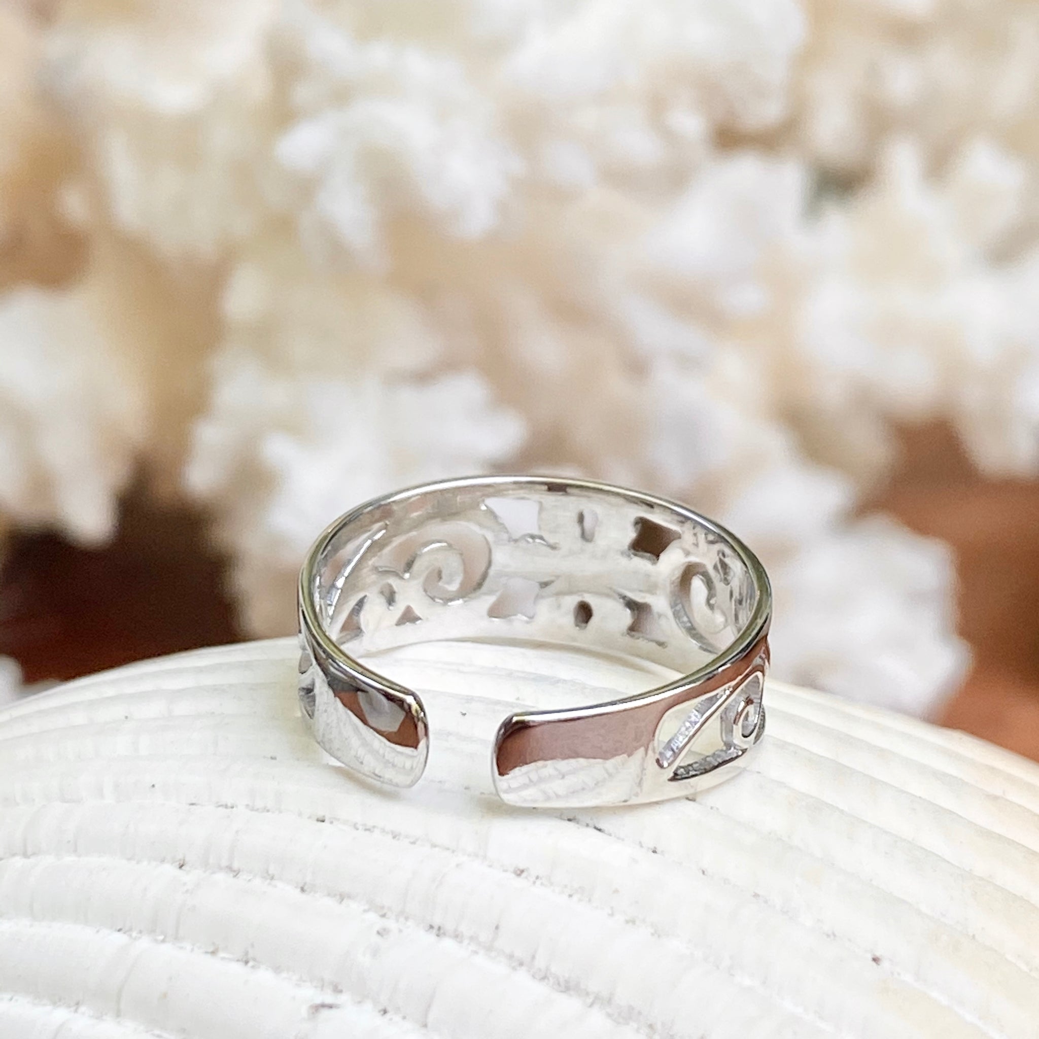 14KT white gold toe ring with unique floral filigree design. Perfect for that upcoming beach vacation. Wear in the water without fear of tarnishing!