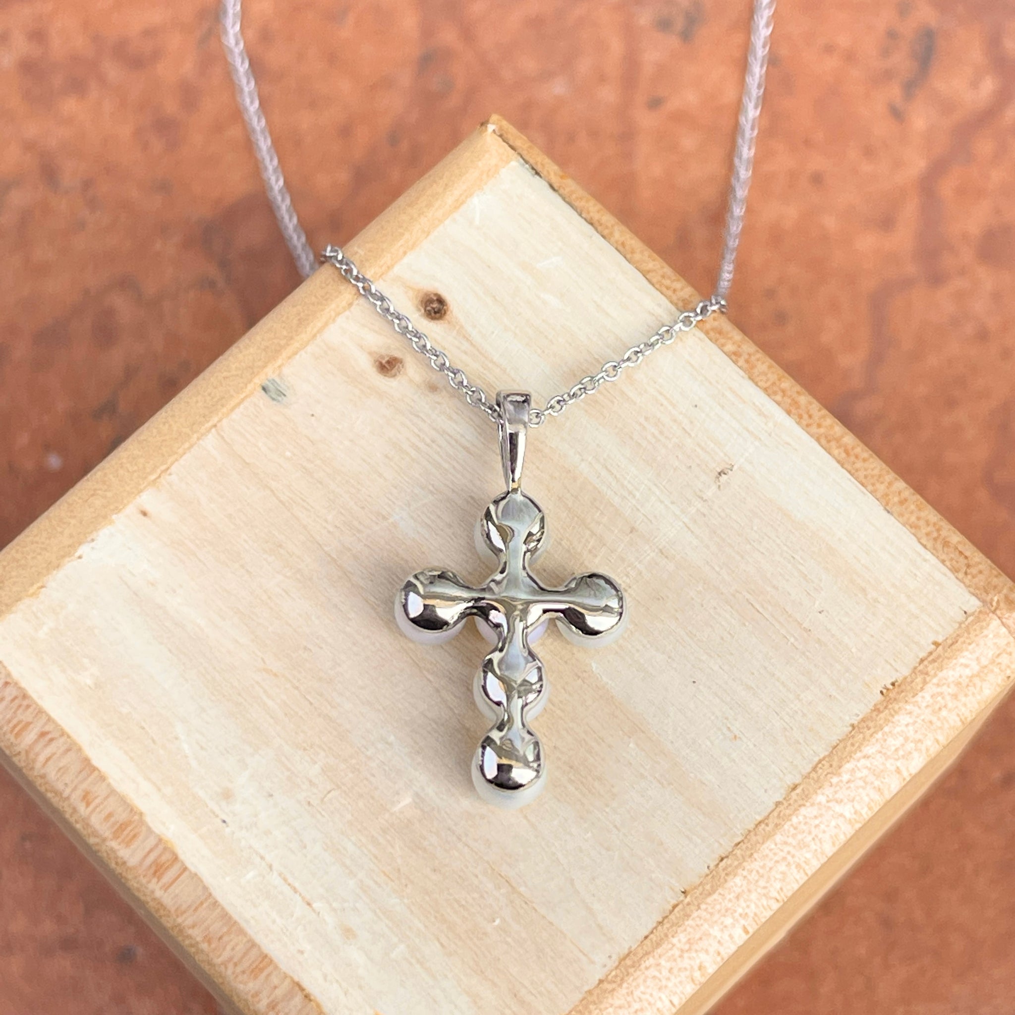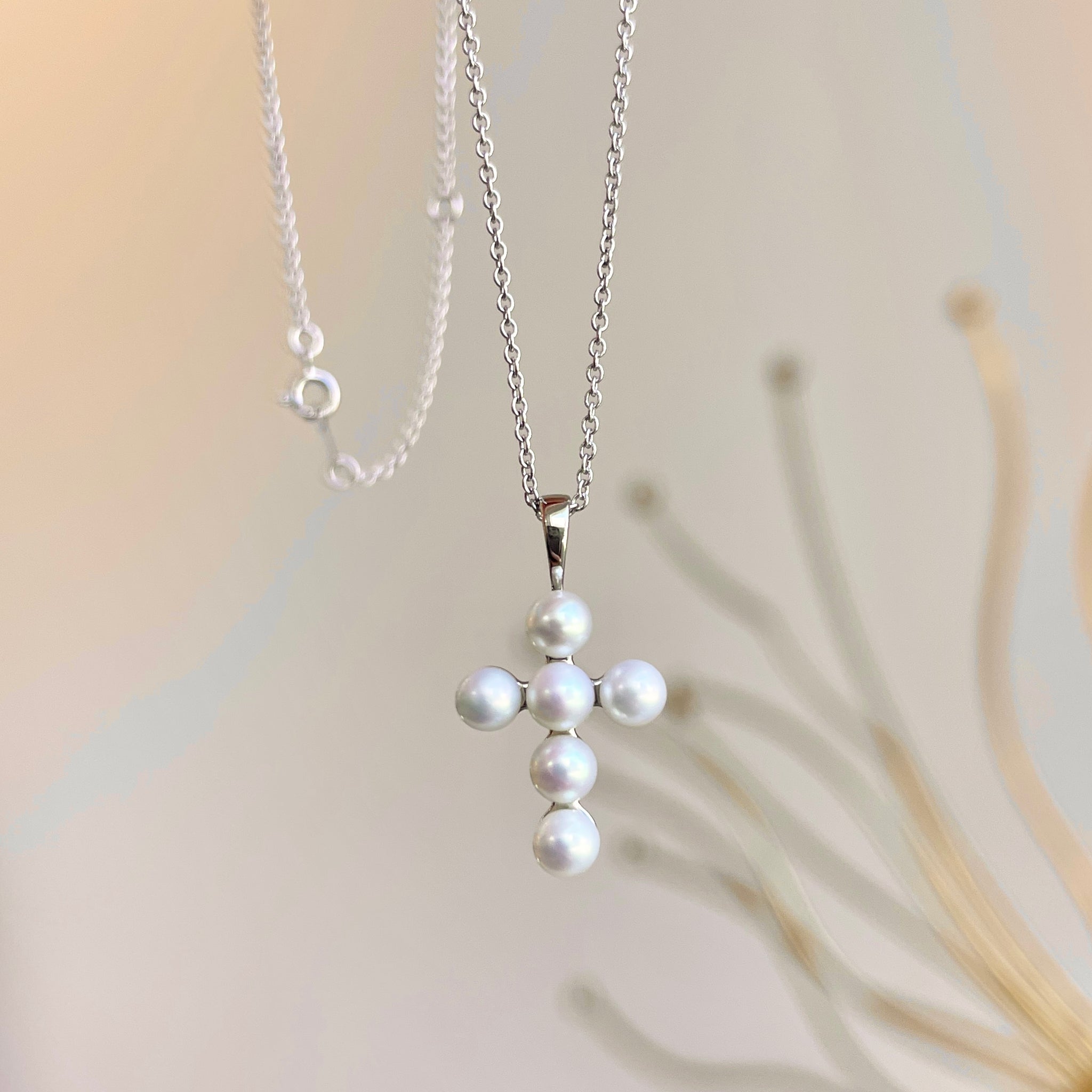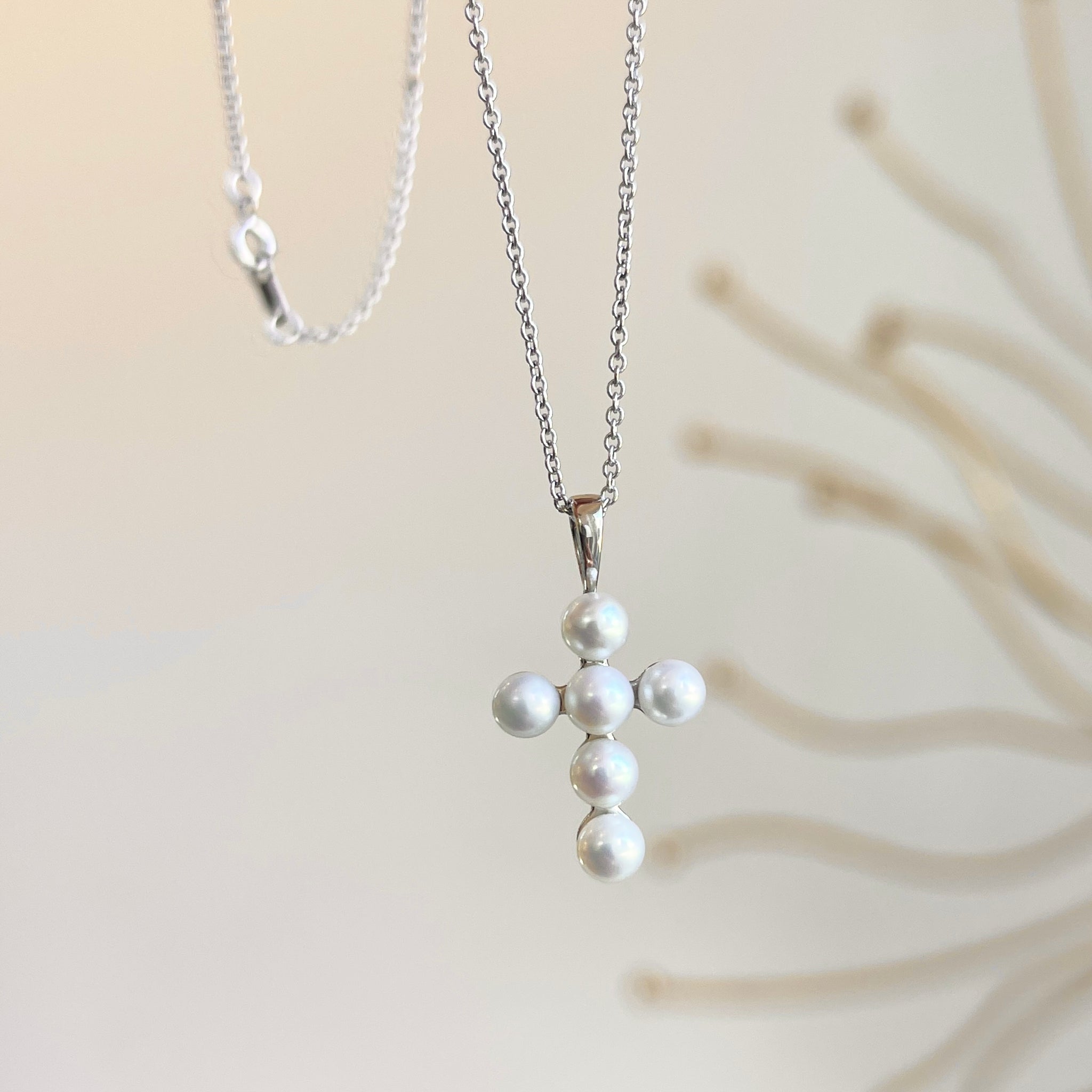 14KT White Gold Freshwater White Pearl Cross Necklace