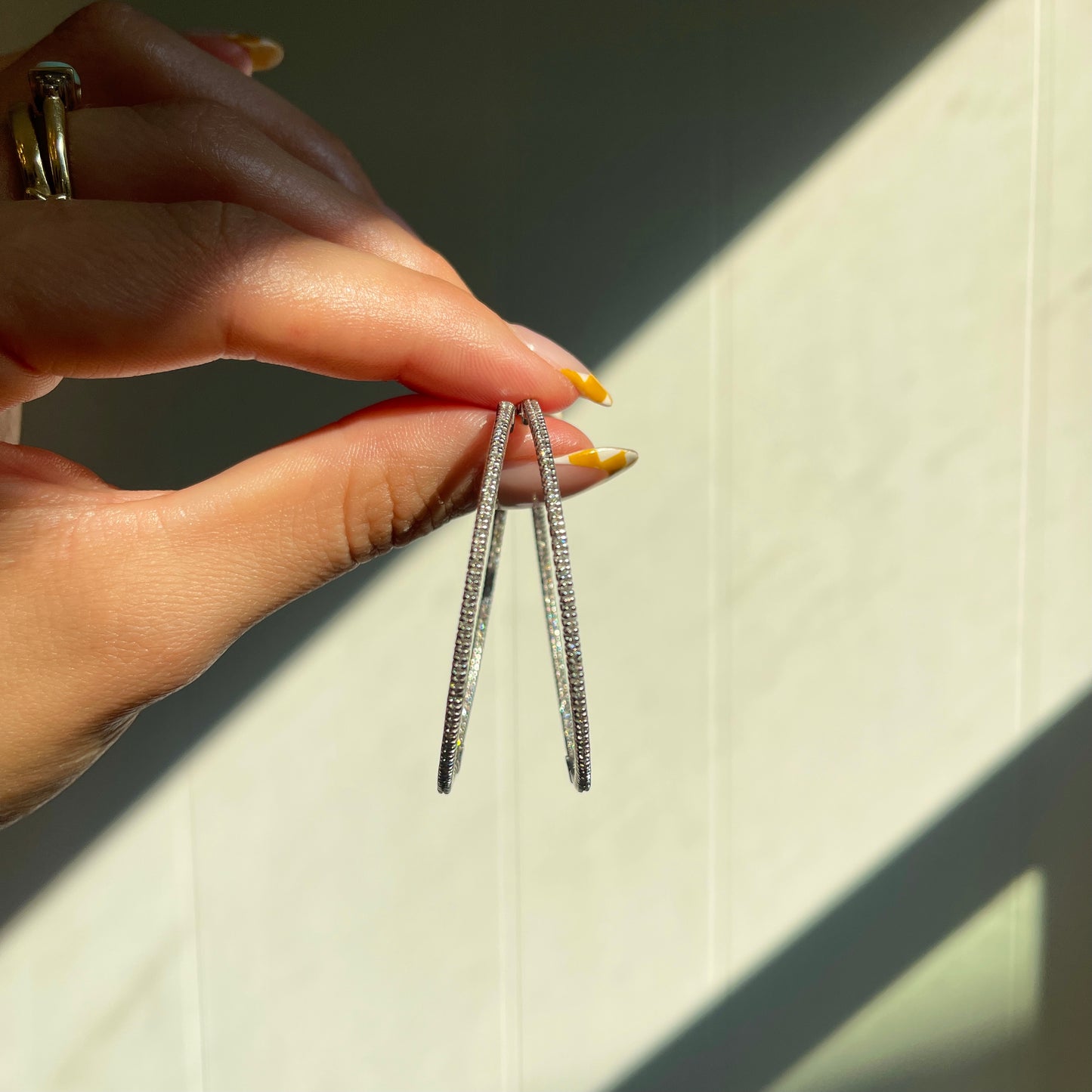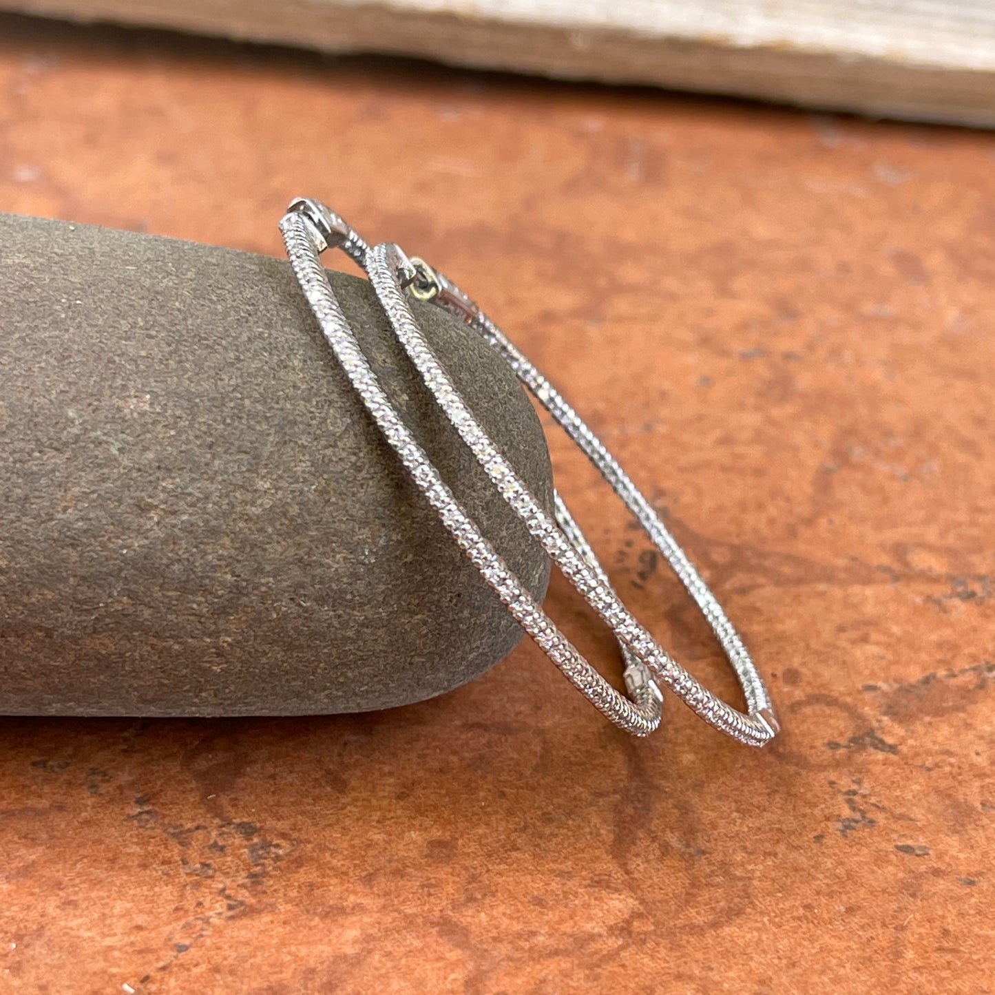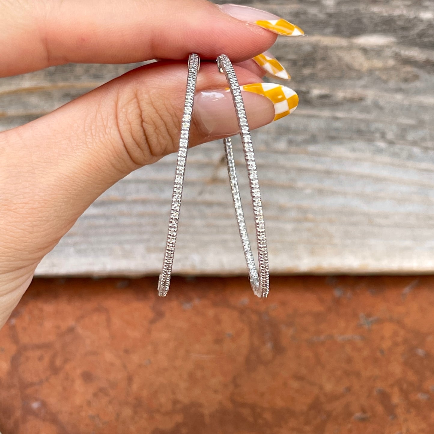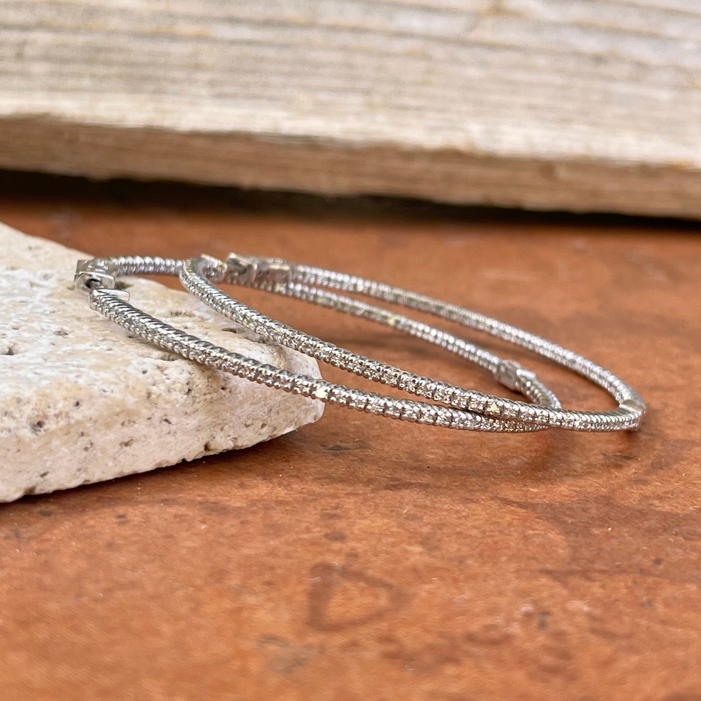 14KT White Gold Inside/ Outside 1.25 CT Prong Set Diamond Hoop Earrings 43mm