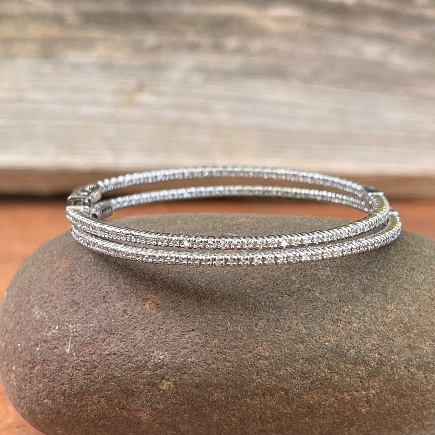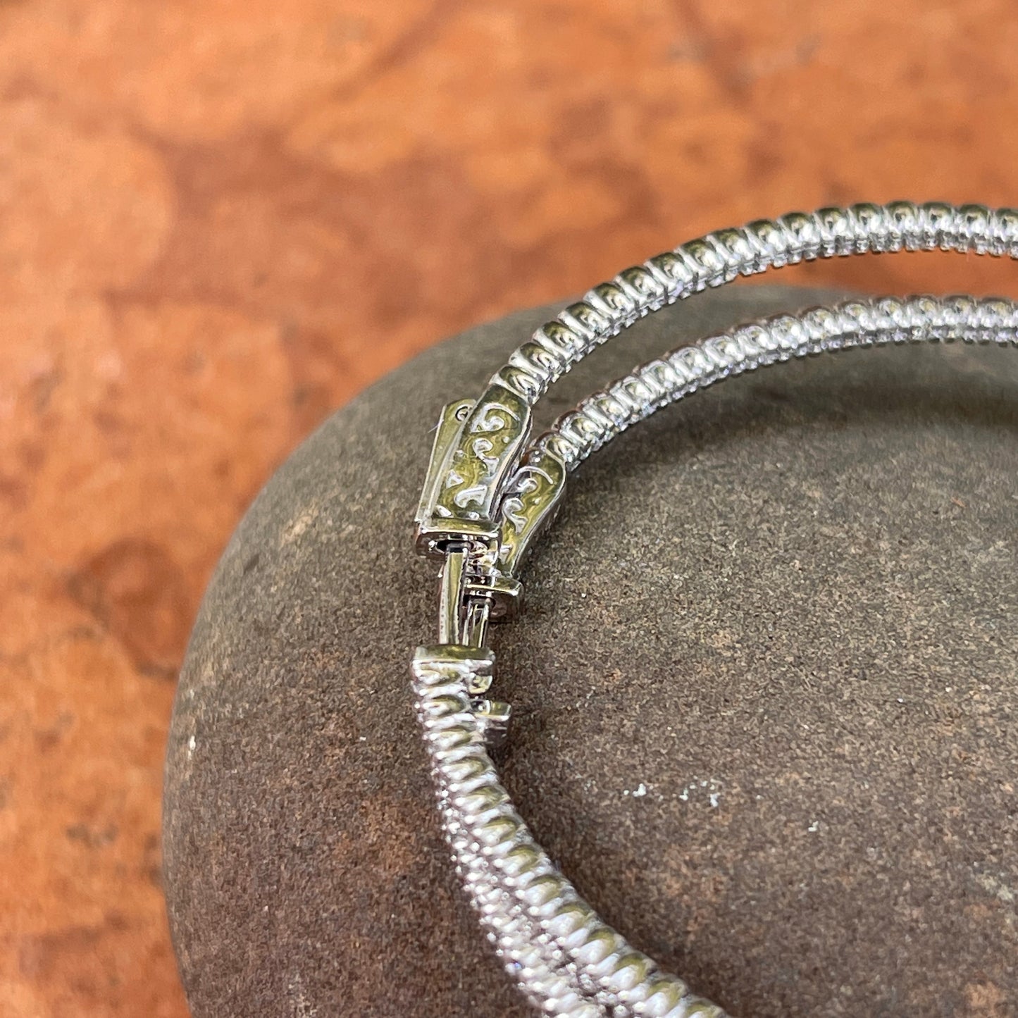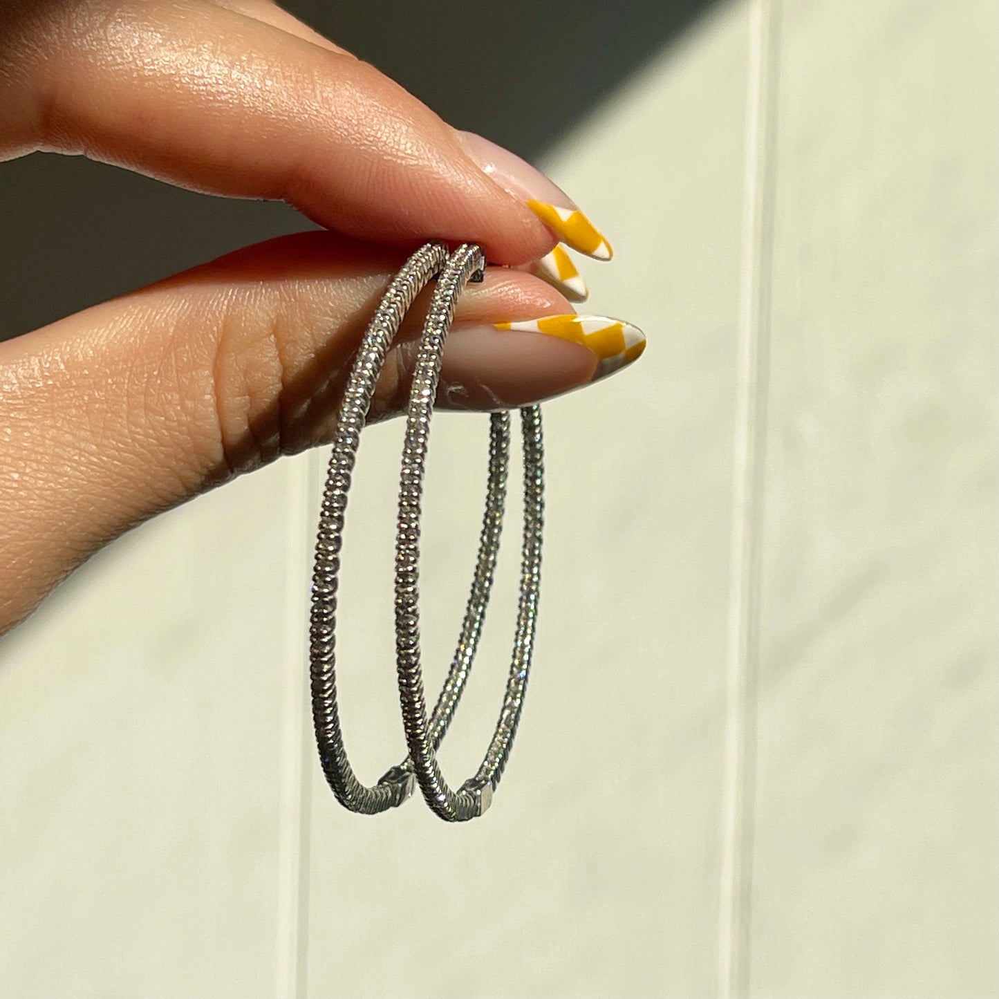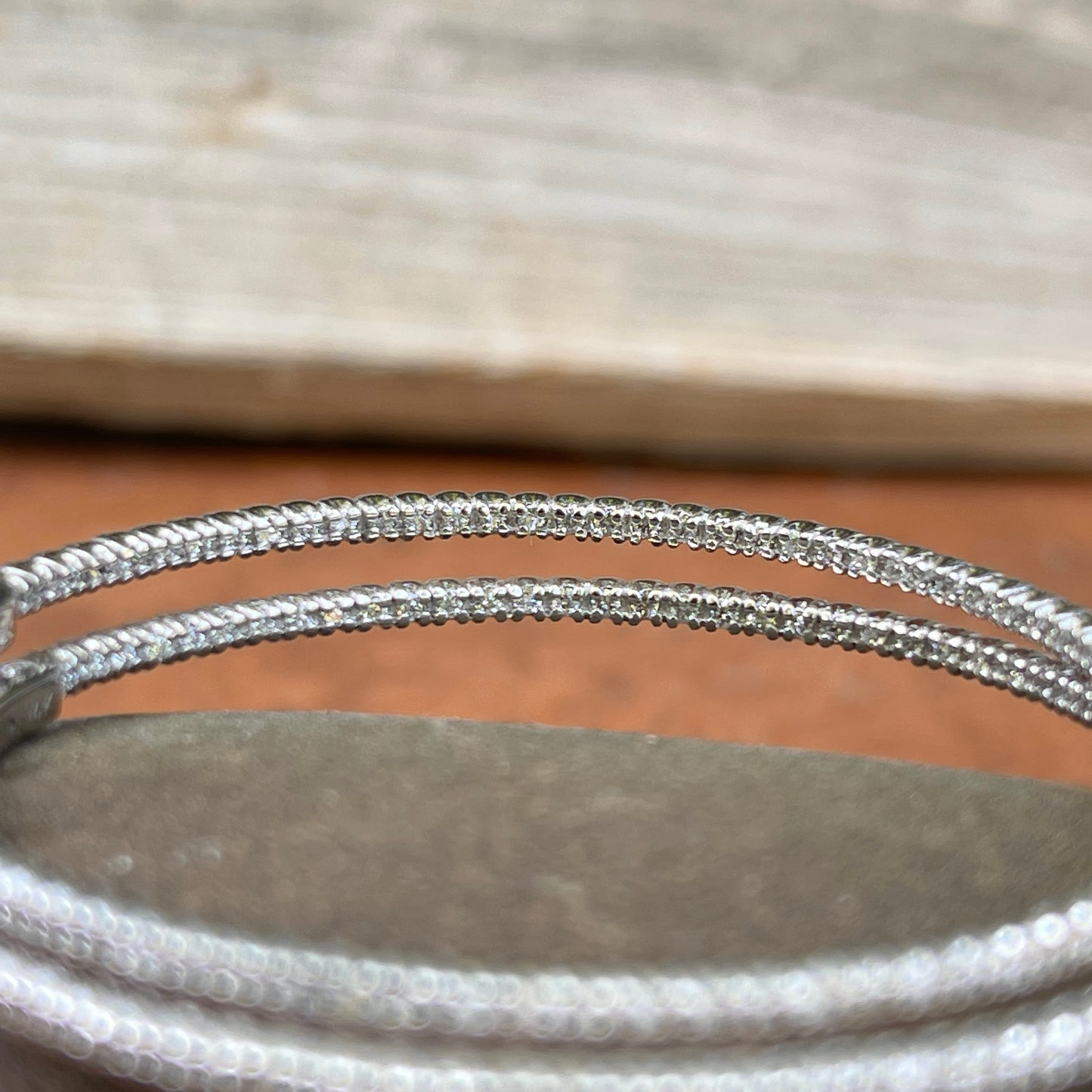 14KT White Gold Inside/ Outside 1.25 CT Prong Set Diamond Hoop Earrings 43mm