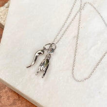14KT White Gold Mano Cornuto + Italian Horn Pendants Chain Necklace