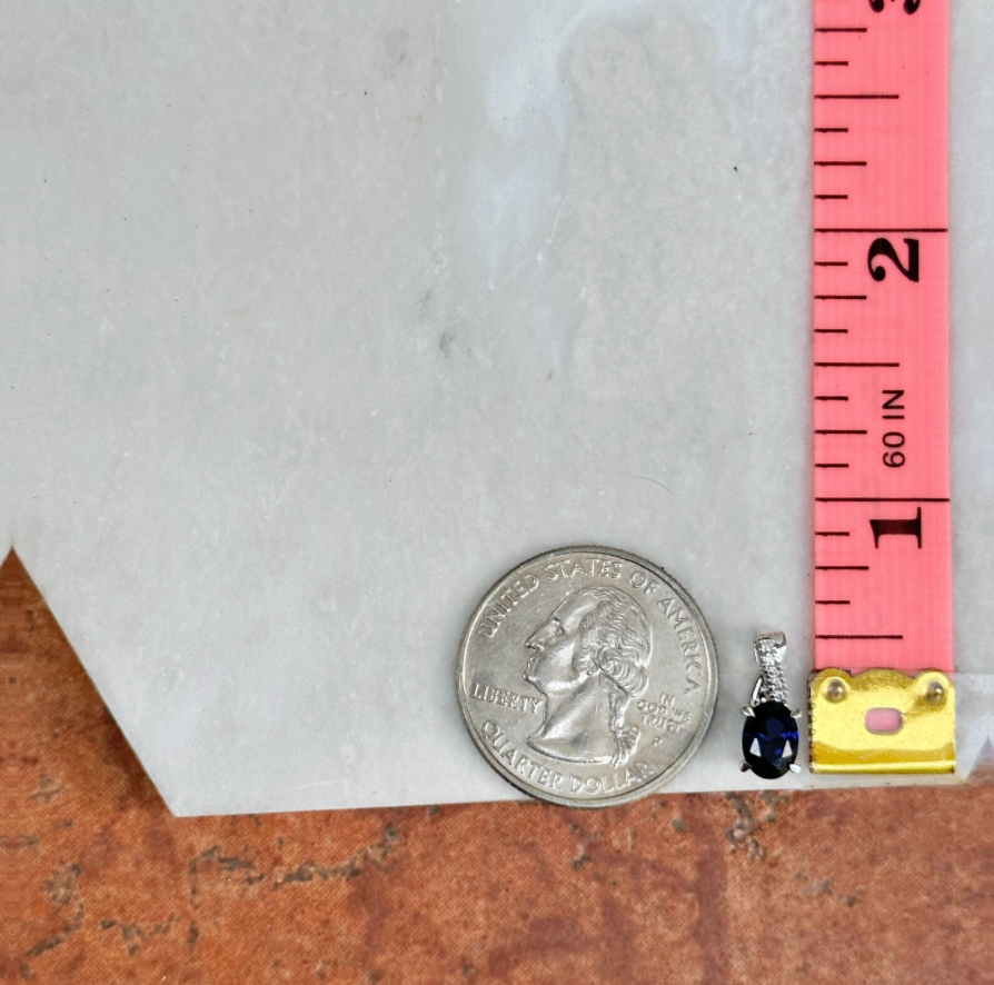 14KT White Gold Oval Lab Blue Sapphire + Diamond Pendant Slide