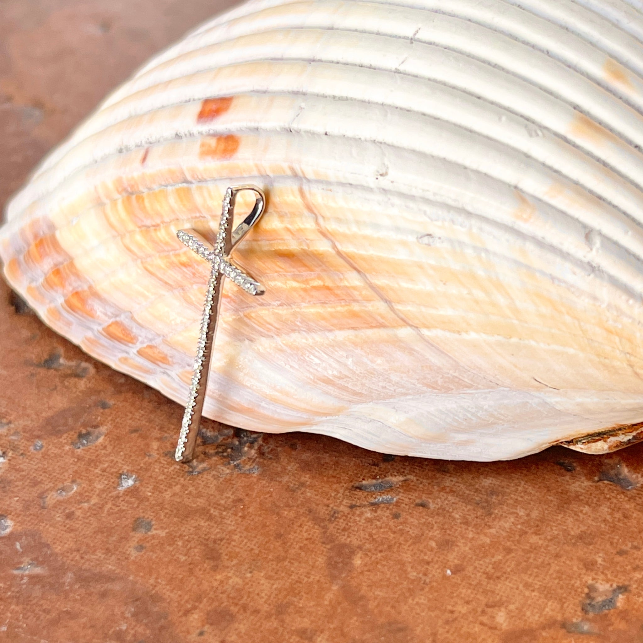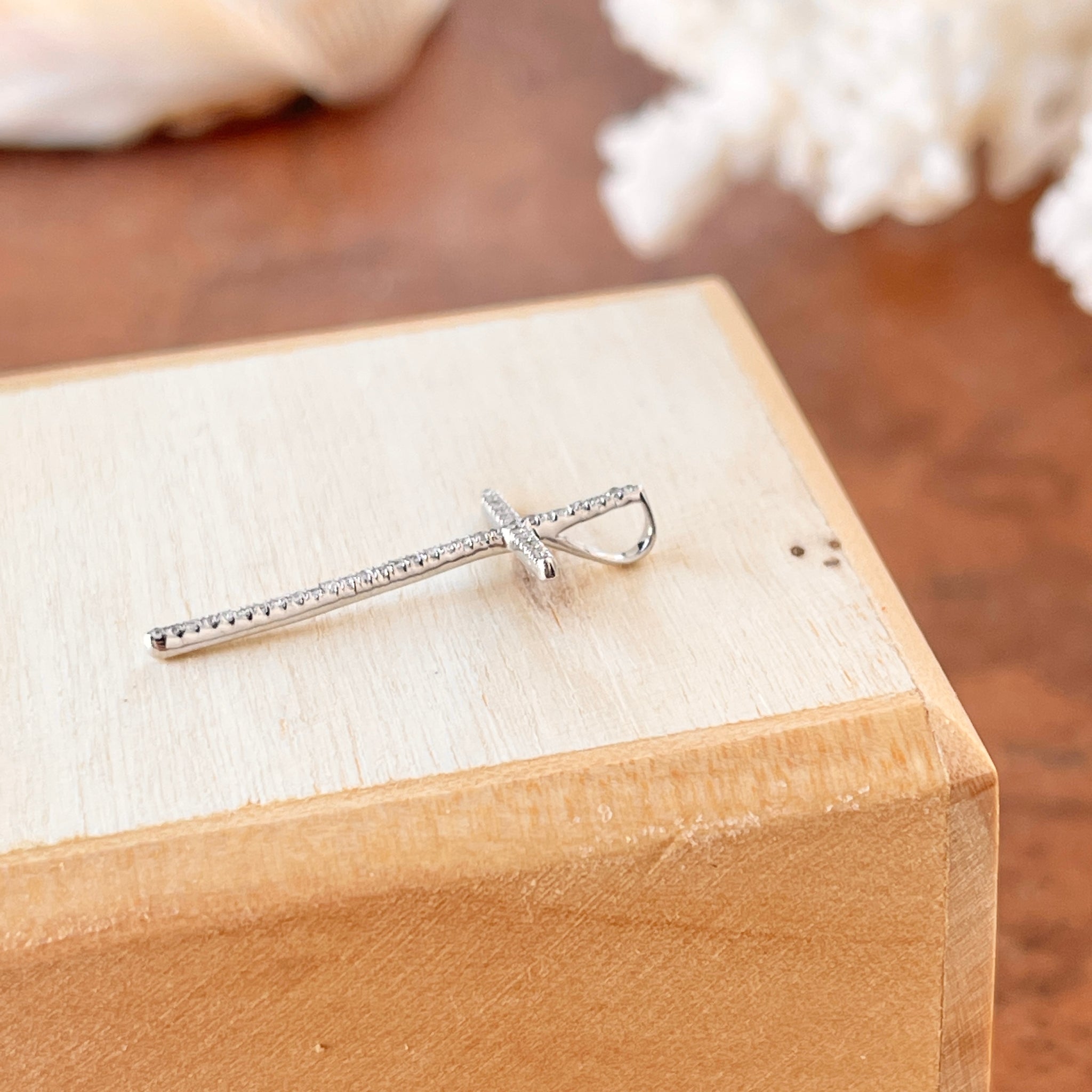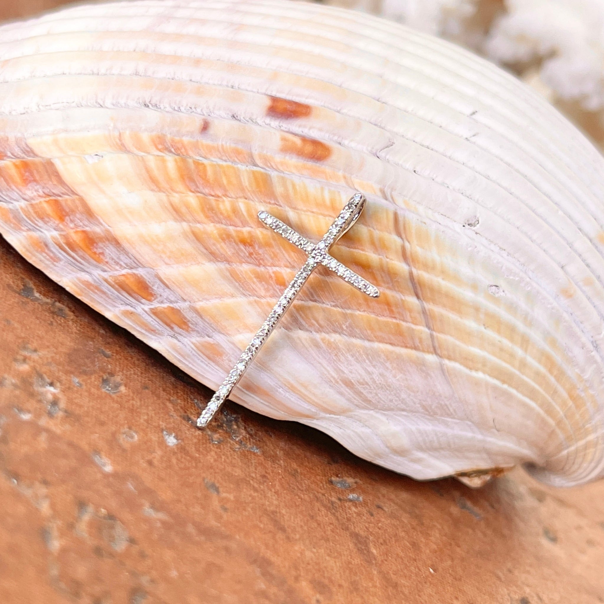 14KT white gold pave diamond cross pendant charm. Great size diamond cross pendant with sleek, modern style.