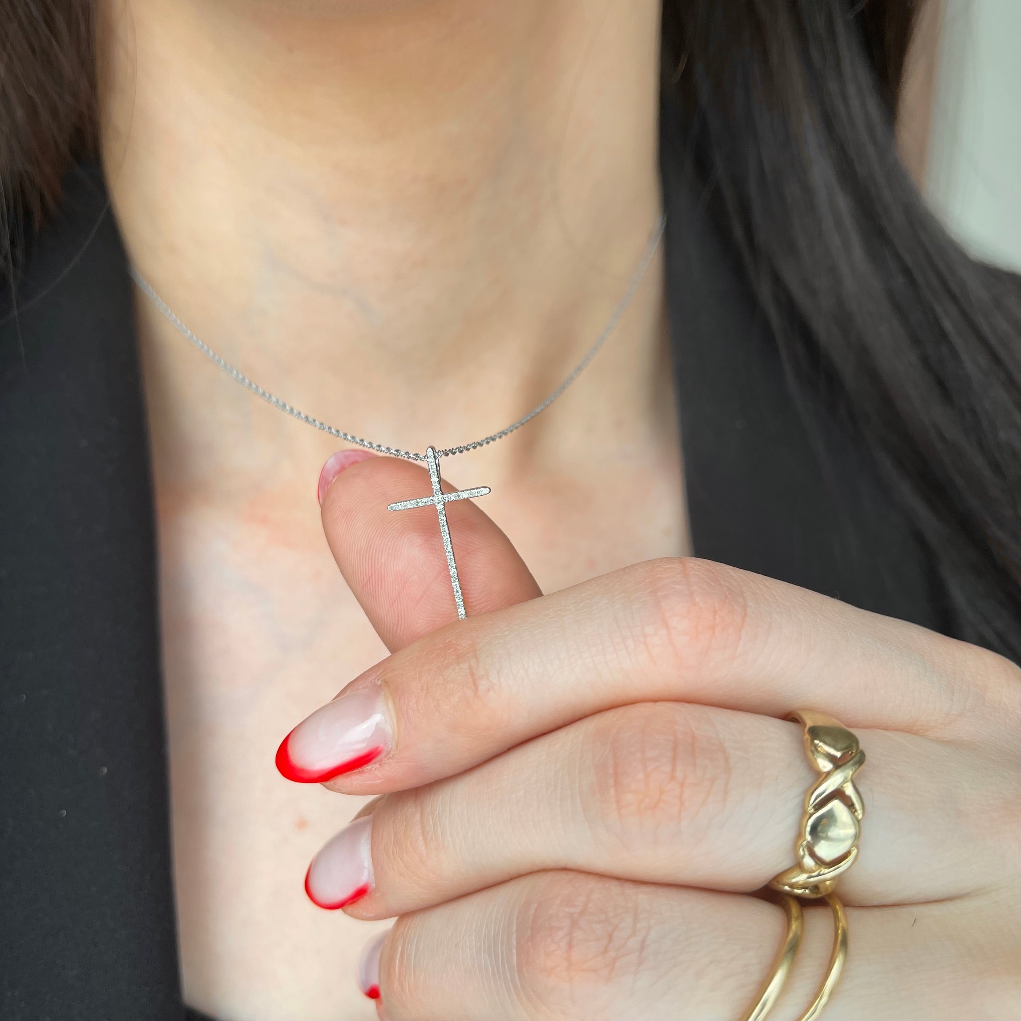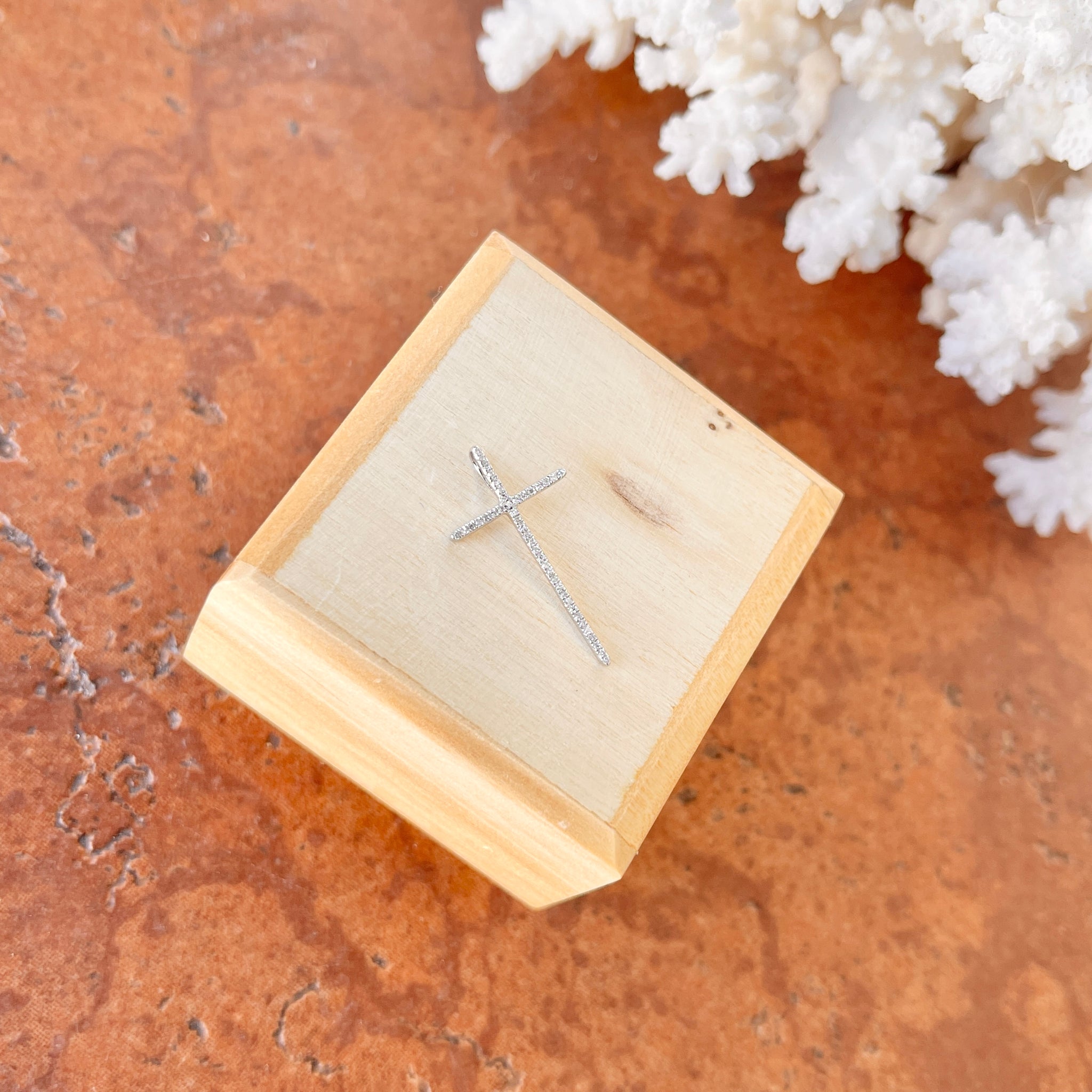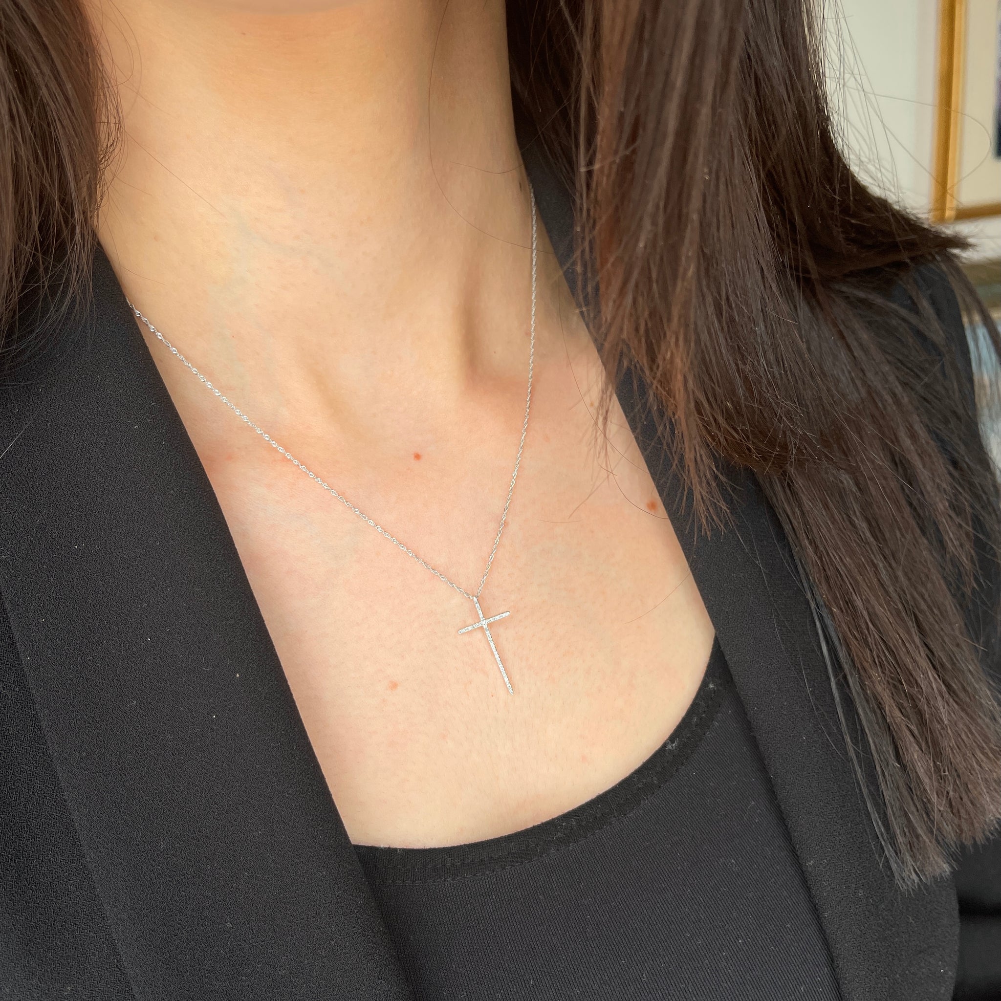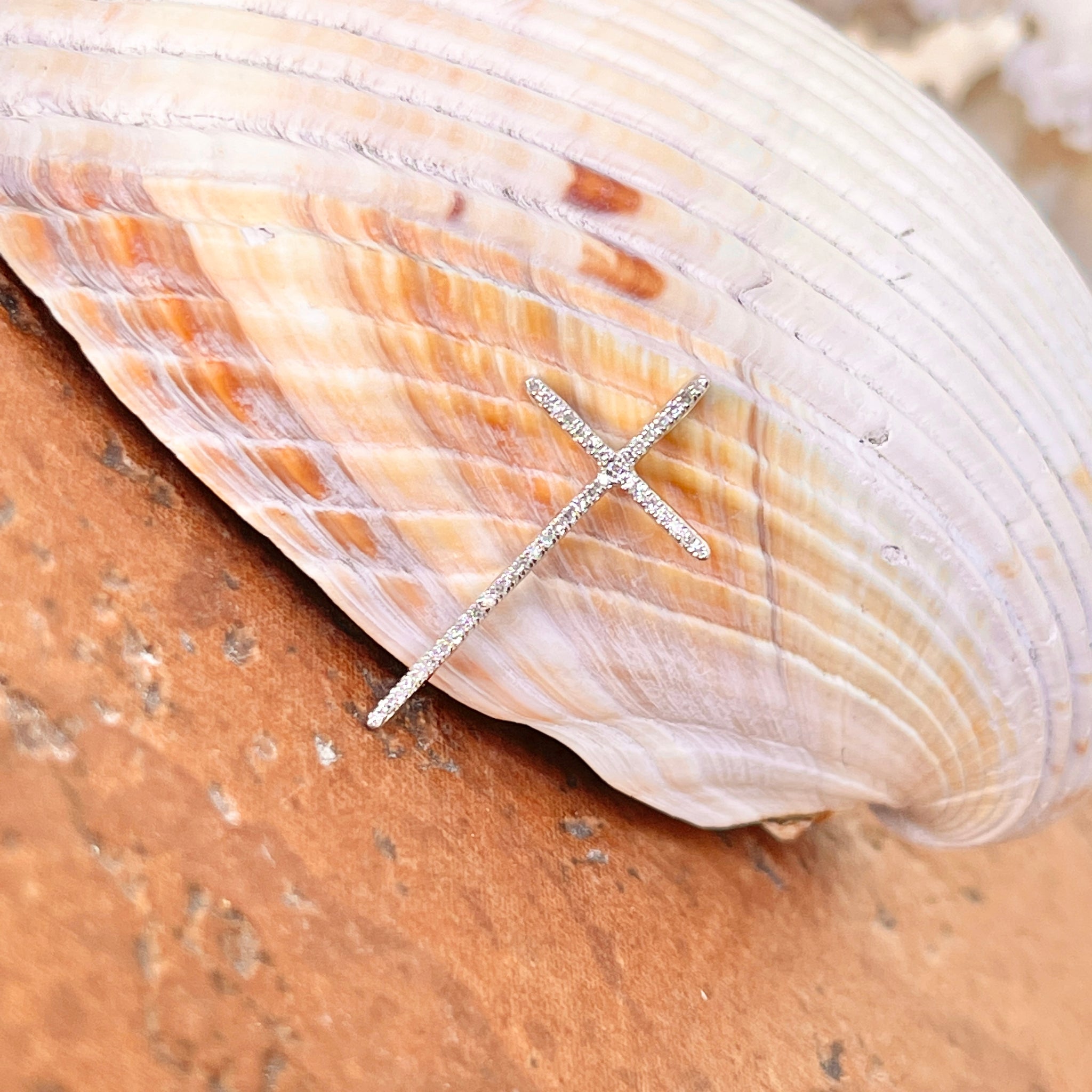 14KT white gold pave diamond cross pendant charm. Great size diamond cross pendant with sleek, modern style.