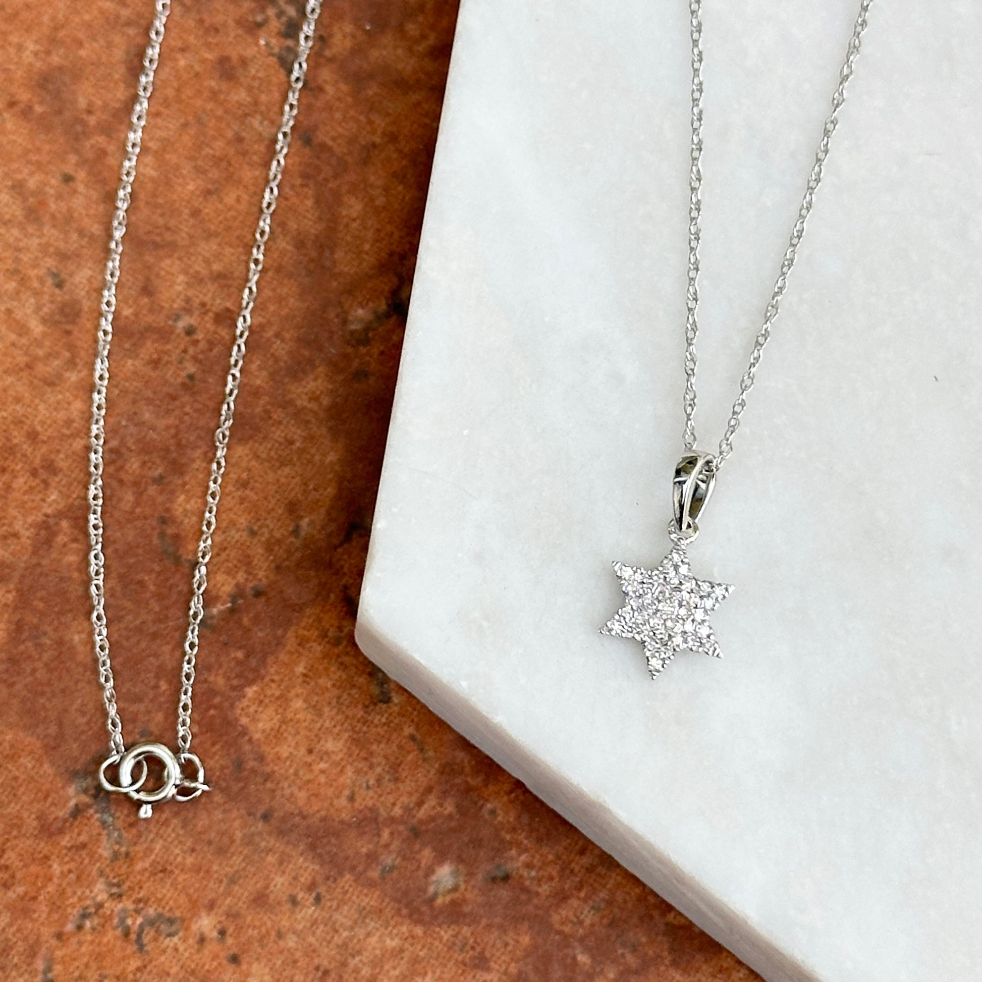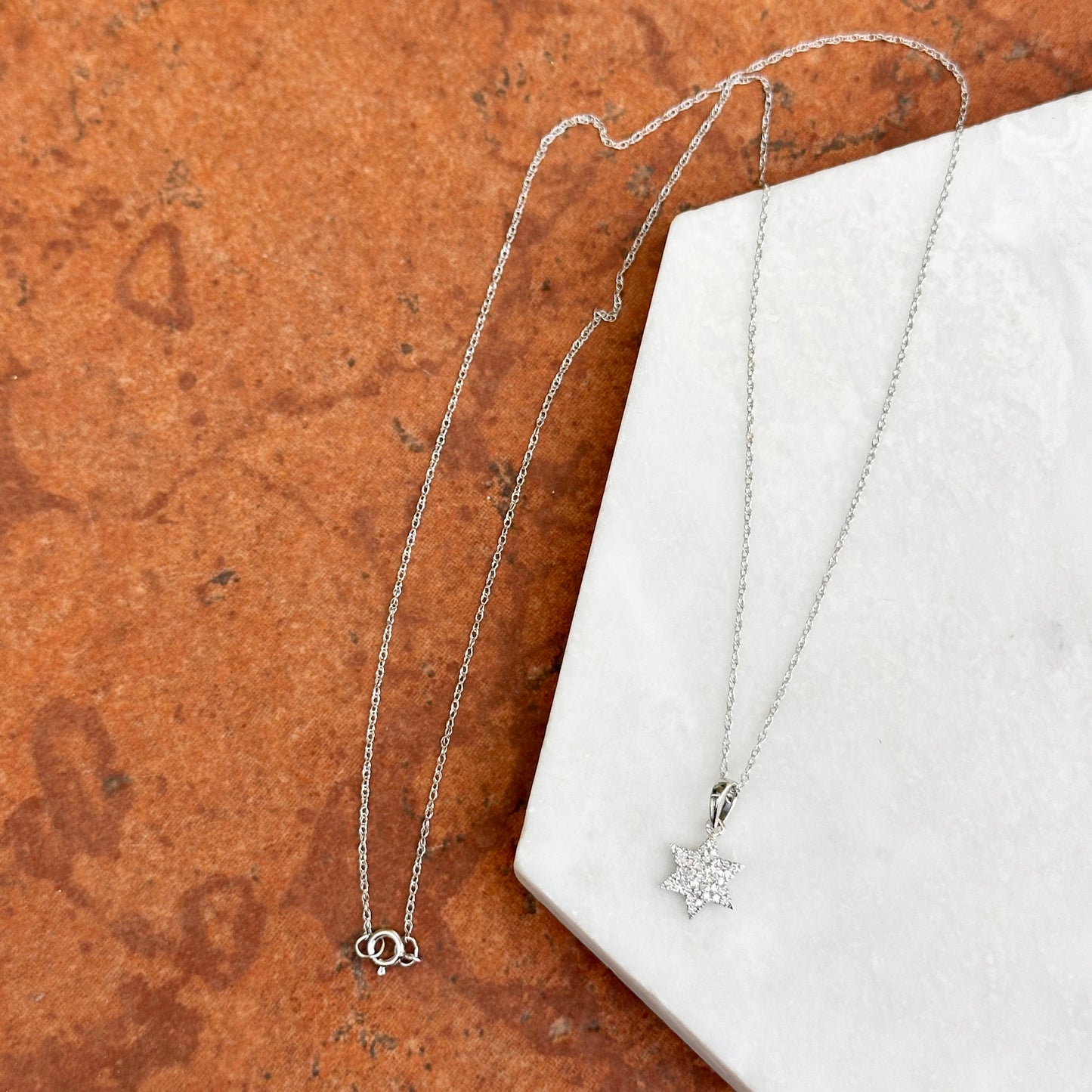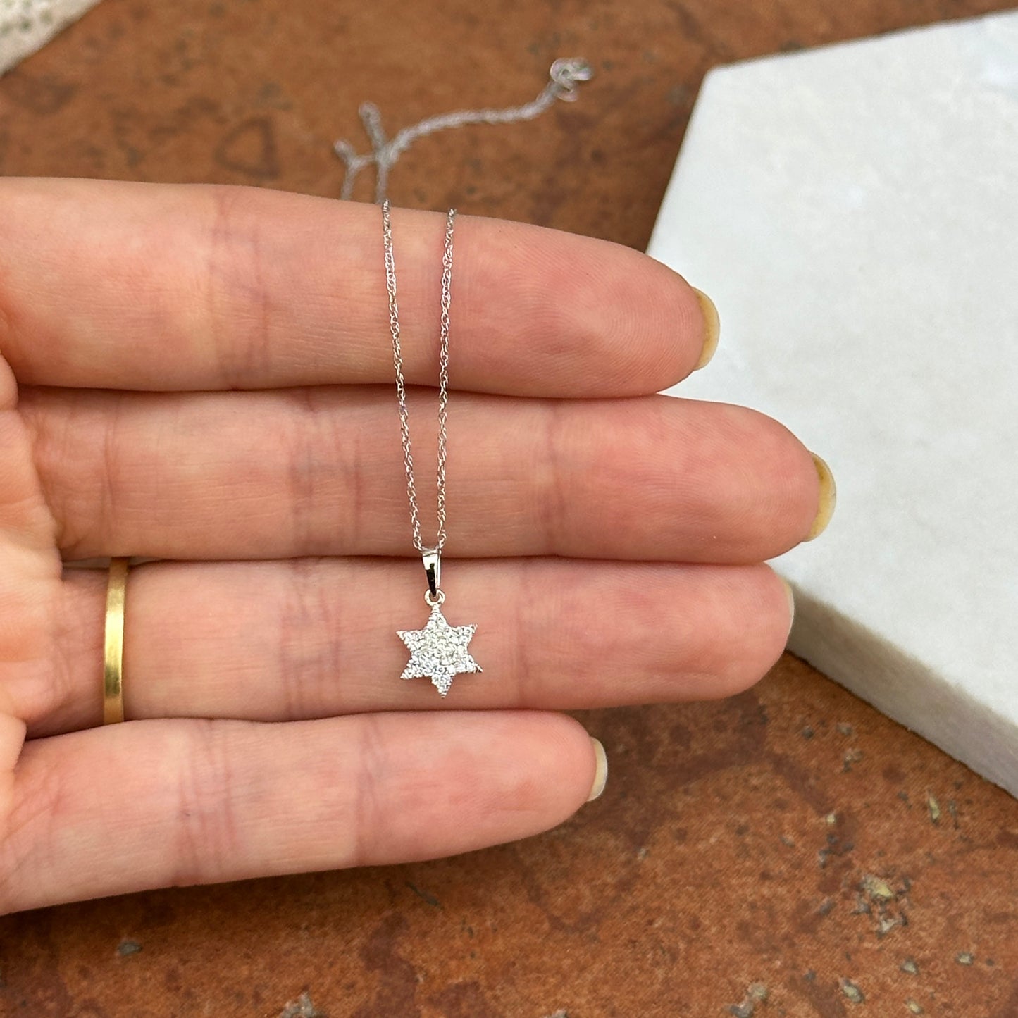 14KT White Gold Small, Pave Diamond Star of David Pendant Chain Necklace