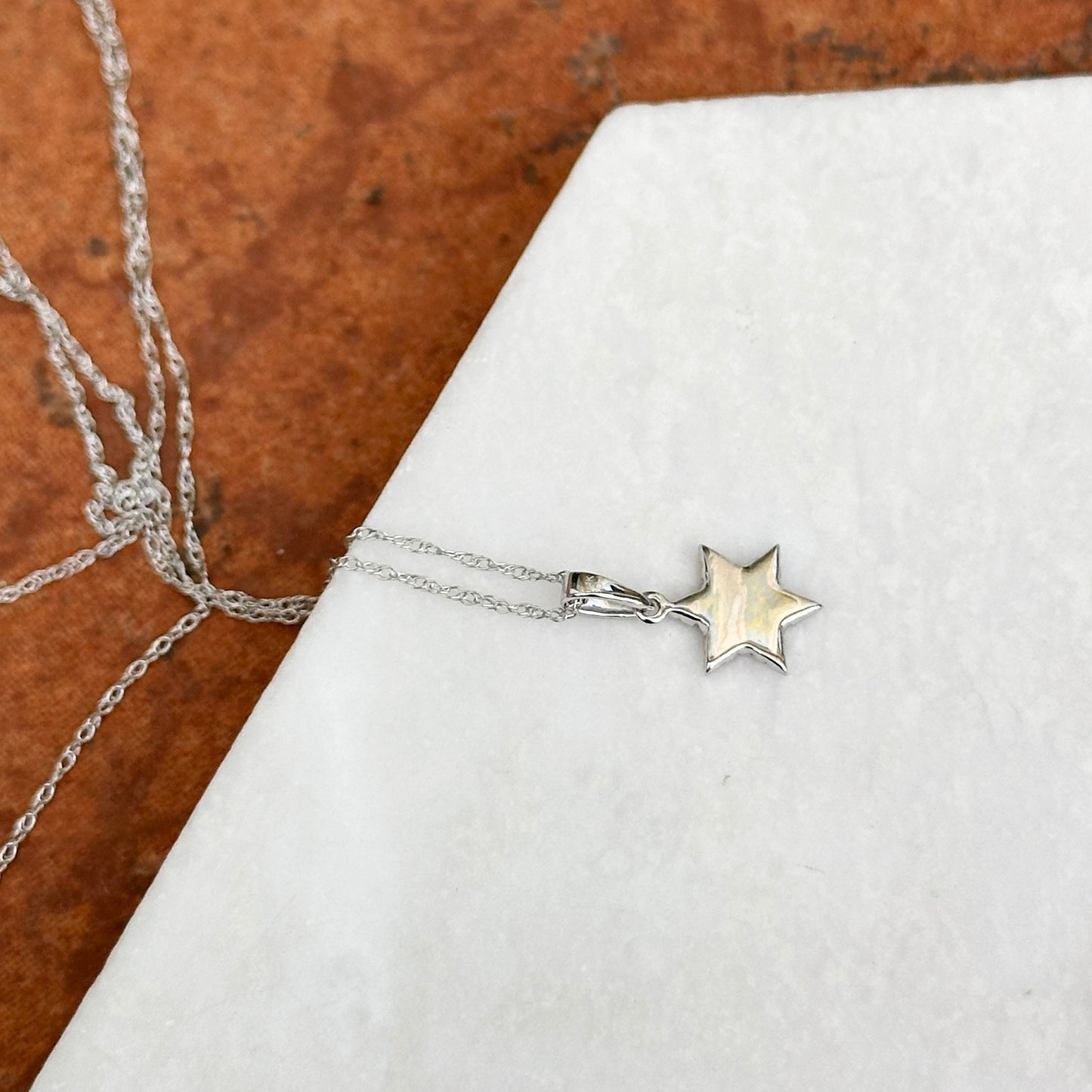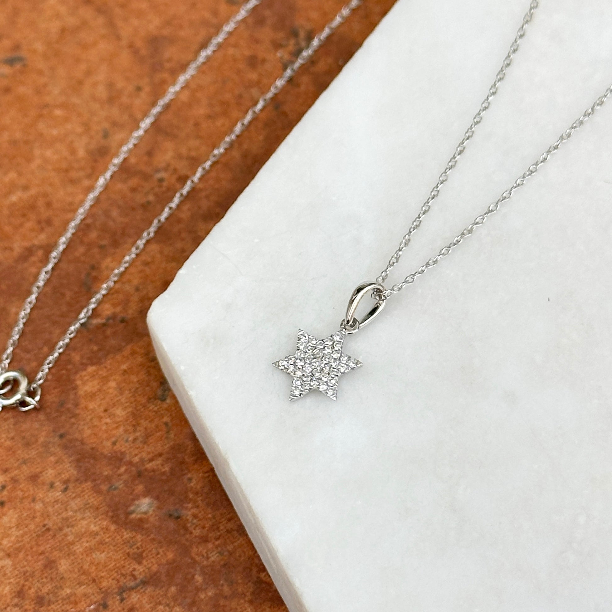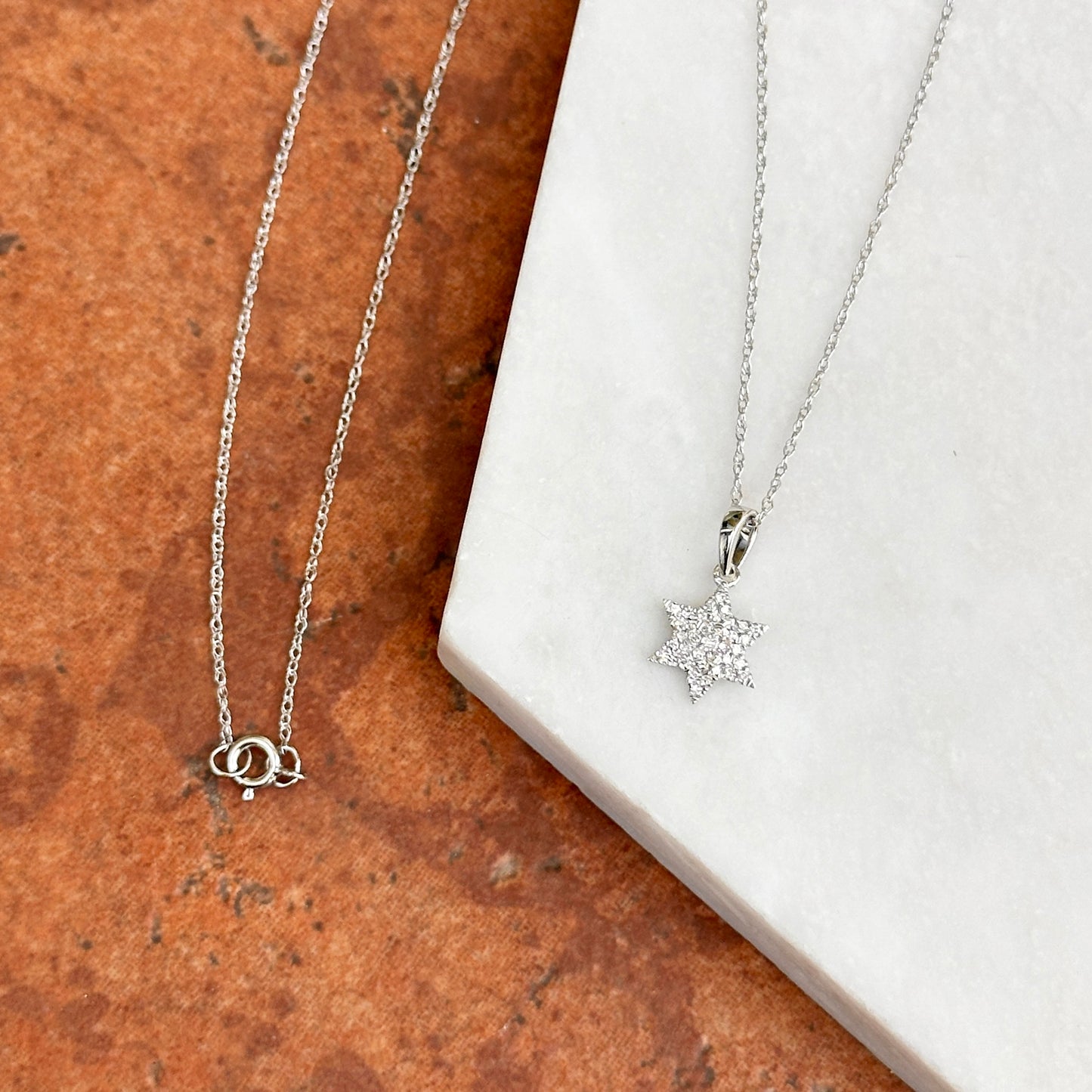 14KT White Gold Small, Pave Diamond Star of David Pendant Chain Necklace