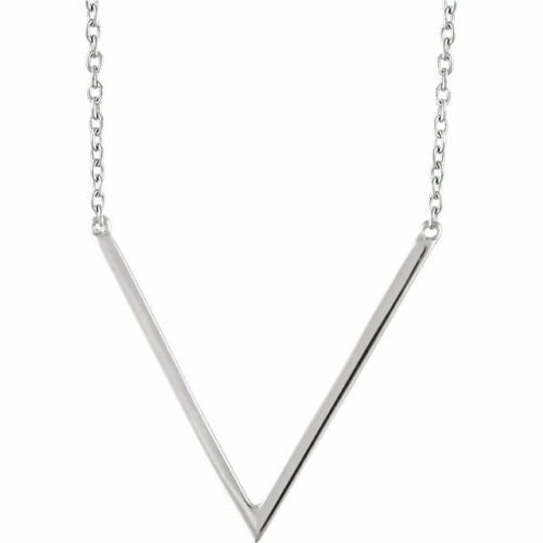 14KT White Gold Polished "V" Geometric Pendant Chain Necklace