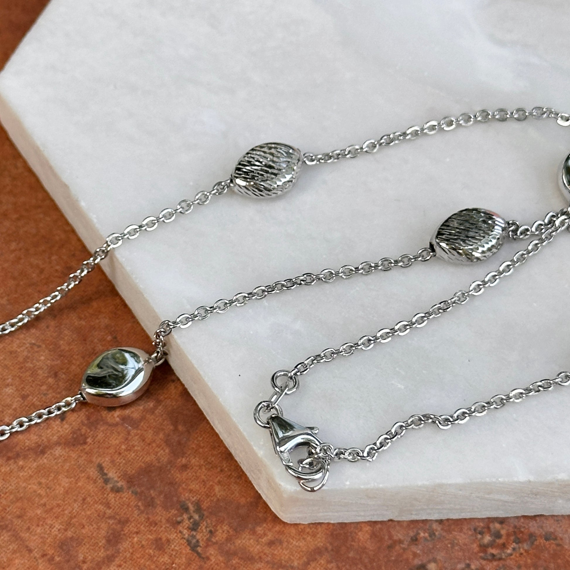 14KT White Gold Polished Shiny & Textured Beads Rolo Link Style Oval Beads Necklace