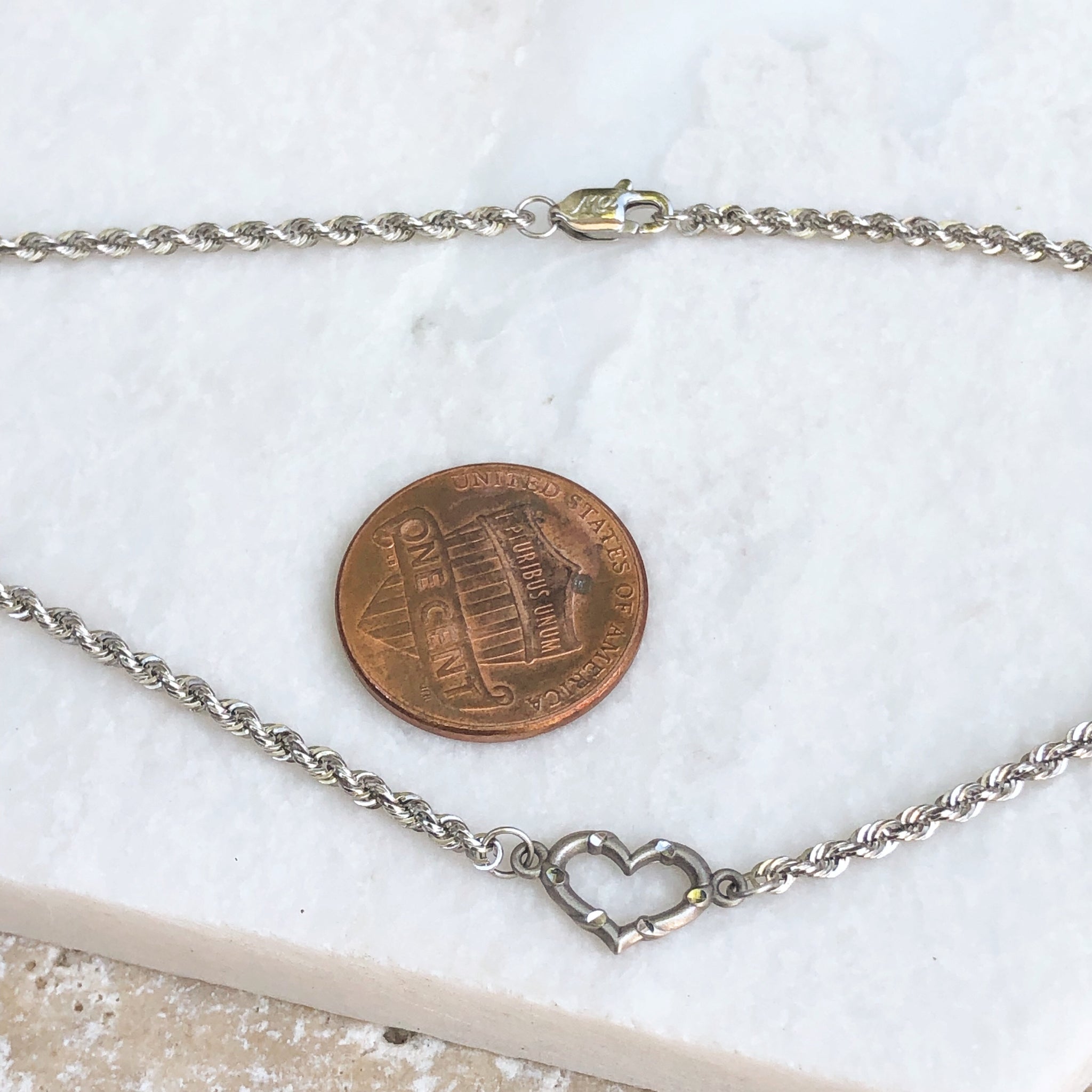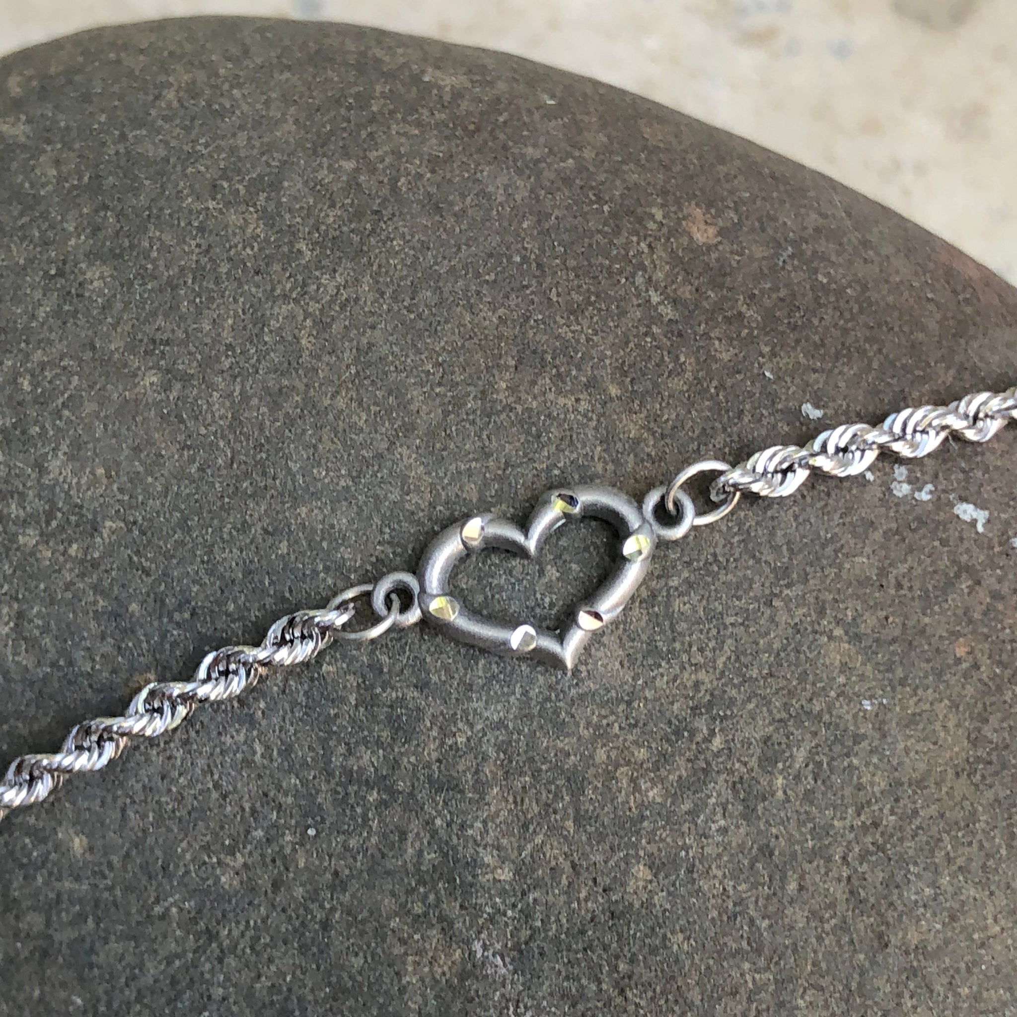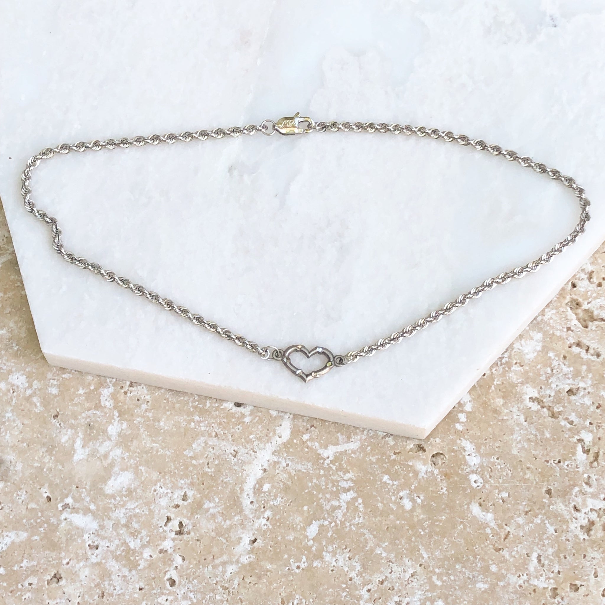 14KT white gold rope chain + diamond-cut matte open heart anklet. Sparkle up your ankles this season with a gold anklet- and never worry about it tarnishing!