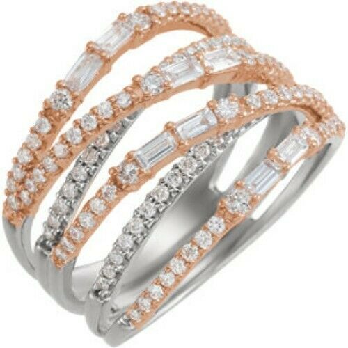 14KT White Gold + Rose Gold 1.0 CT Baguette Pave Diamond Ring