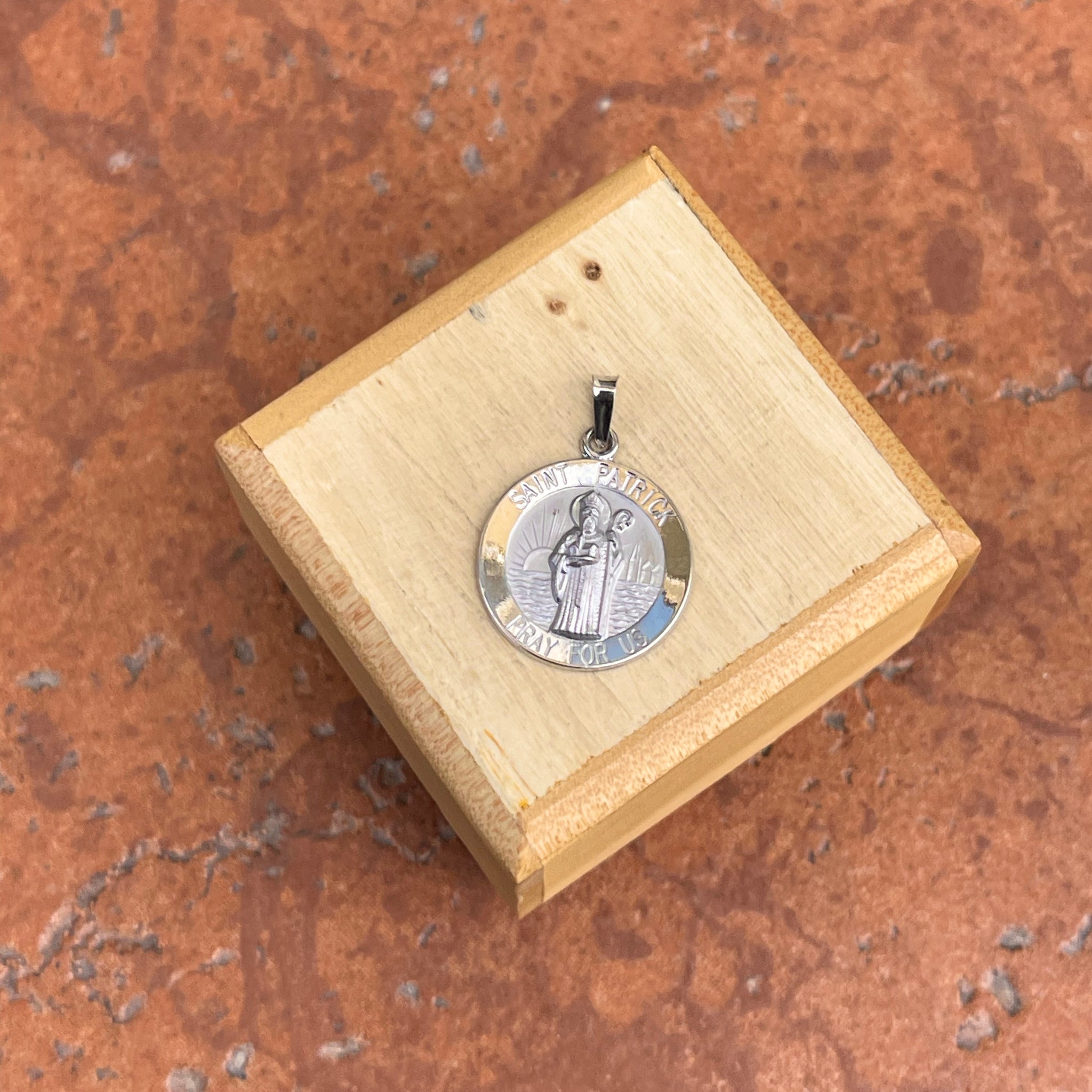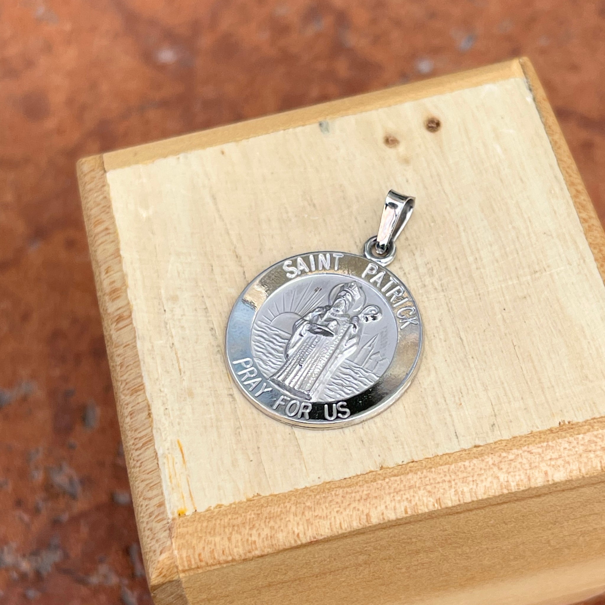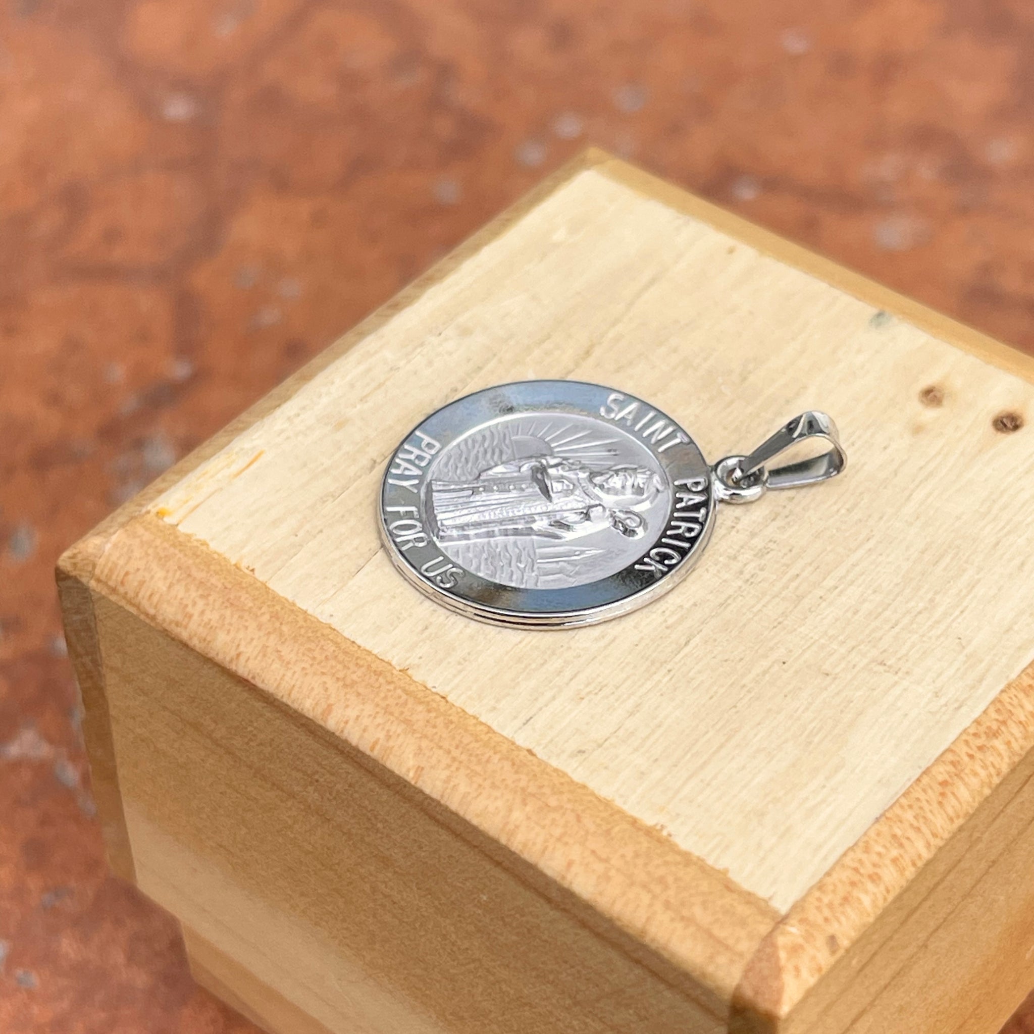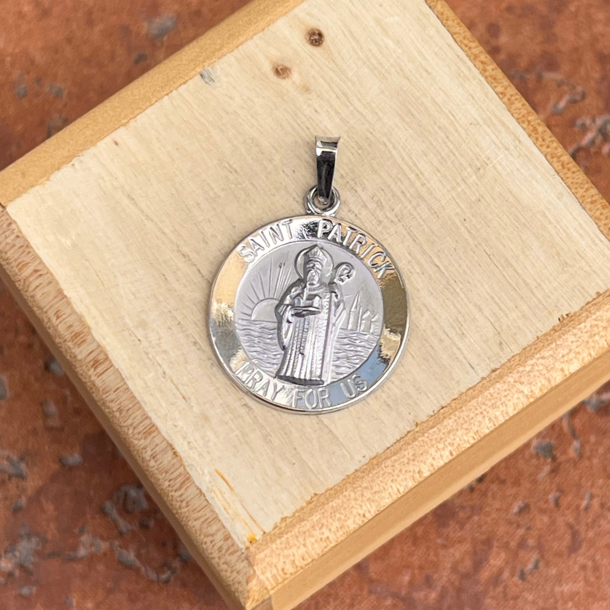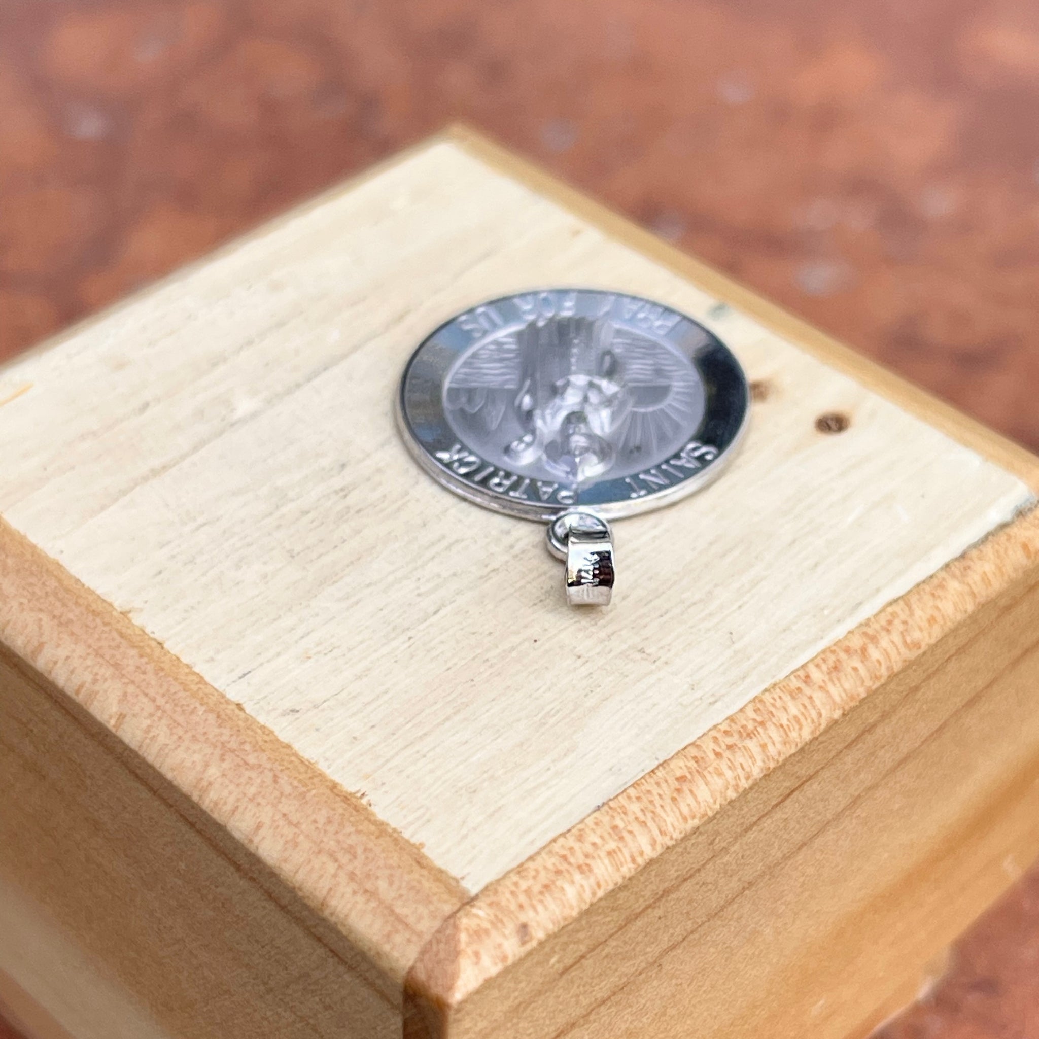 14KT White Gold Satin St Patrick Medal Pendant 18mm